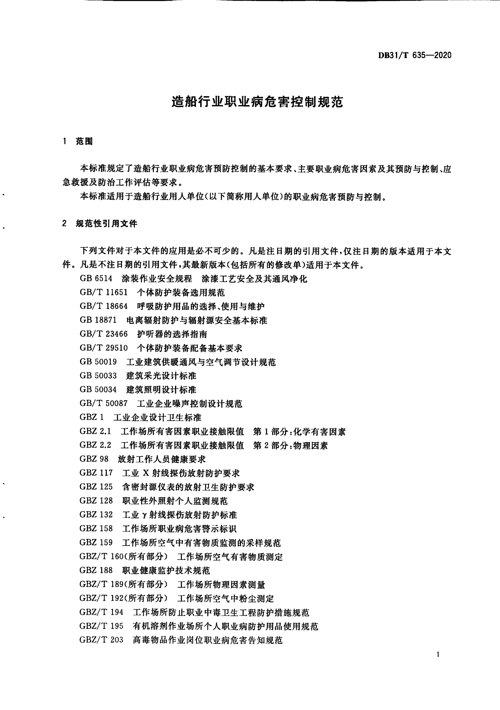 造船行业职业病危害控制规范