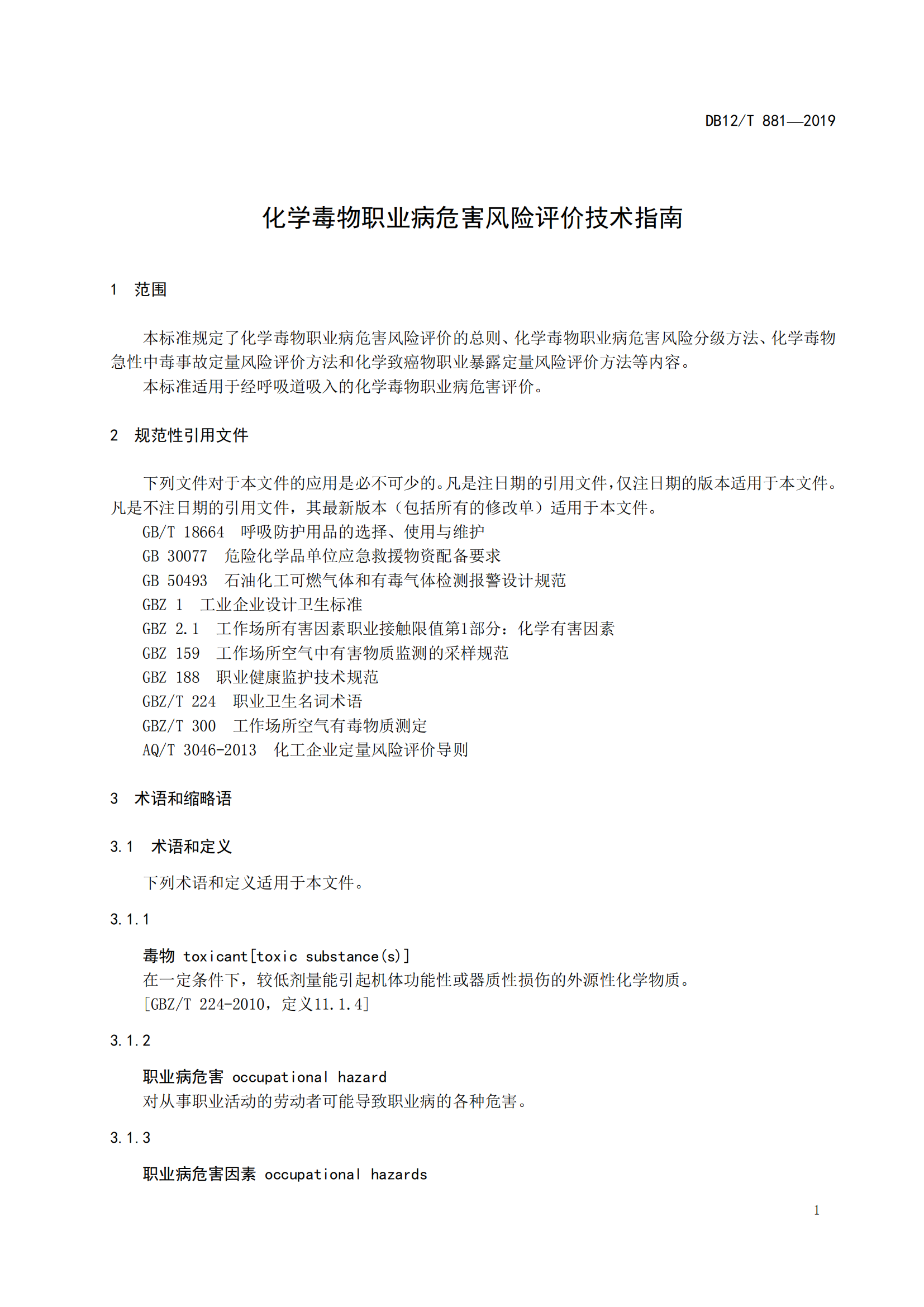 化学毒物职业病危害风险评价技术指南