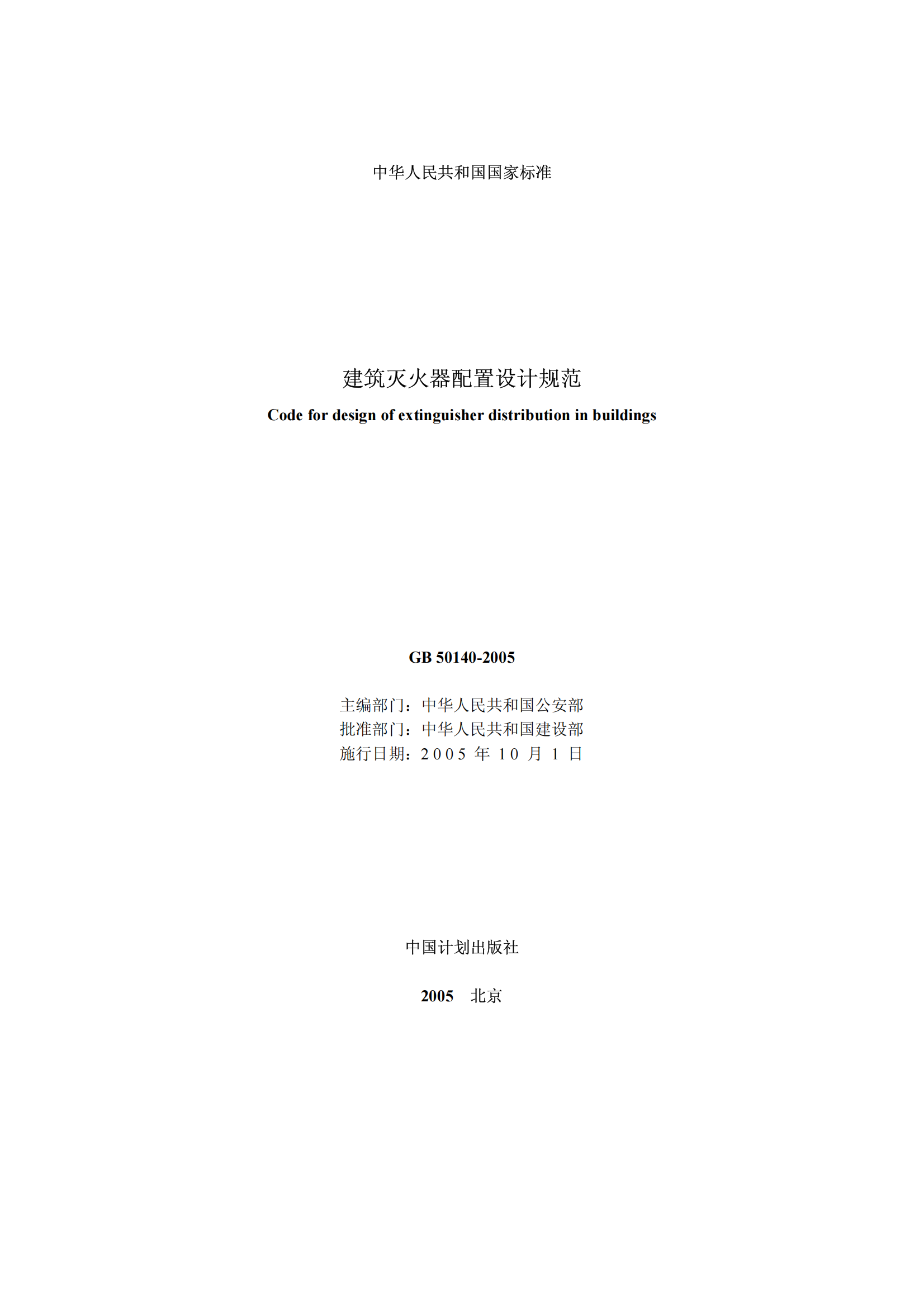 《建筑灭火器配置设计规范》(GB50140-2005)