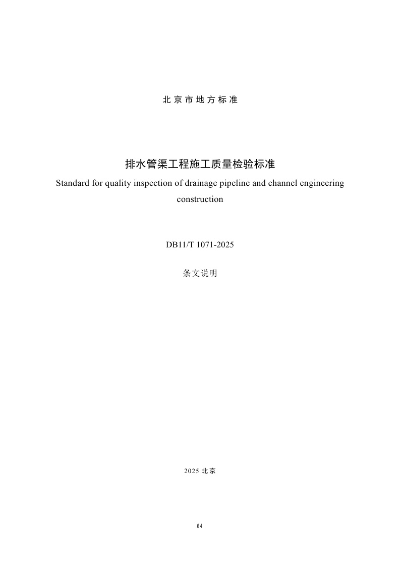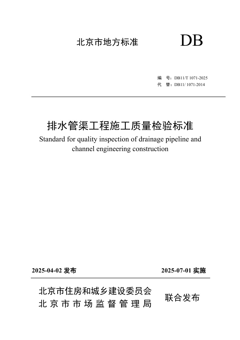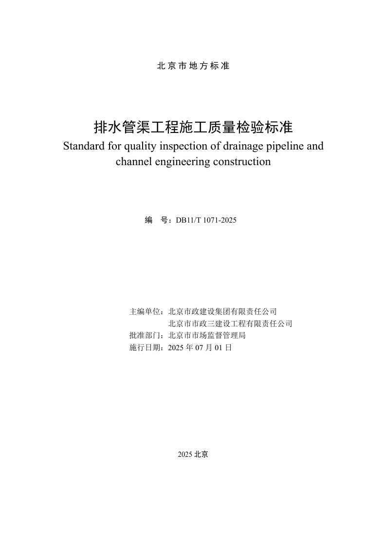 北京市《排水管渠工程施工质量检验标准》(DB11/T 1071-2025)