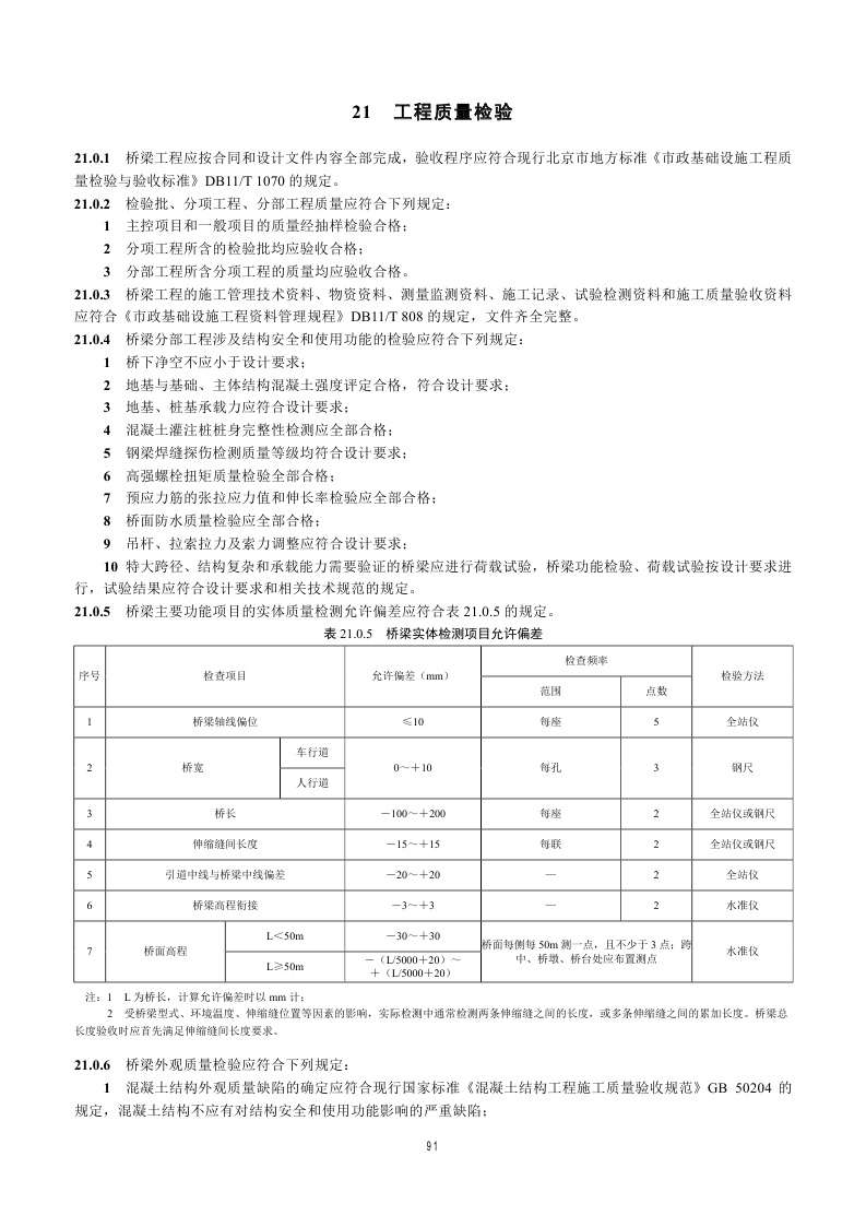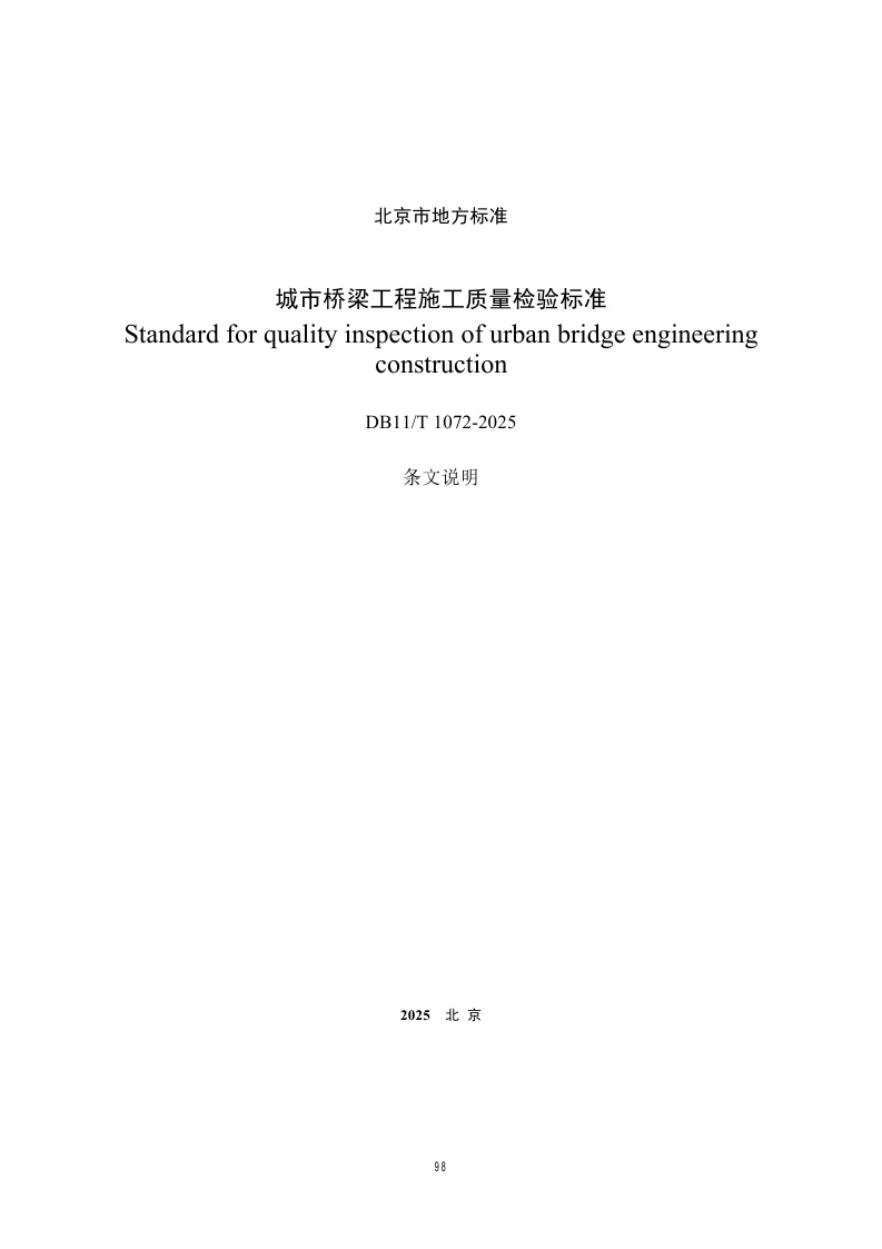 北京市《城市桥梁工程施工质量检验标准》(DB11/T 1072-2025)