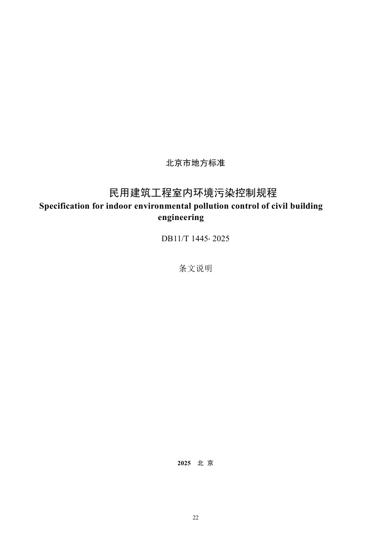 北京市《民用建筑工程室内环境污染控制规程》(DB11/T 1445-2025)