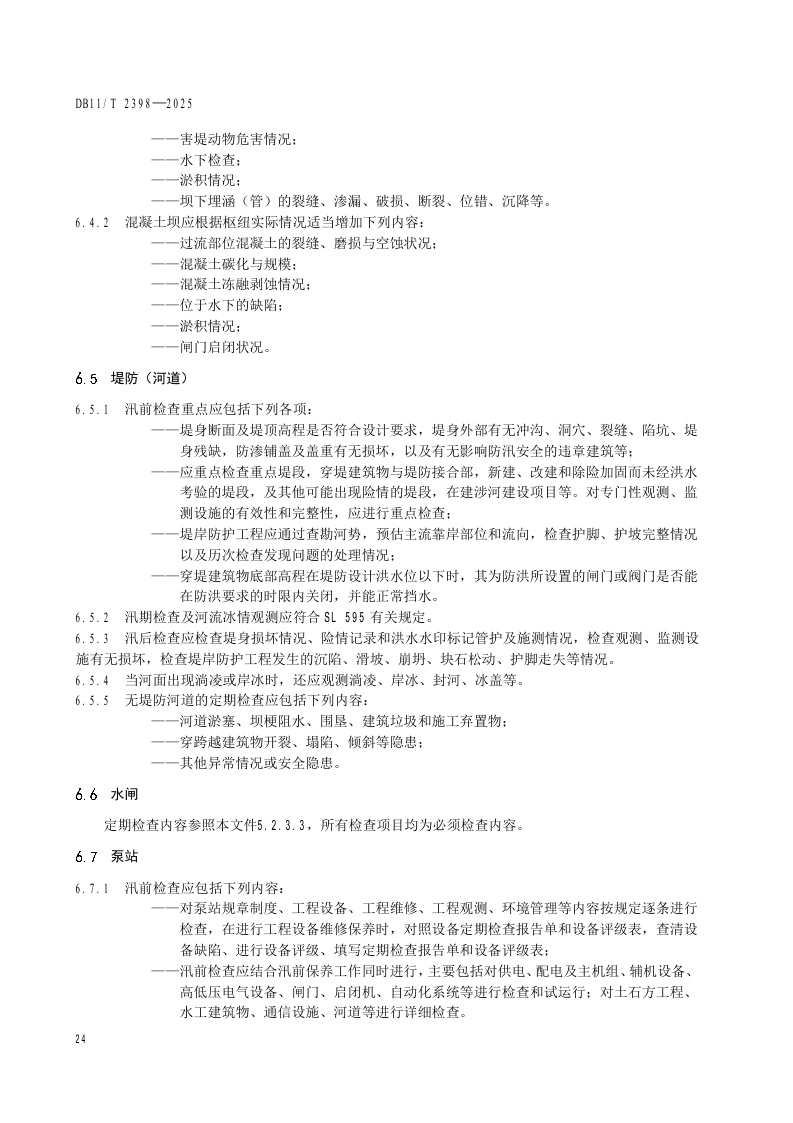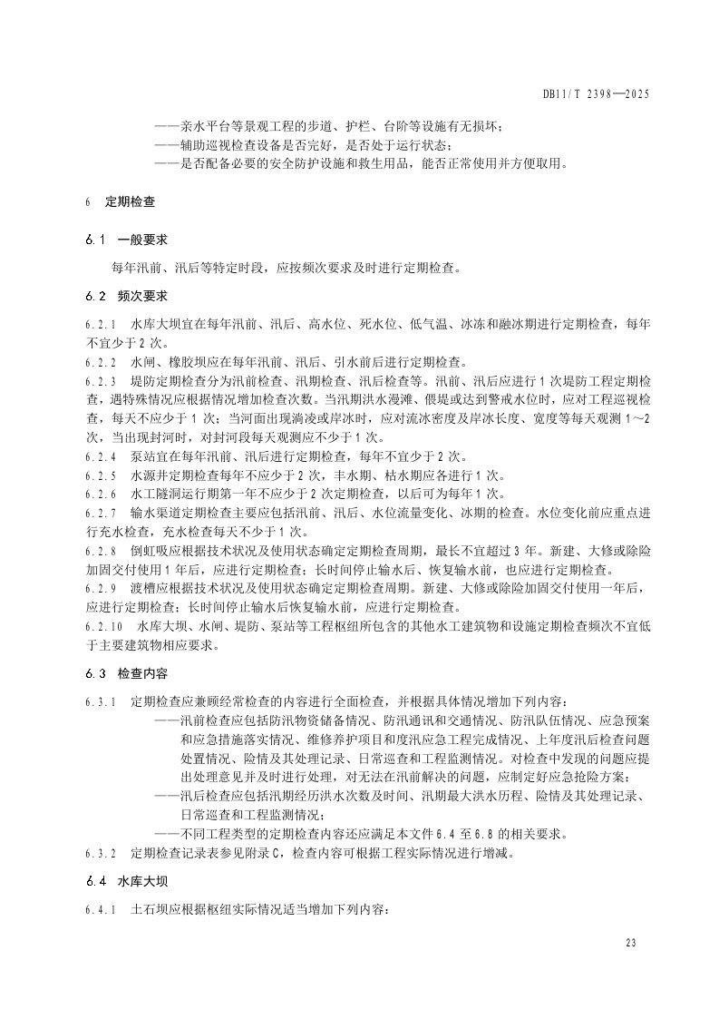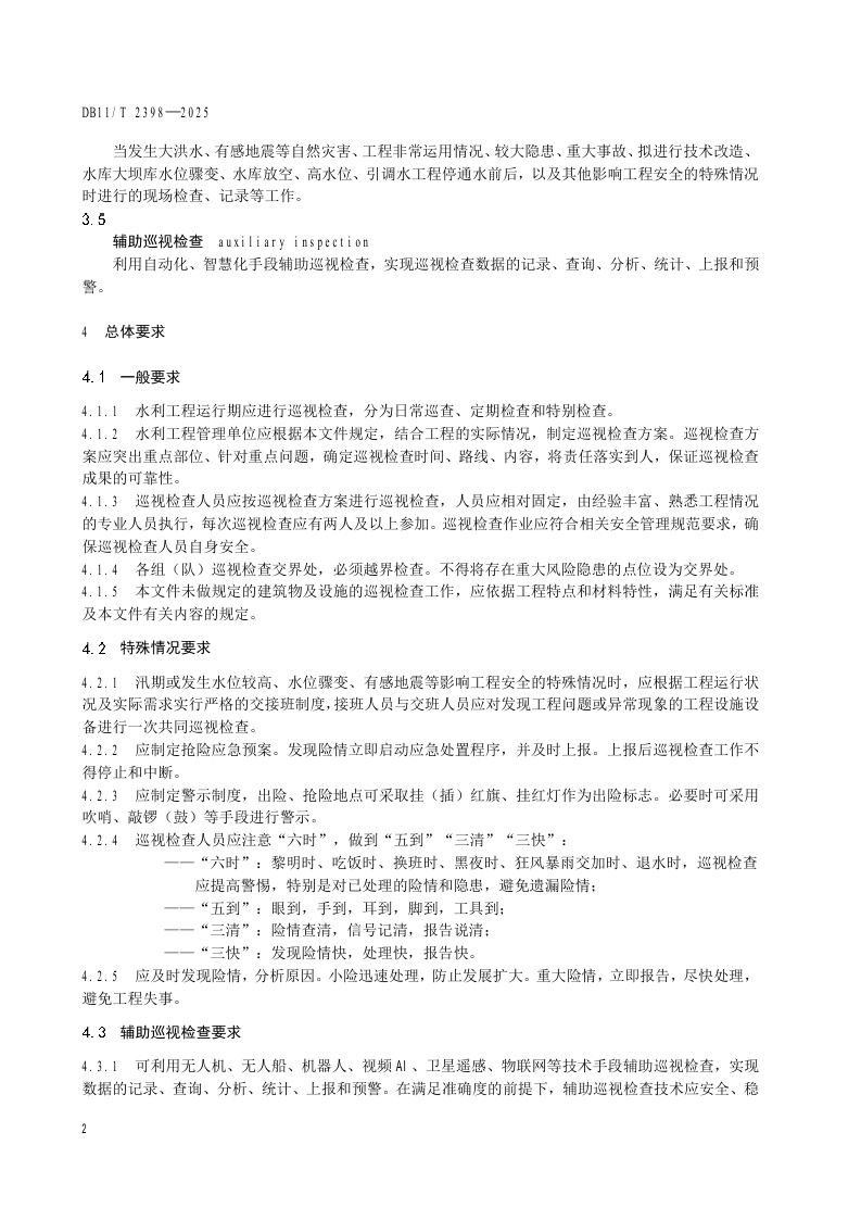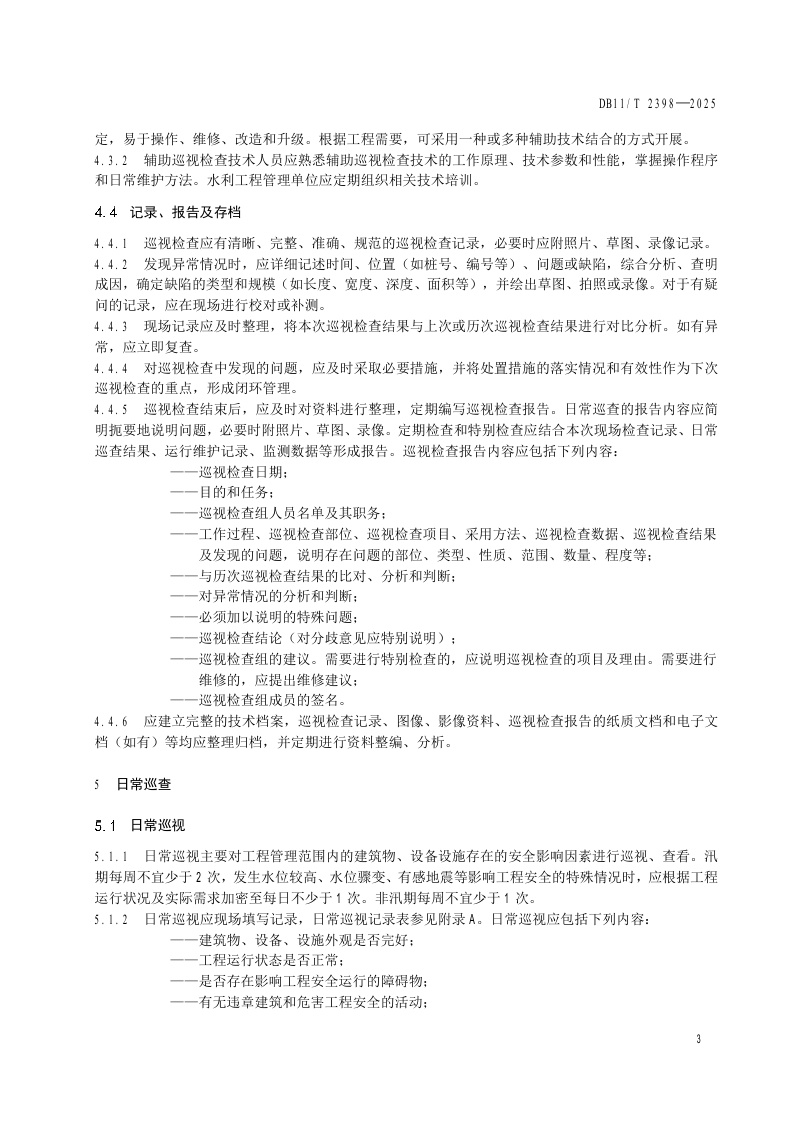北京市《水利工程巡视检查作业规范》(DB11/T 2398-2025)