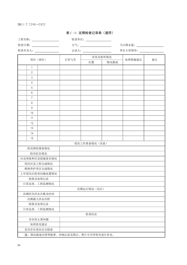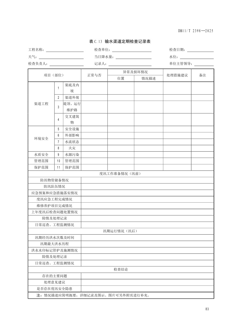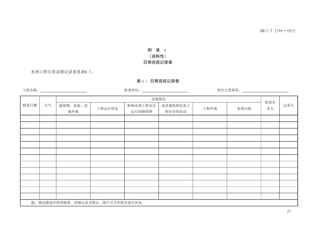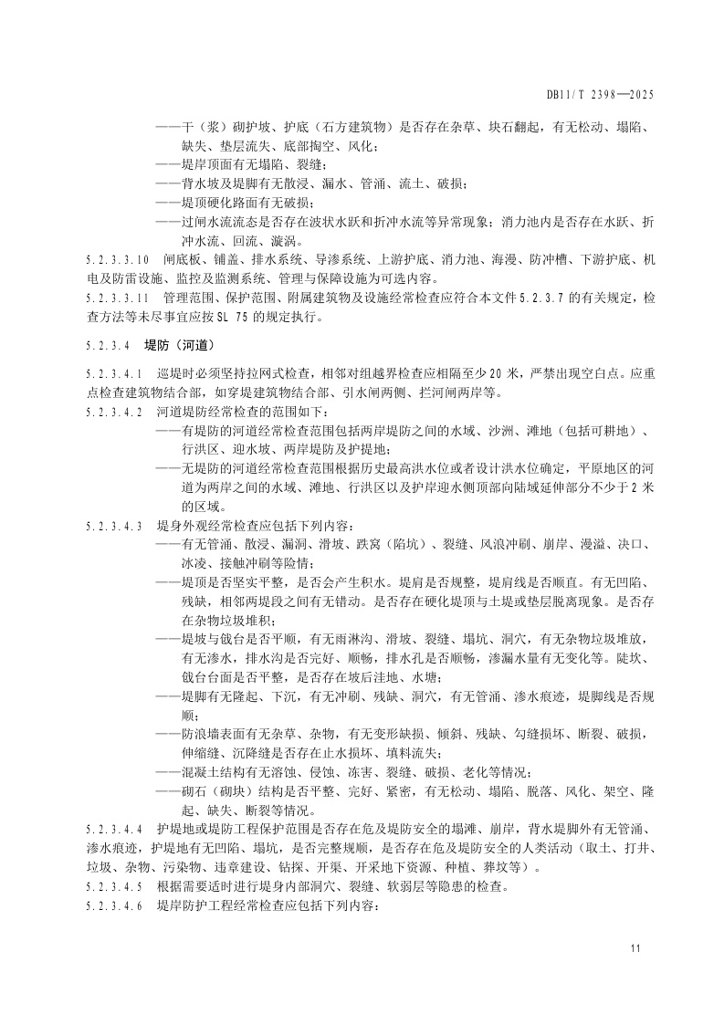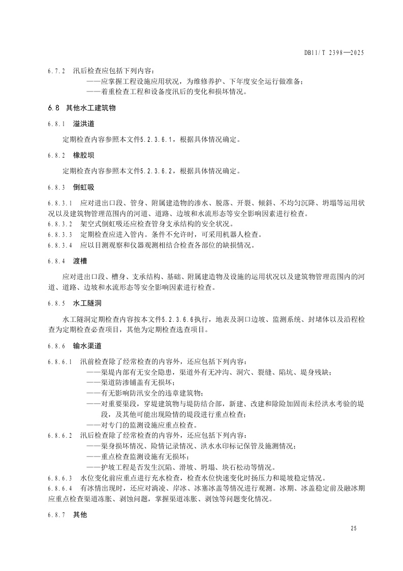 北京市《水利工程巡视检查作业规范》(DB11/T 2398-2025)