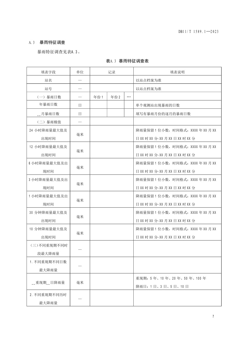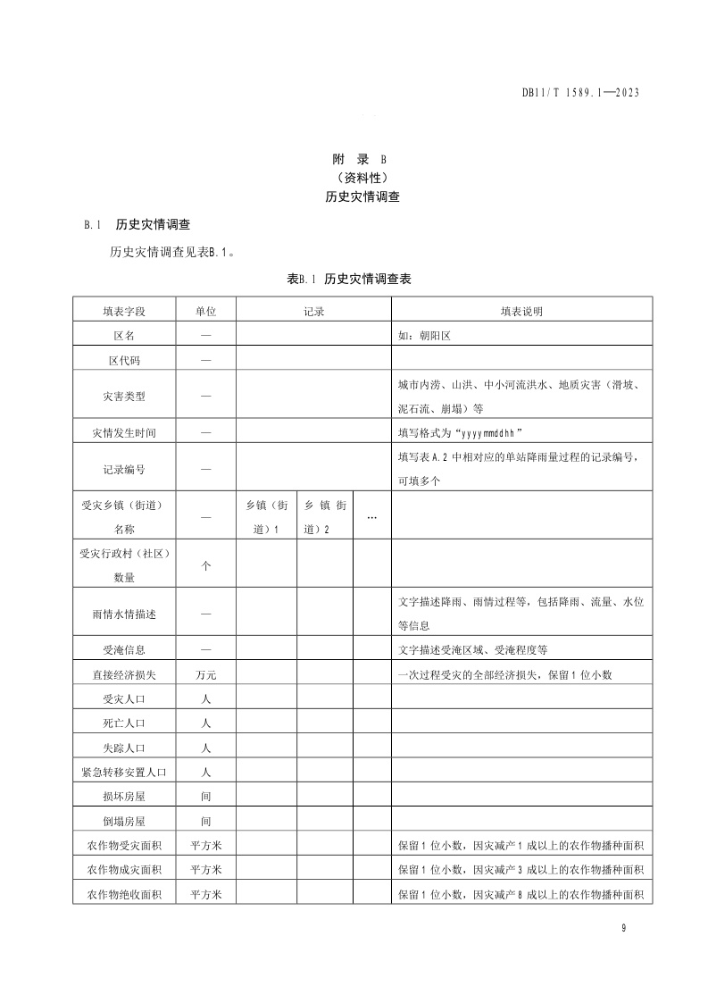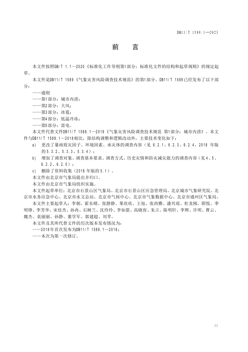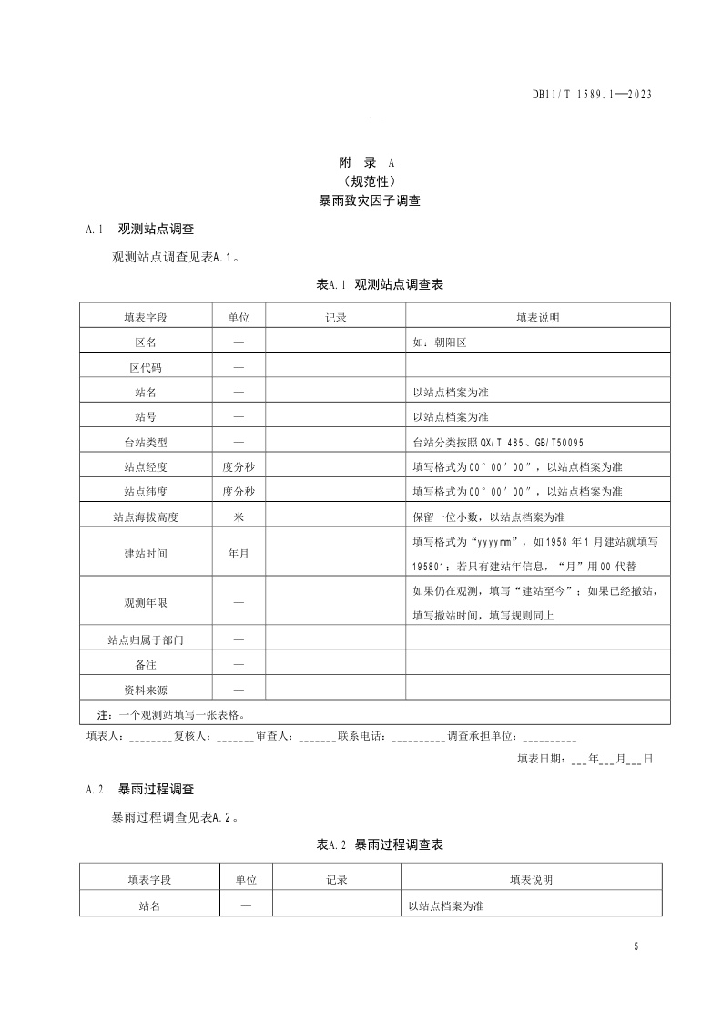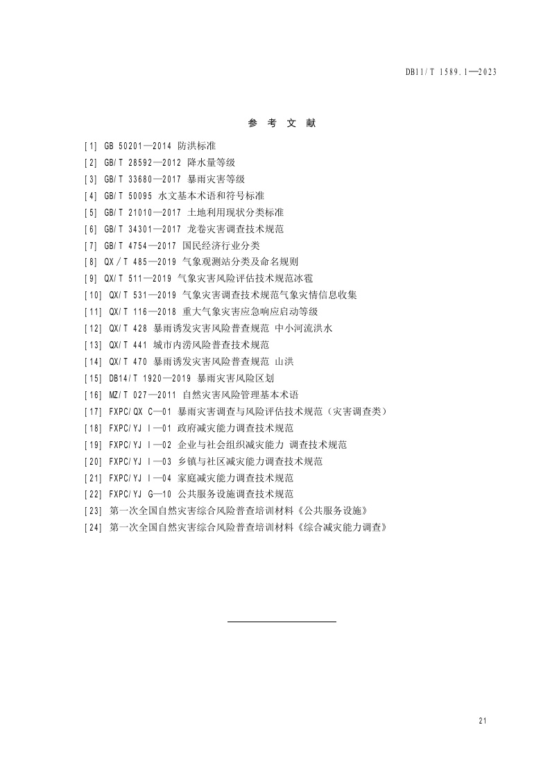 北京市《气象灾害风险调查技术规范 第1部分:暴雨》(DB11/T 1589.1-2023)