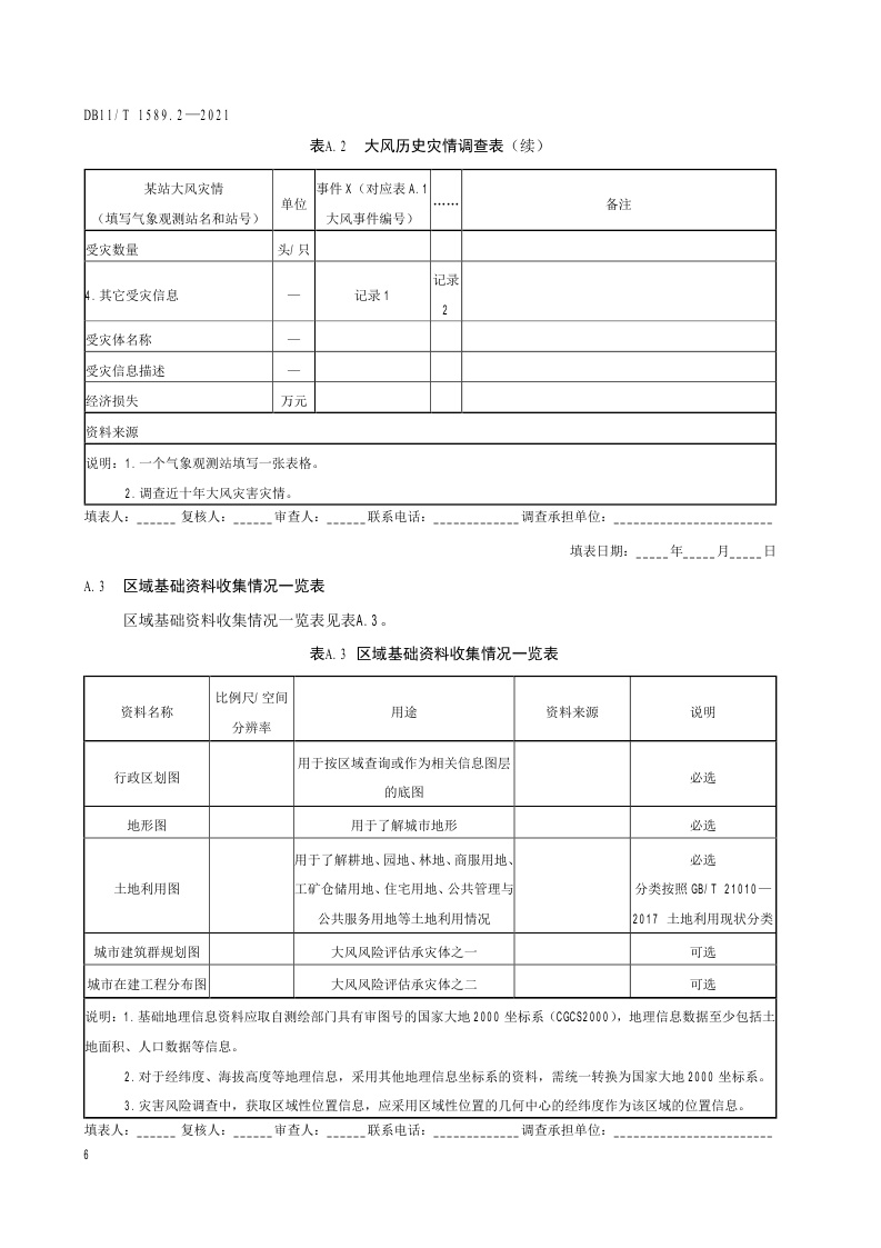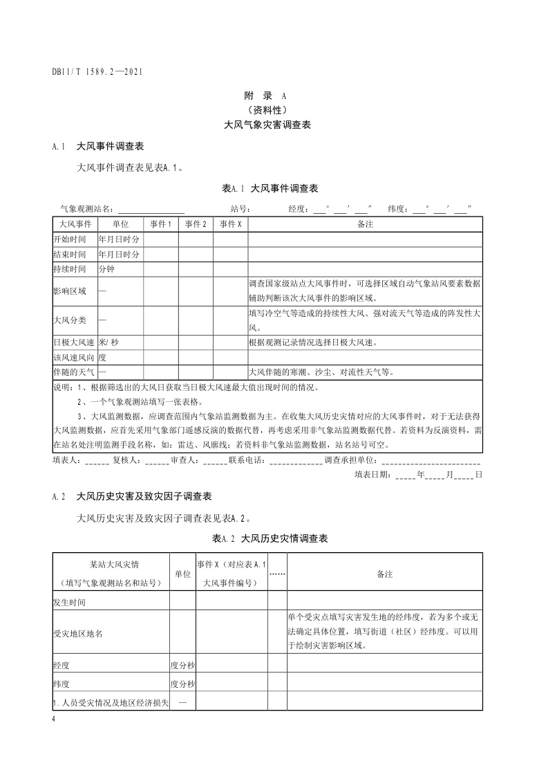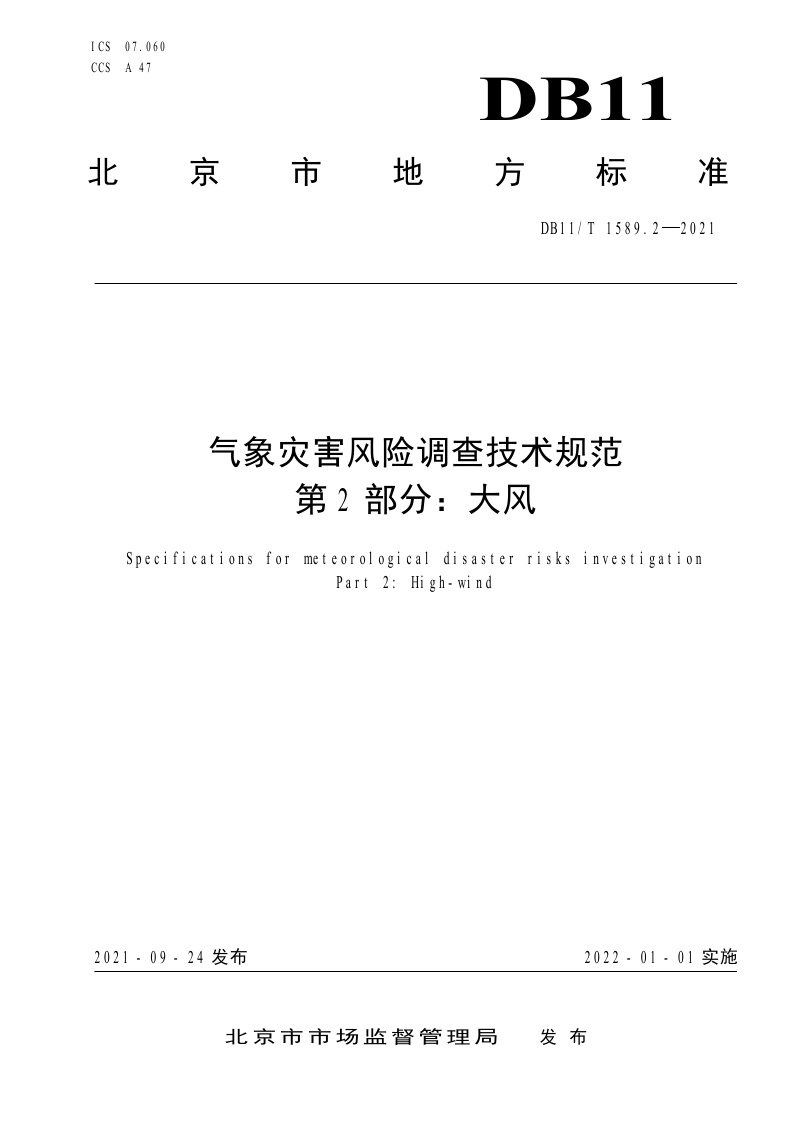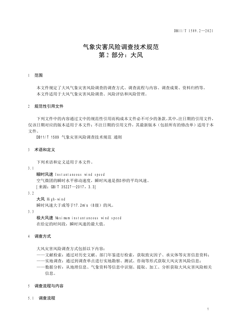 北京市《气象灾害风险调查技术规范 第2部分:大风》(DB11/T 1589.2-2021)
