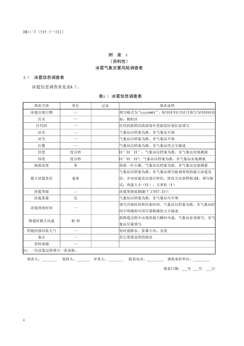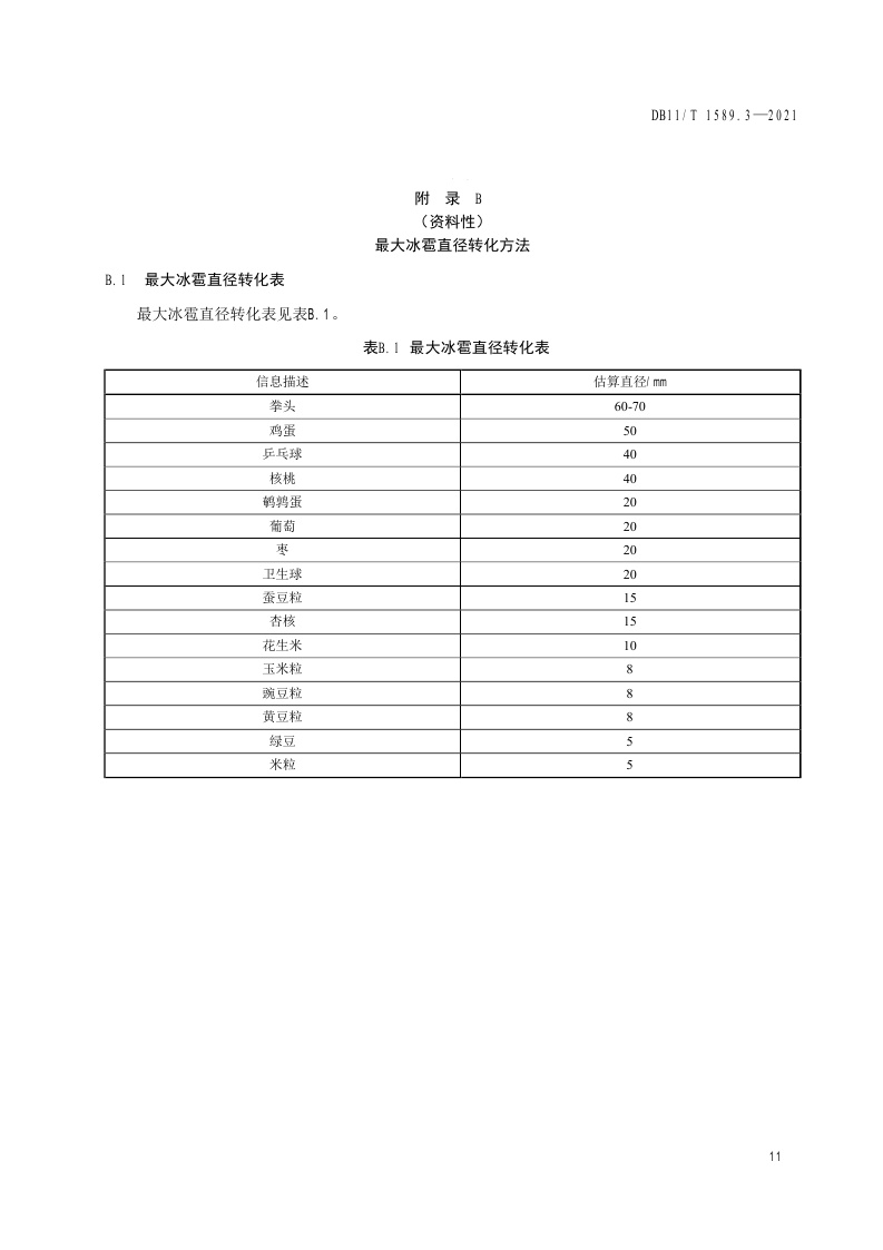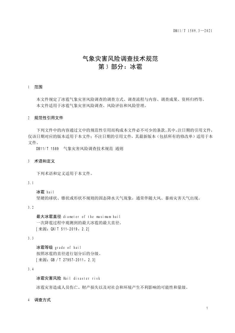 北京市《气象灾害风险调查技术规范 第3部分:冰雹》(DB11/T 1589.3-2021)