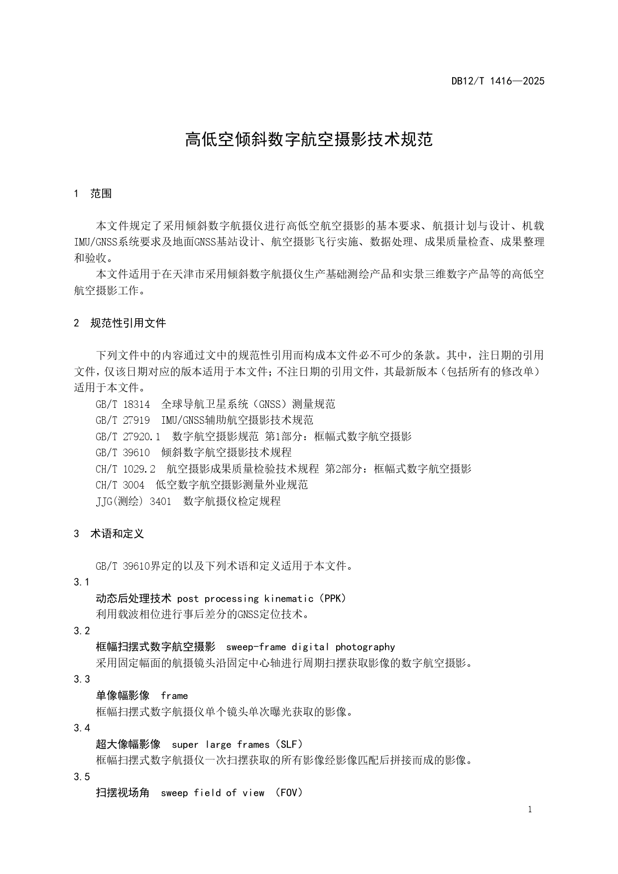 高低空倾斜数字航空摄影技术规范DB12/T 1416-2025