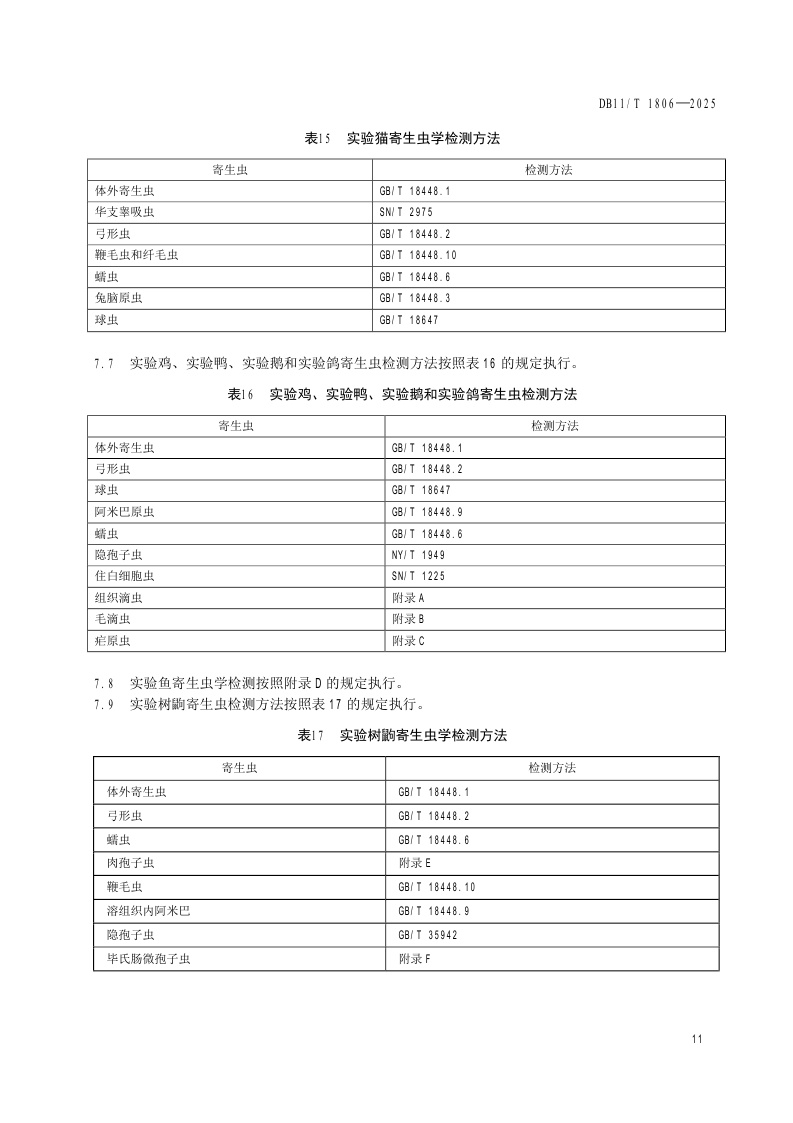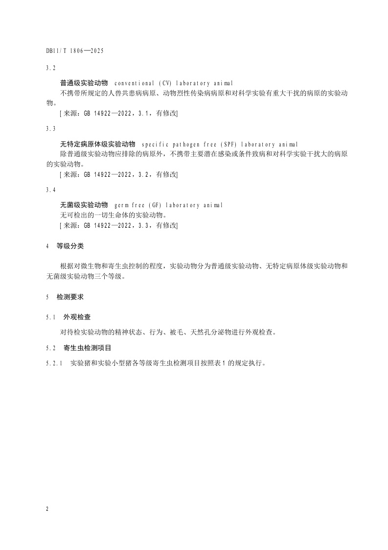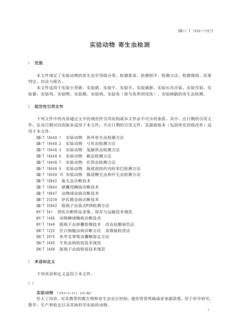 北京市《实验动物 寄生虫检测》(DB11/T 1806-2025)