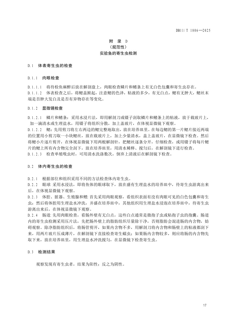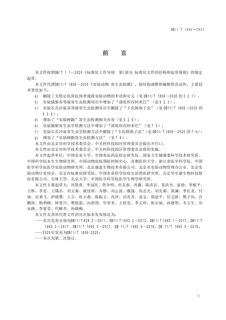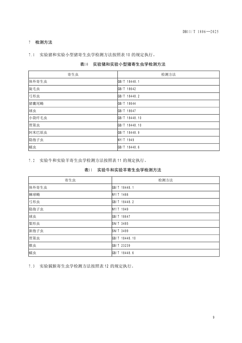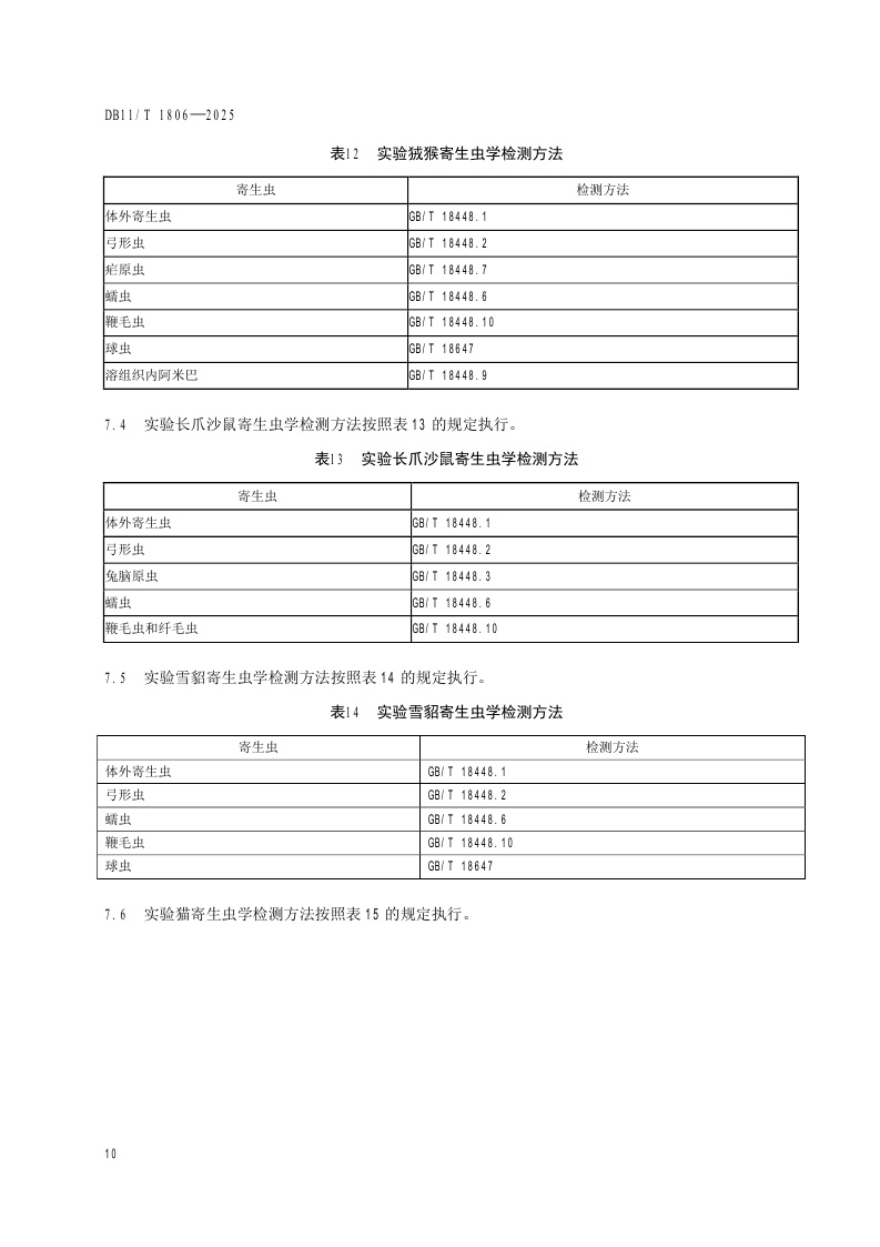 北京市《实验动物 寄生虫检测》(DB11/T 1806-2025)