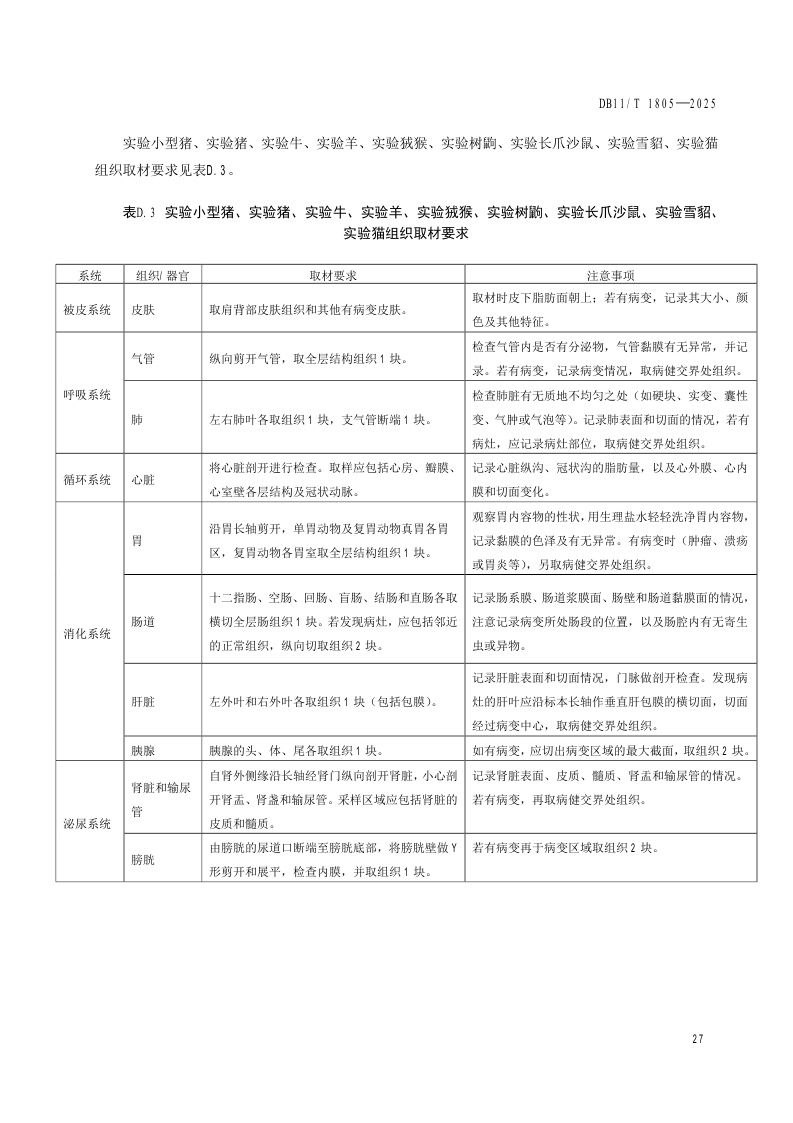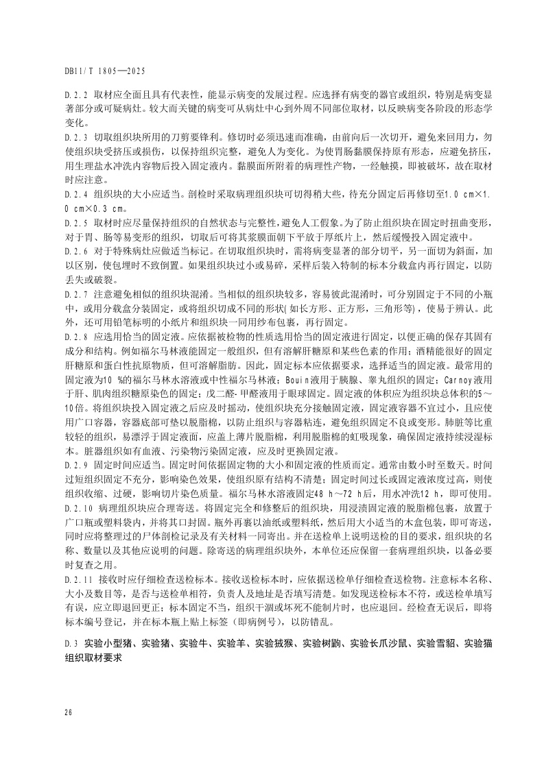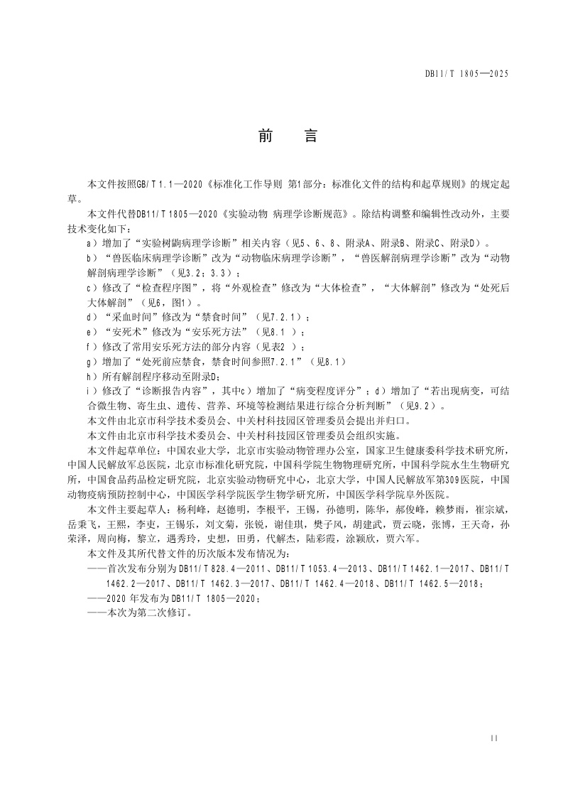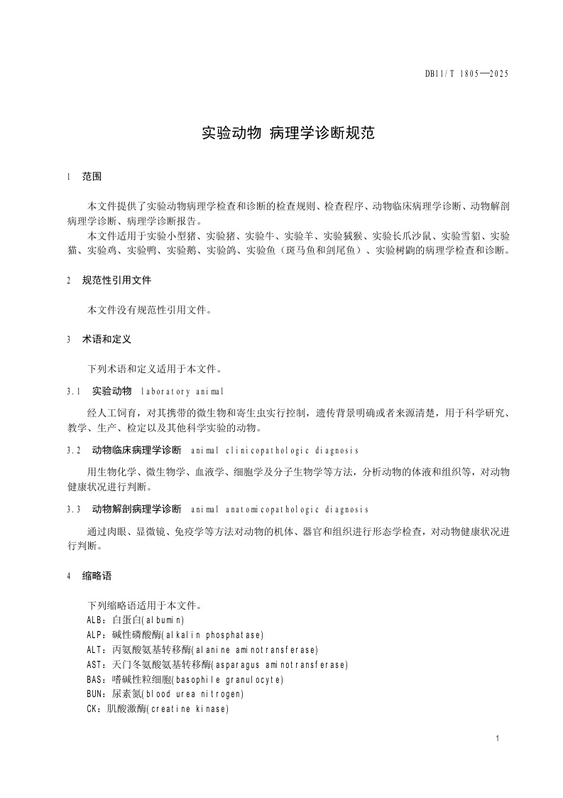 北京市《实验动物 病理学诊断规范》(DB11/T 1805-2025)