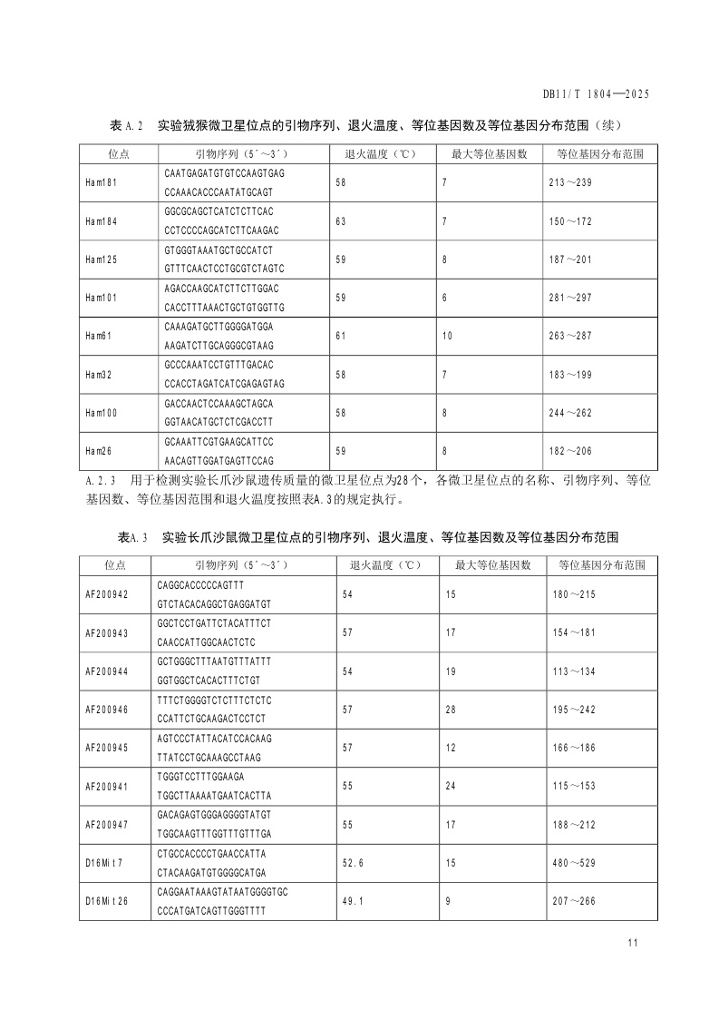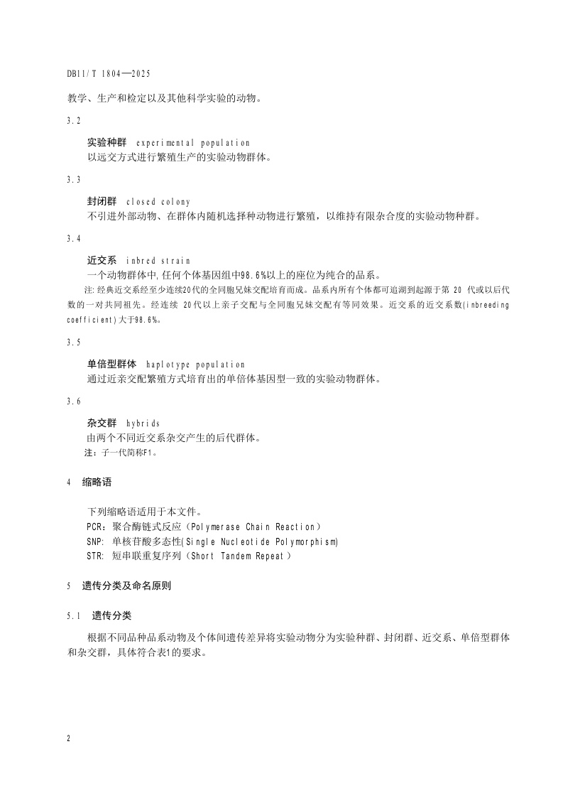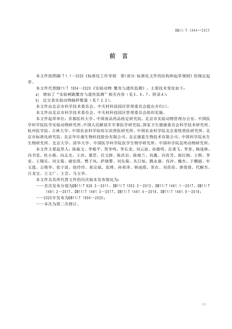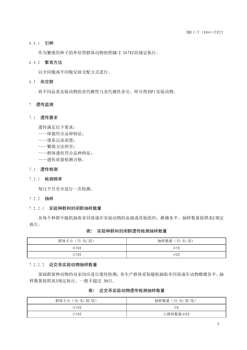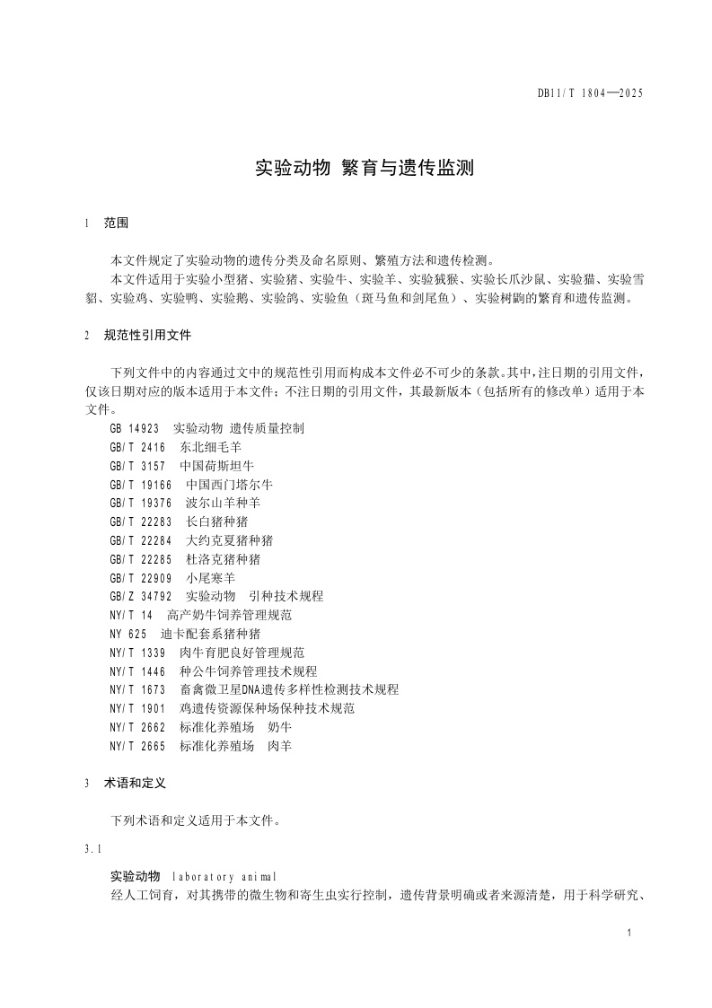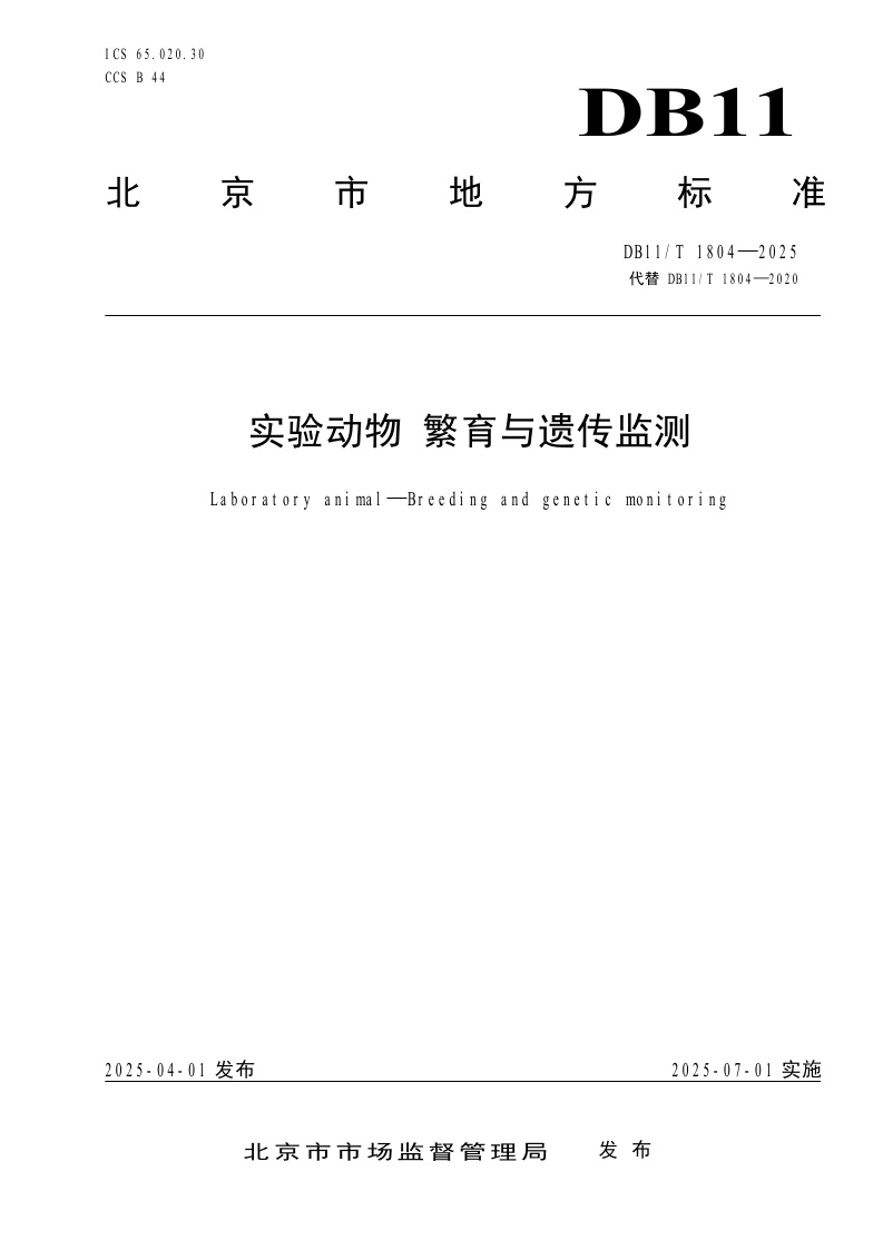 北京市《实验动物 繁育与遗传监测》(DB11/T 1804-2025)