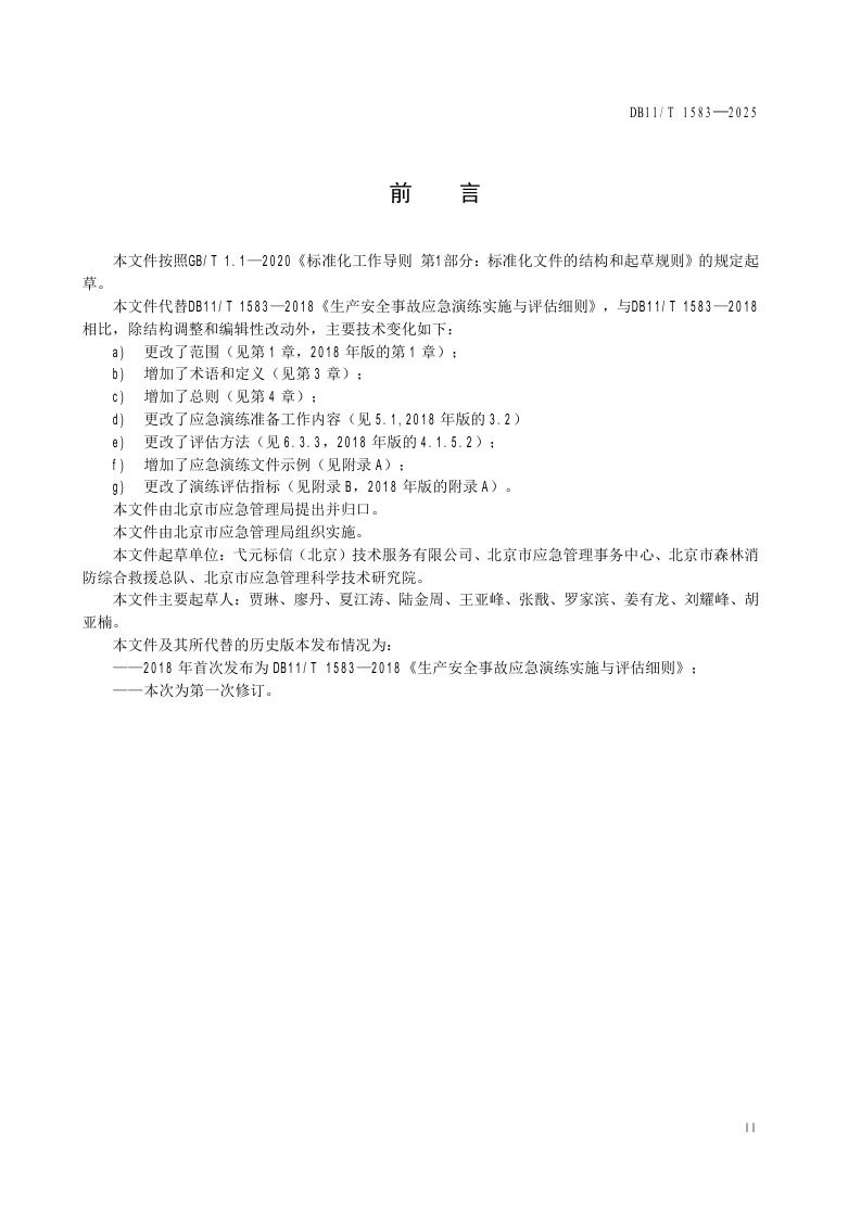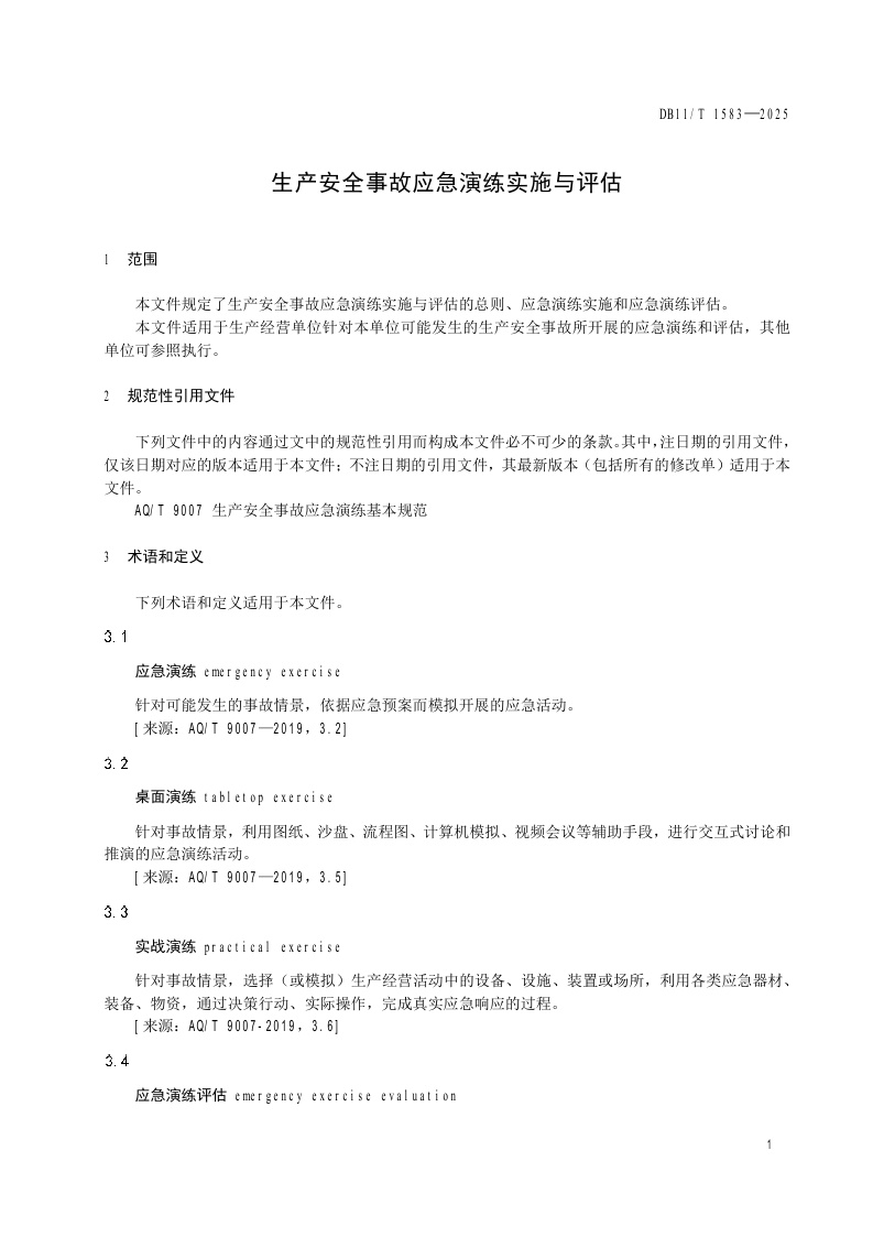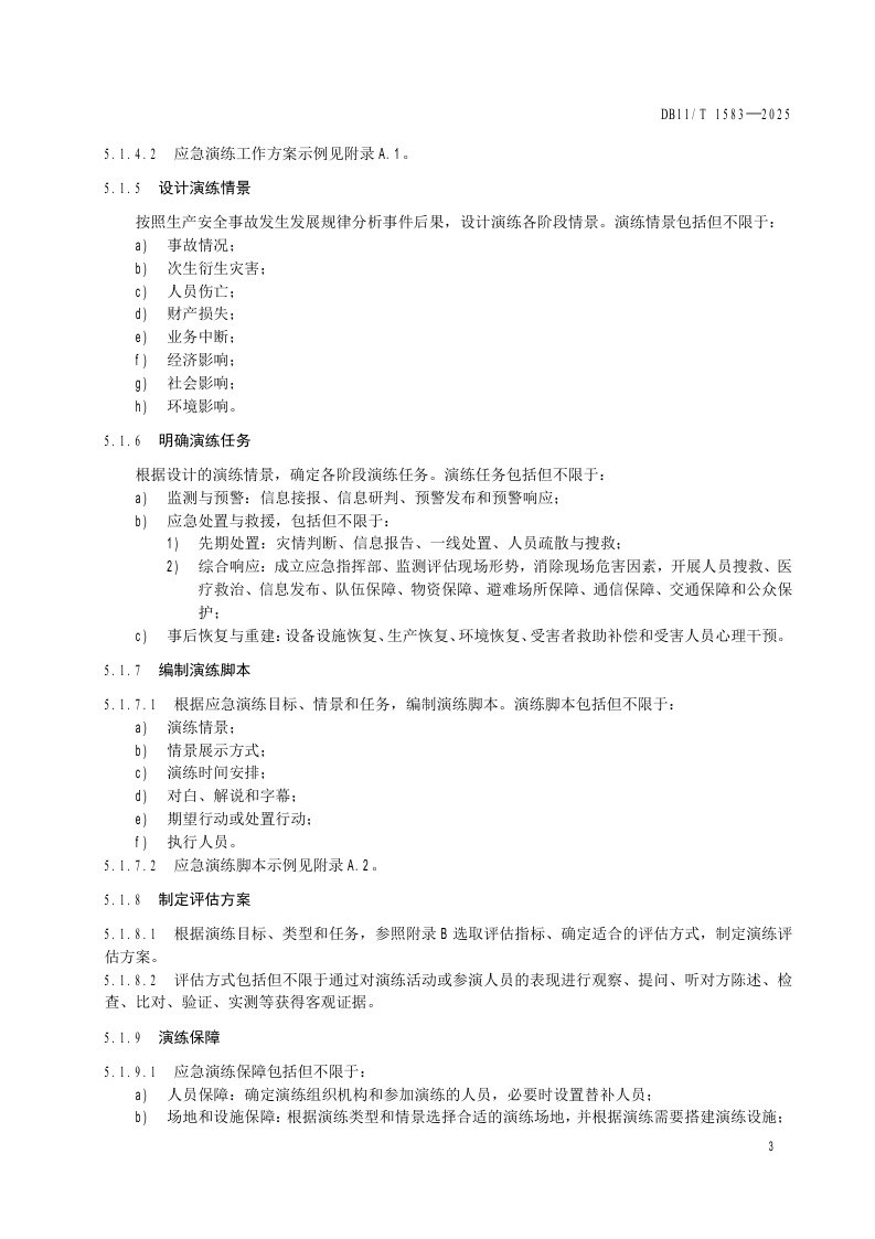 北京市《生产安全事故应急演练实施与评估》(DB11/T 1583-2025)