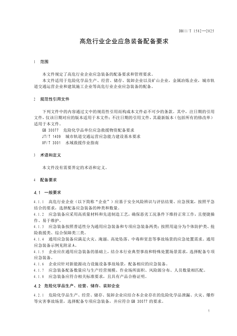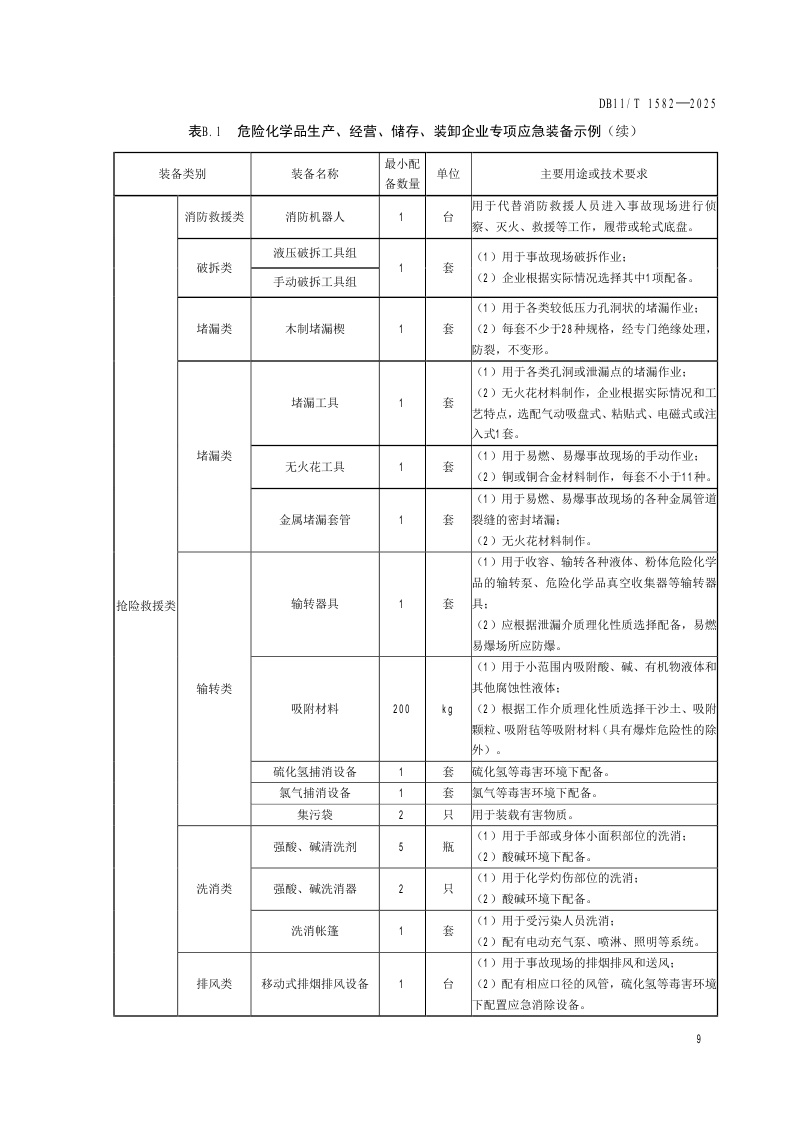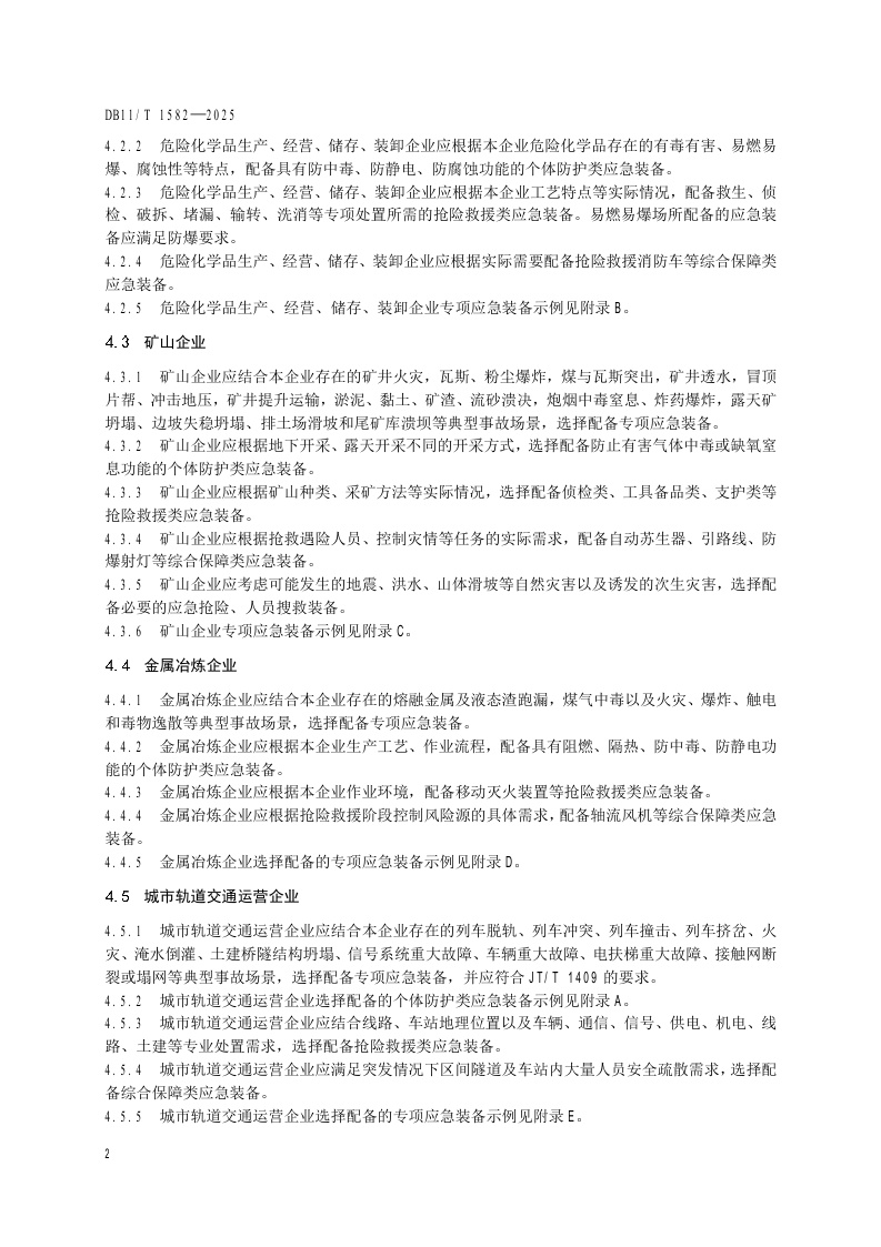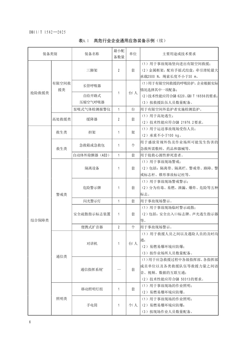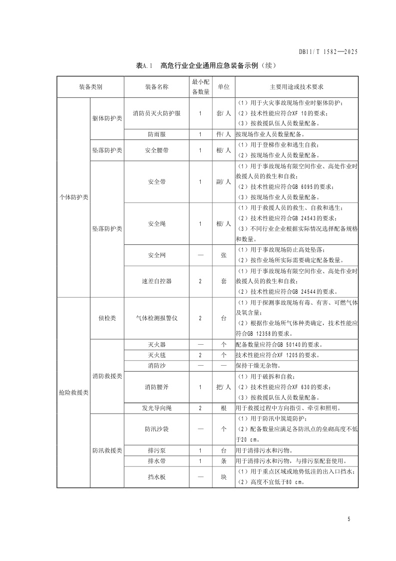 北京市《高危行业企业应急装备配备要求》(DB11/T 1582-2025)
