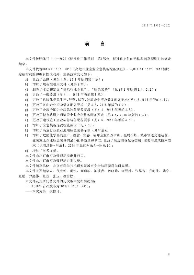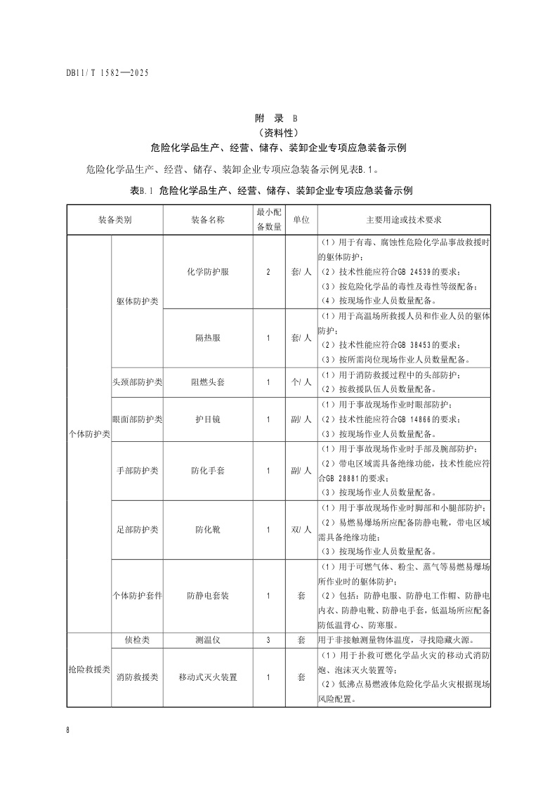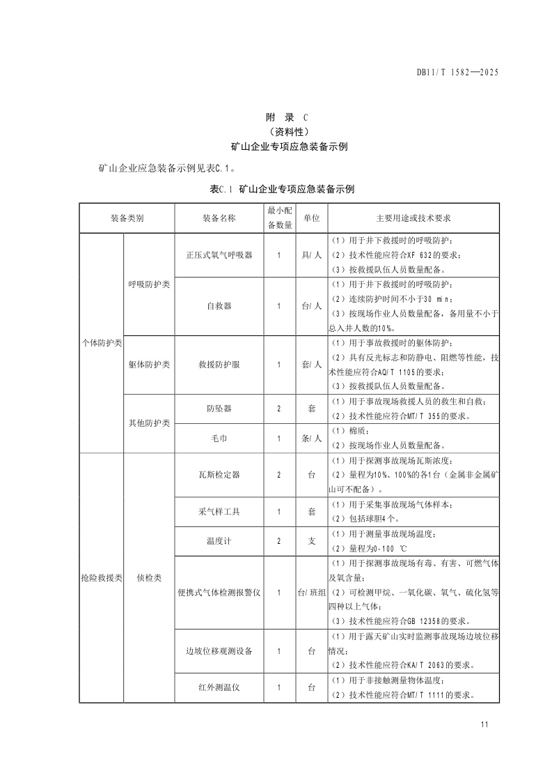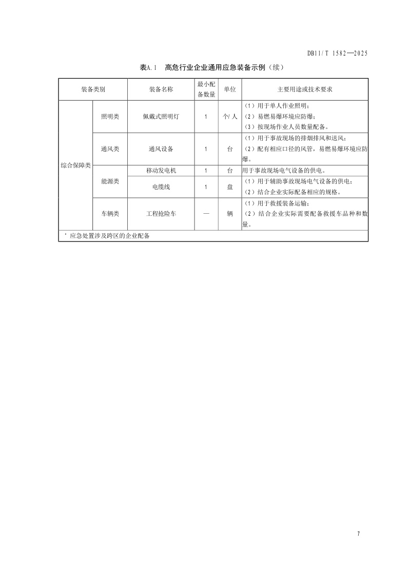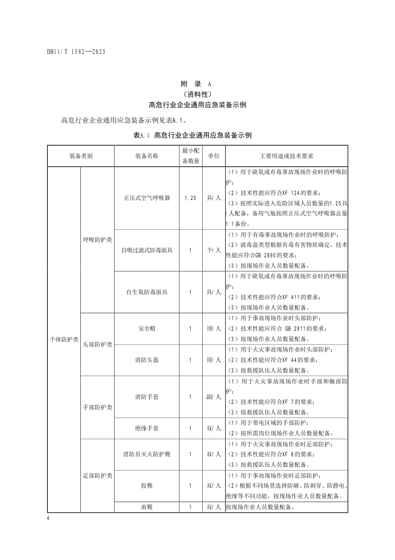 北京市《高危行业企业应急装备配备要求》(DB11/T 1582-2025)