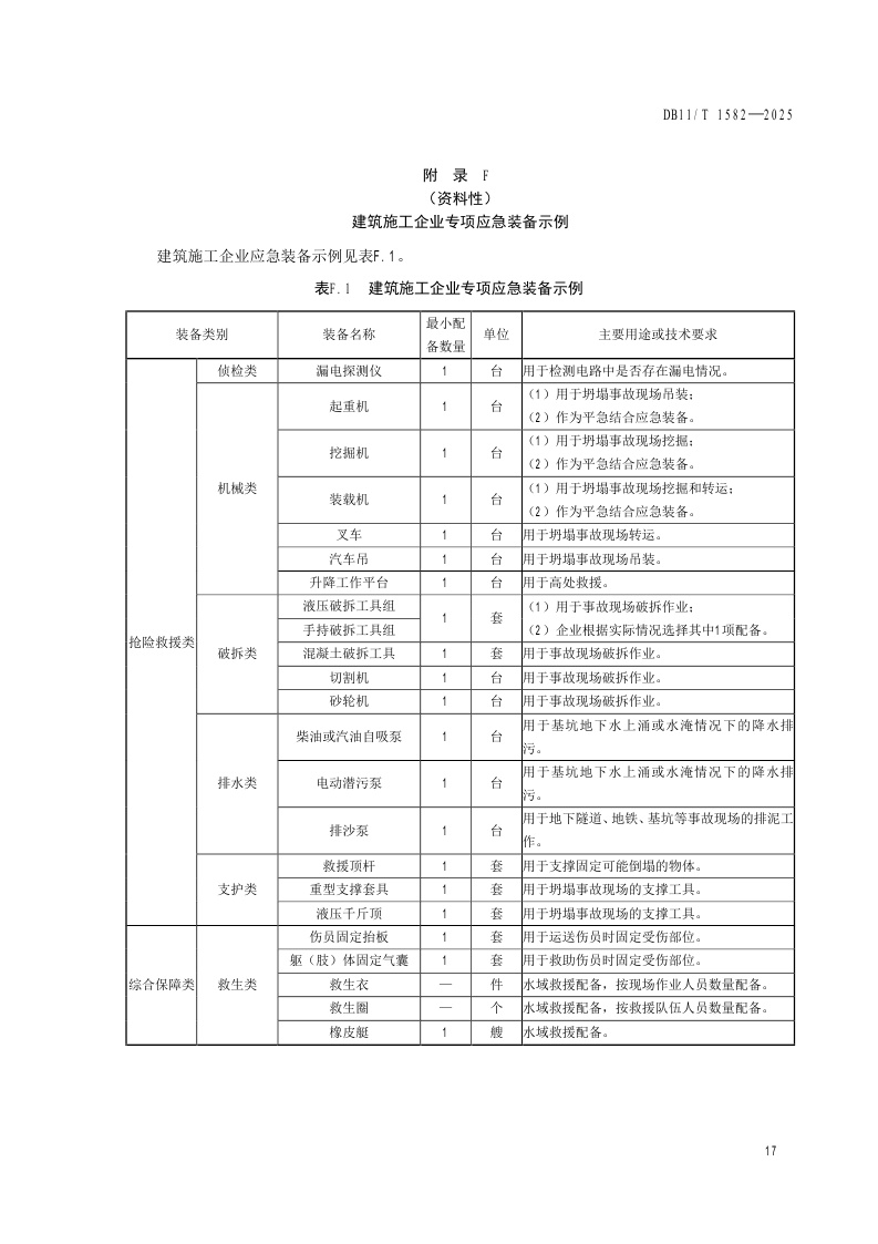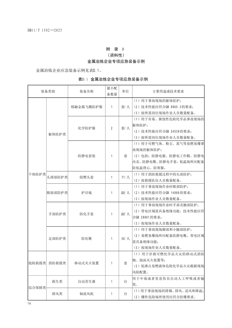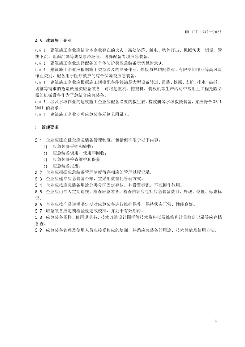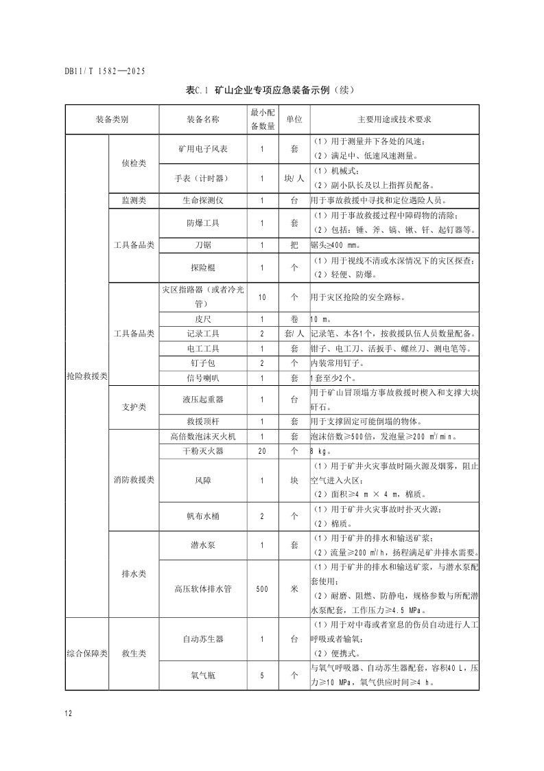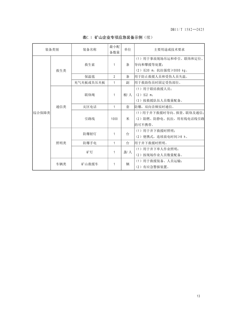 北京市《高危行业企业应急装备配备要求》(DB11/T 1582-2025)