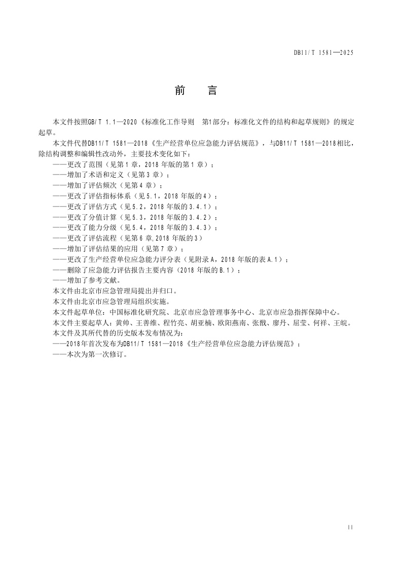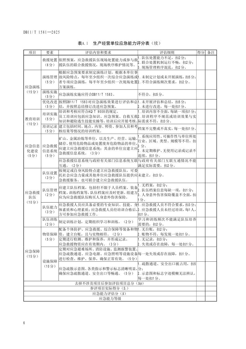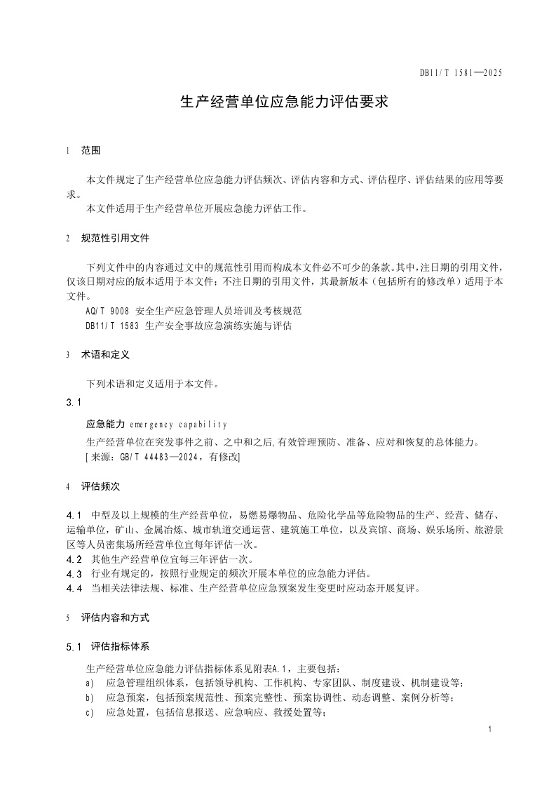 北京市《生产经营单位应急能力评估要求》(DB11/T 1581-2025)