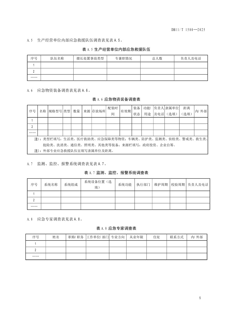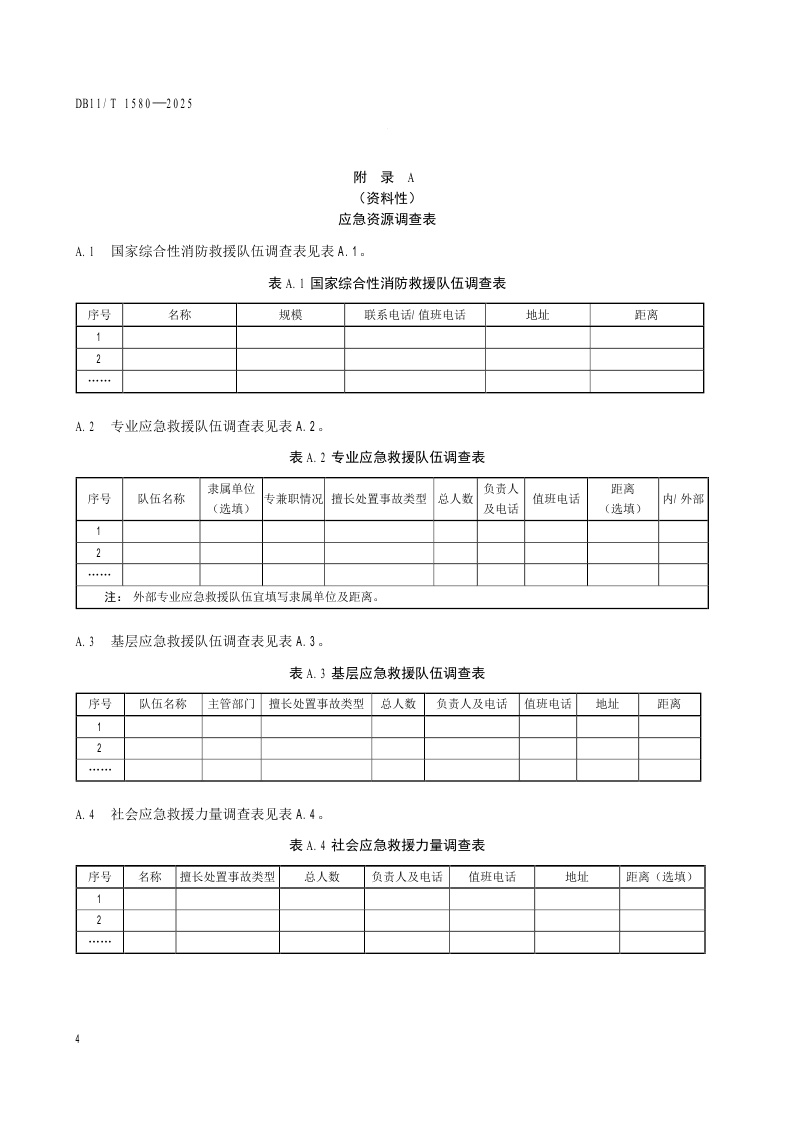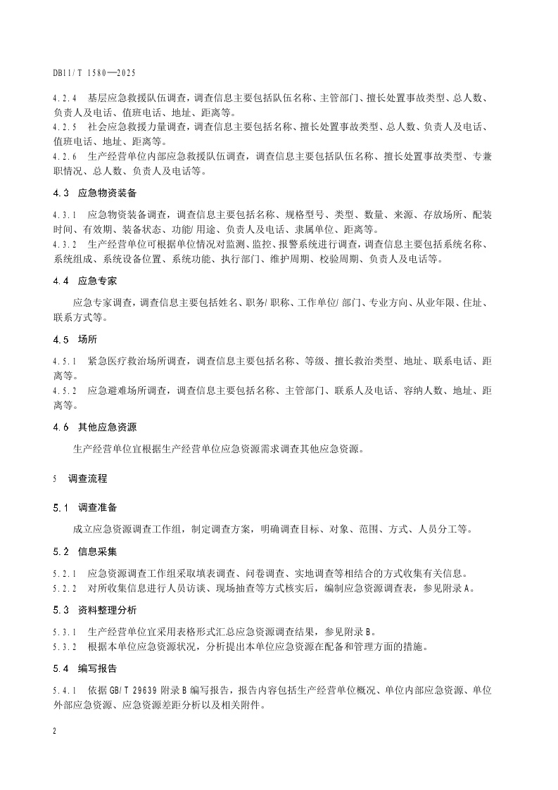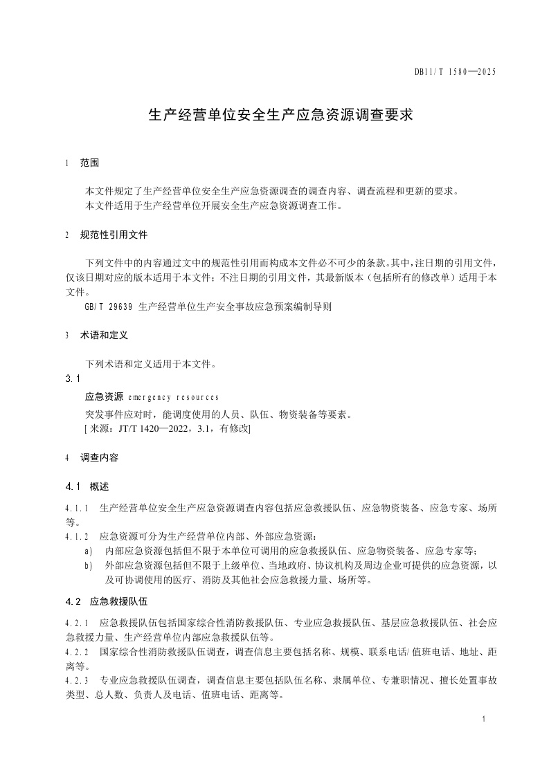 北京市《生产经营单位安全生产应急资源调查要求》(DB11/T 1580-2025)