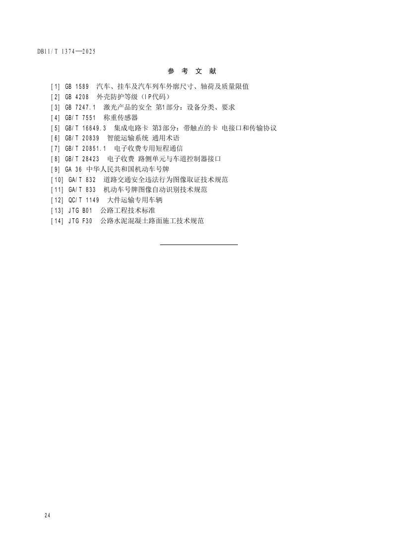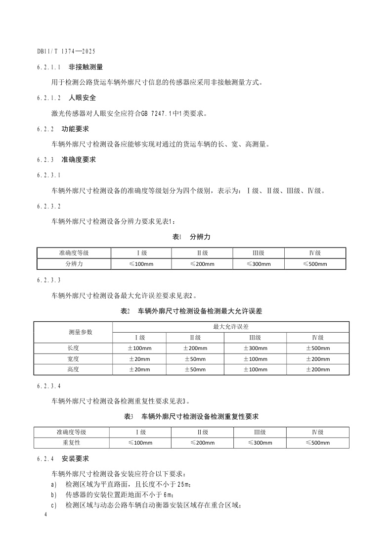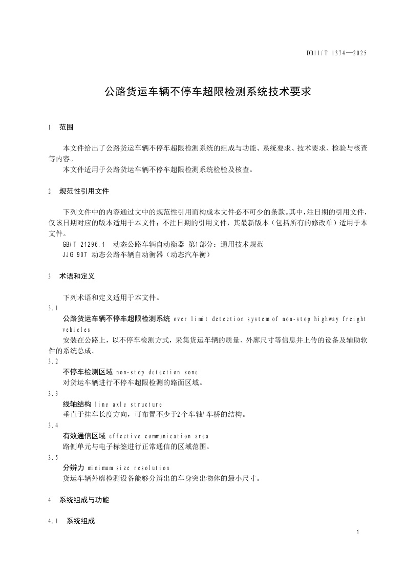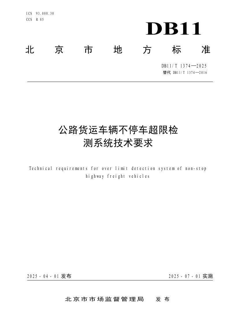北京市《公路货运车辆不停车超限检测系统技术要求》(DB11/T 1374-2025)