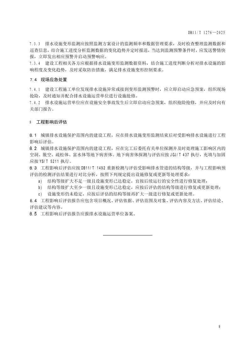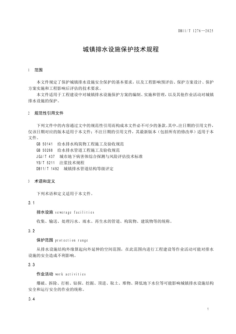 北京市《城镇排水设施保护技术规程》(DB11/T 1276-2025)