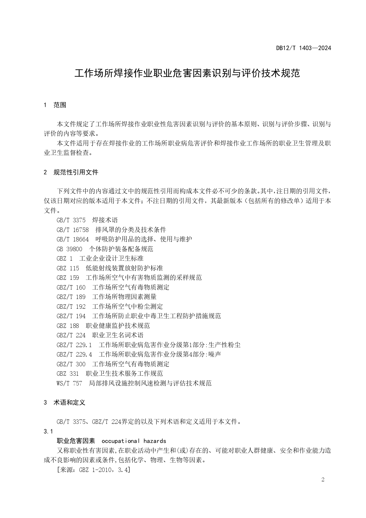 工作场所焊接作业职业危害因素识别与评价技术规范DB12/T 1403-2024
