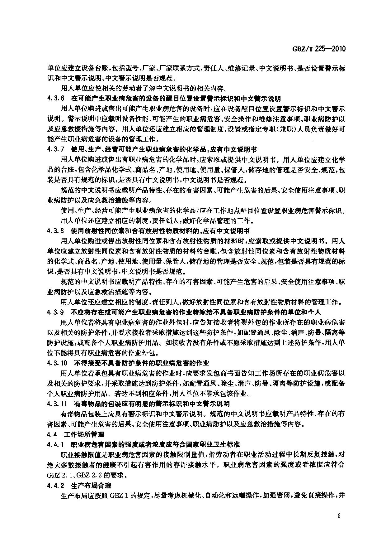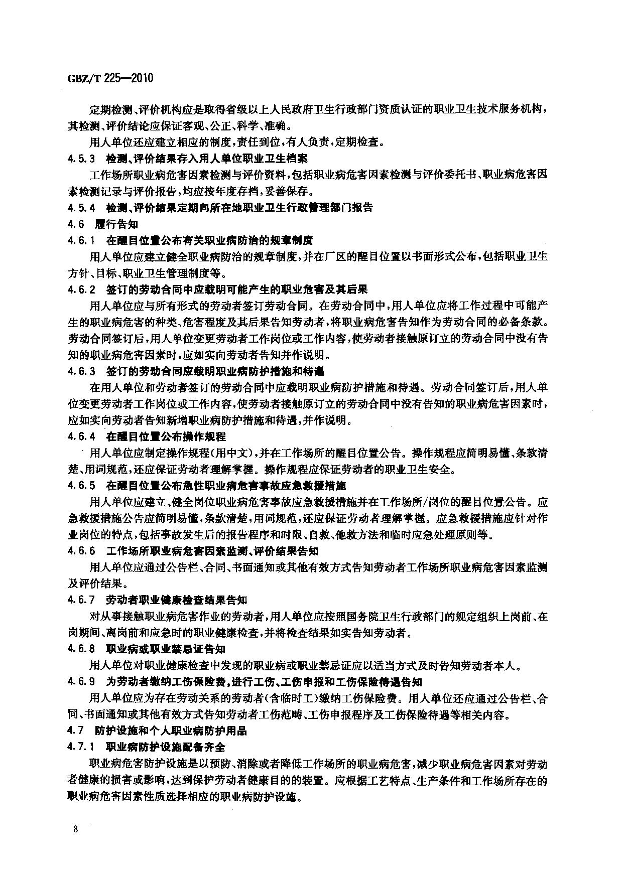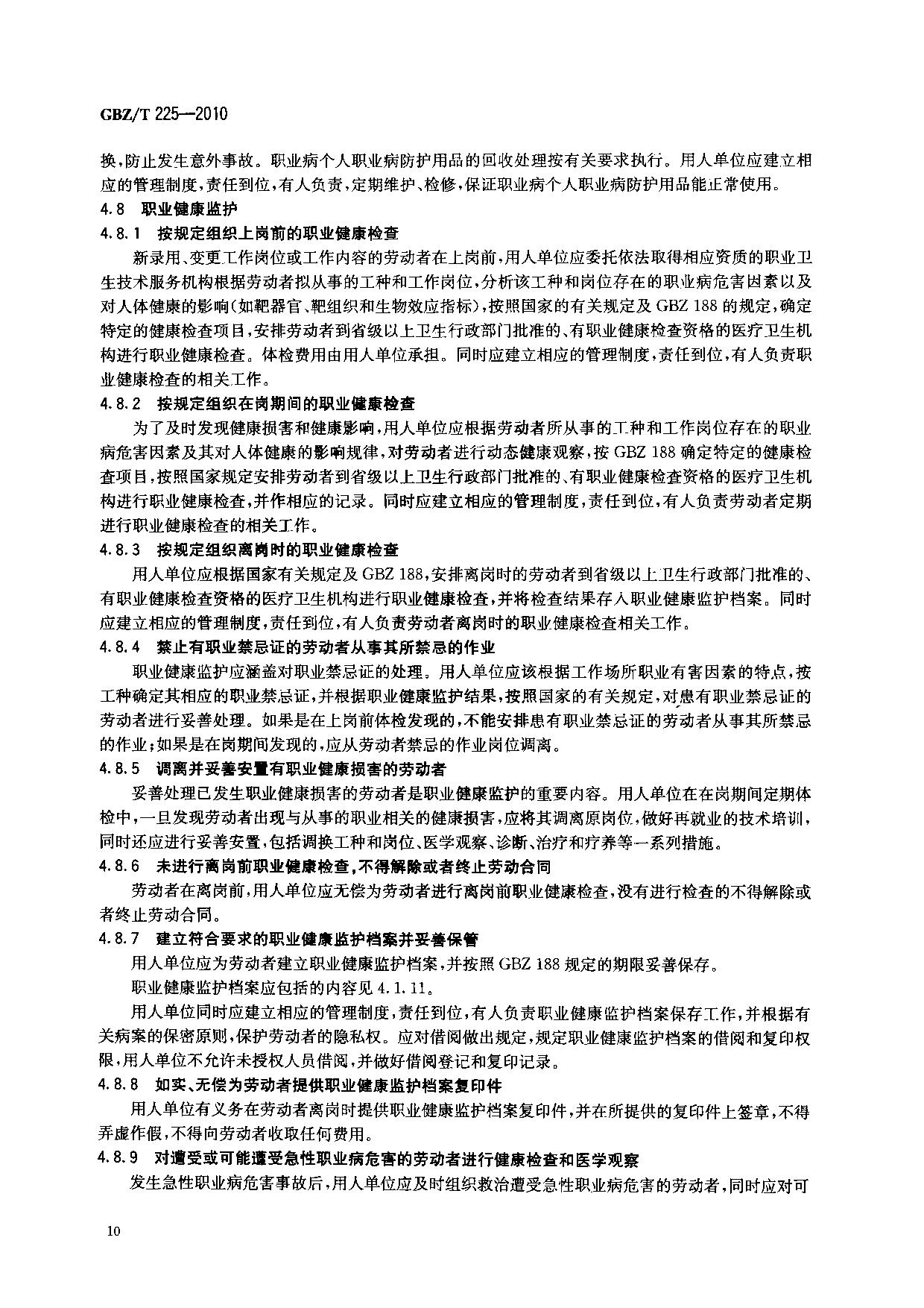 《用人单位职业病防治指南》(GBZ/T225-2010)