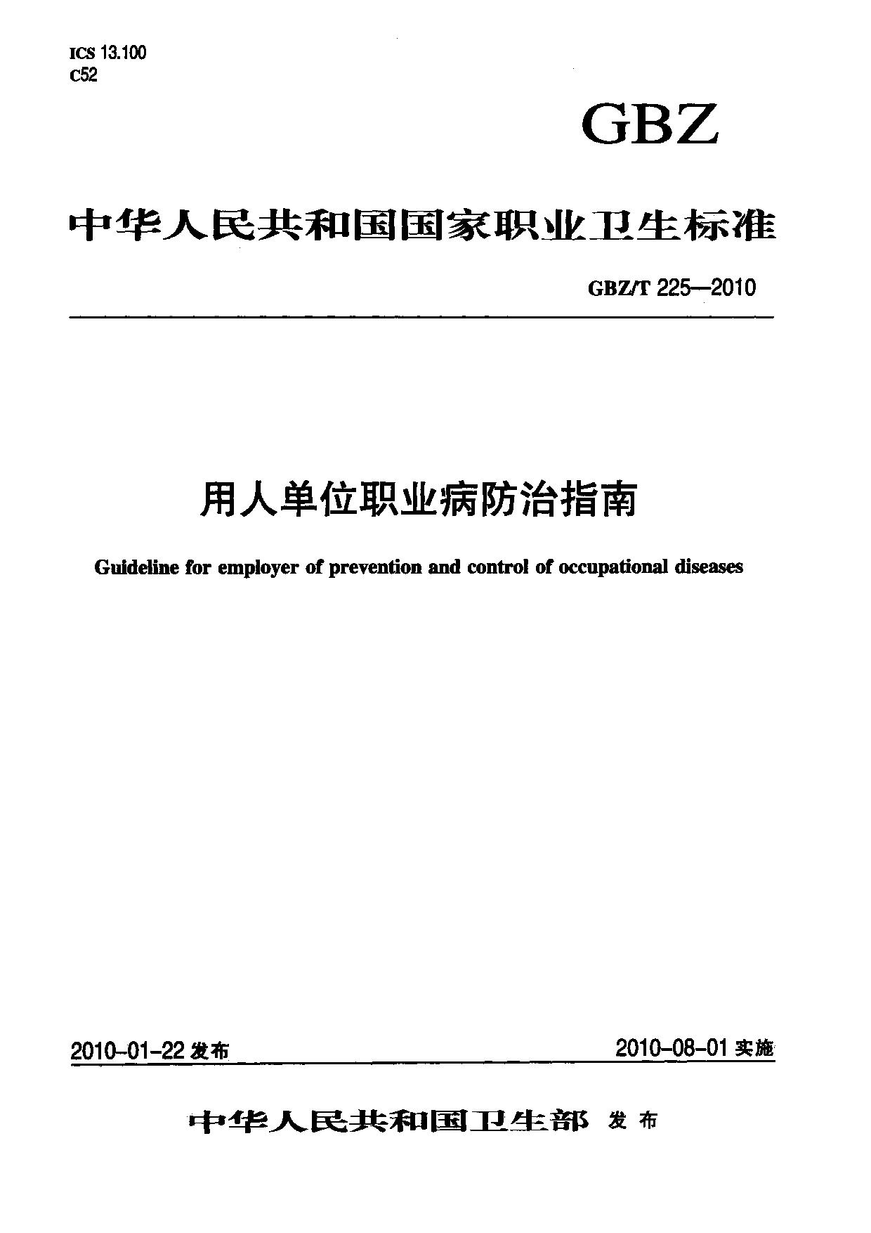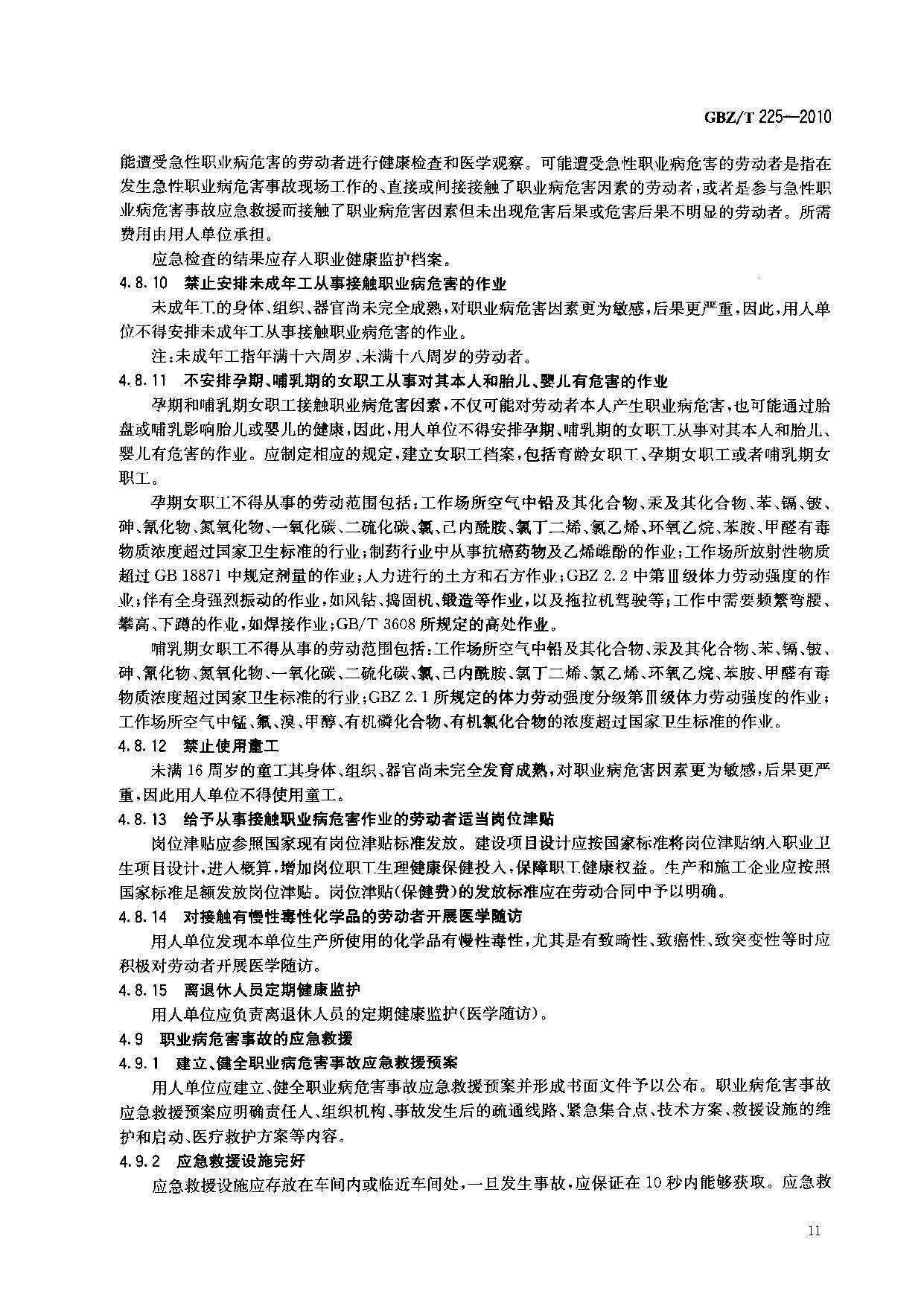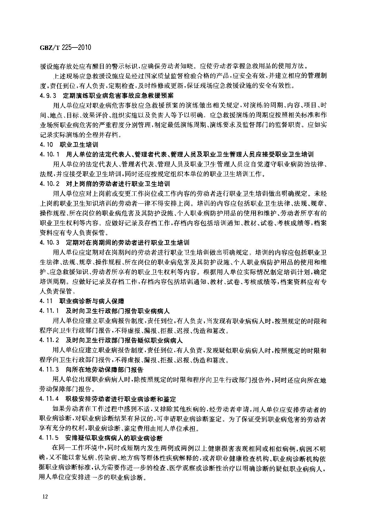 《用人单位职业病防治指南》(GBZ/T225-2010)