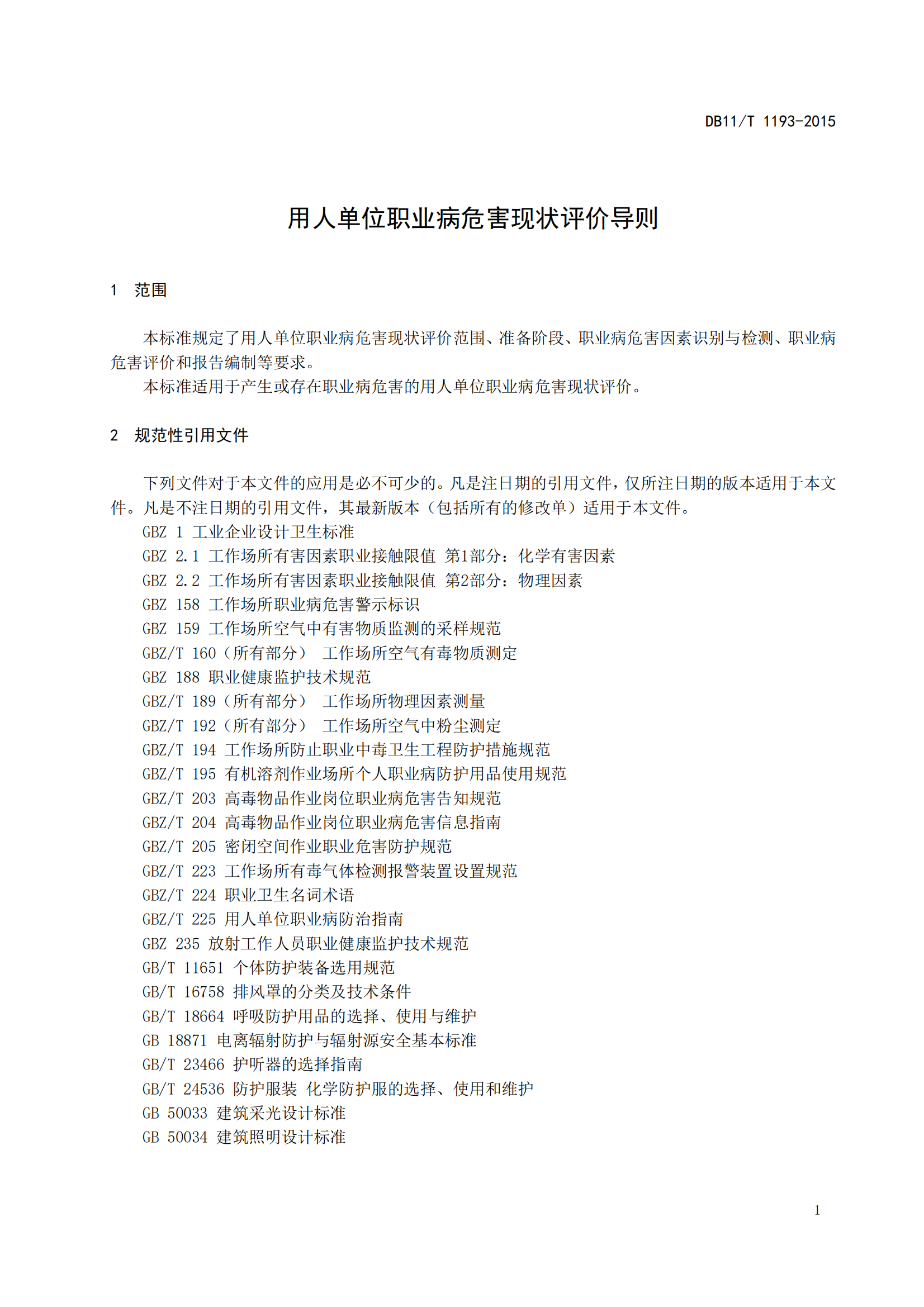 用人单位职业病危害现状评价导则