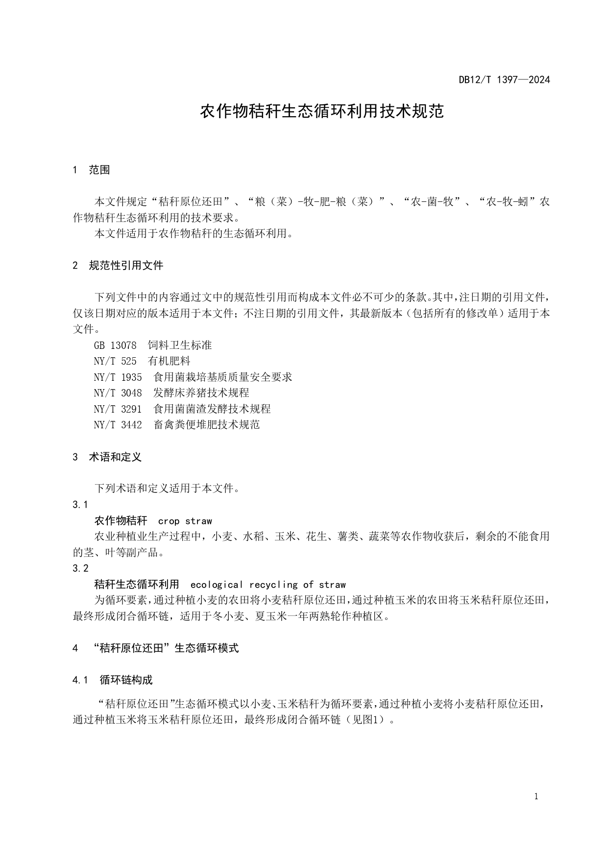 农作物秸秆生态循环利用技术规范DB12/T 1397-2024