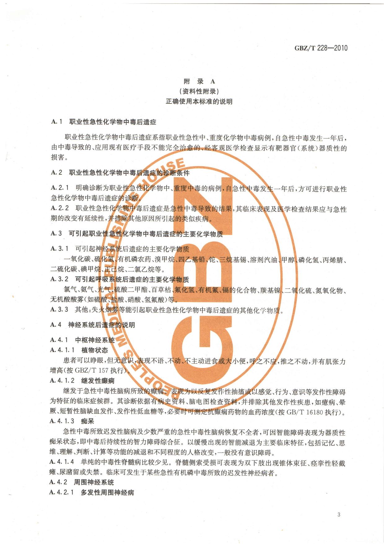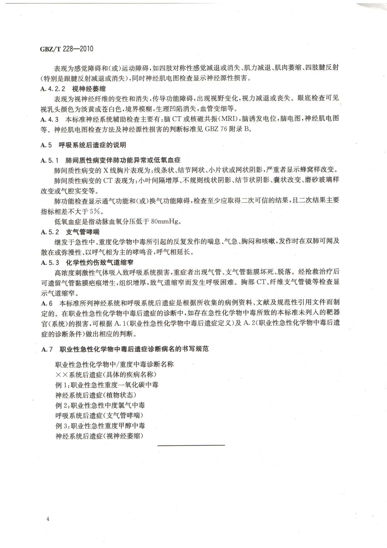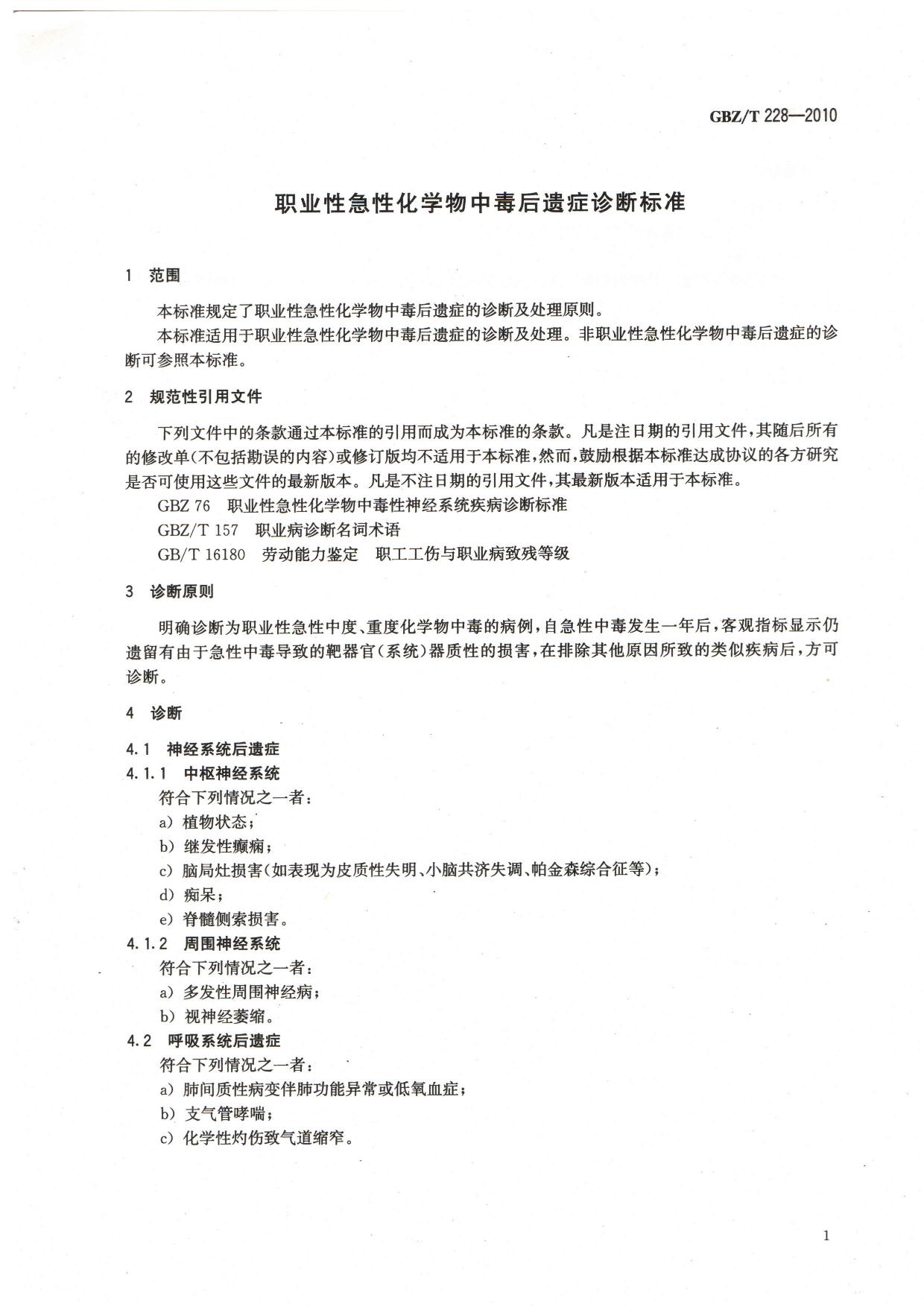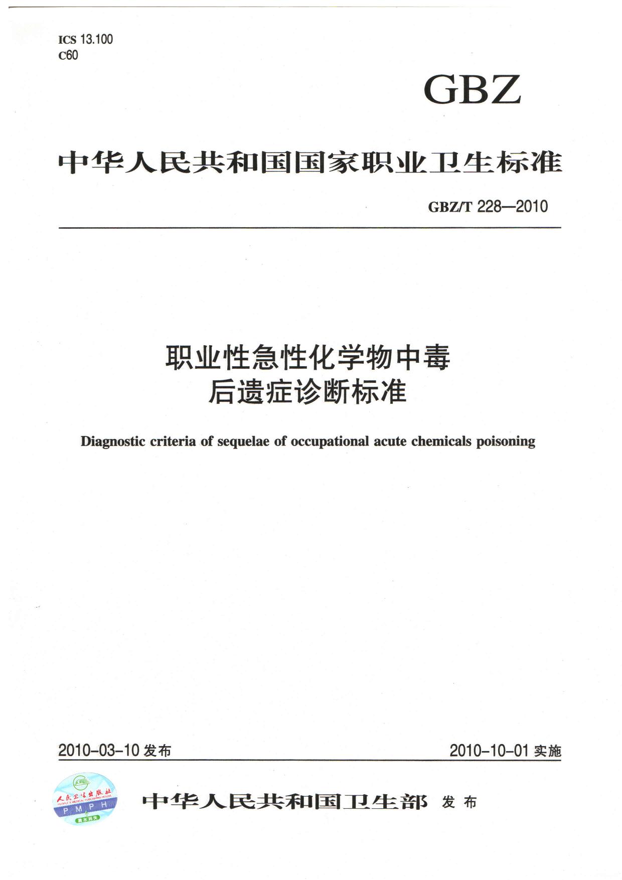 《职业性急性化学物中毒后遗症诊断标准》(GBZ/T228-2010)