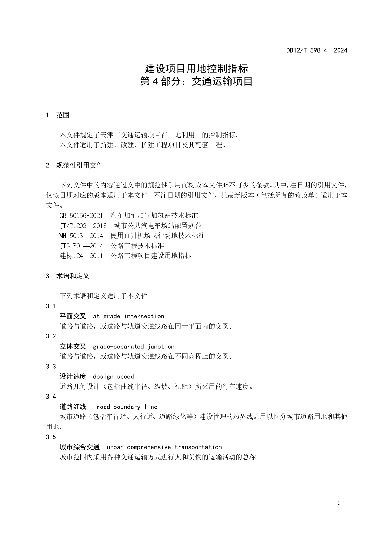 建设项目用地控制指标第4部分:交通运输项目DB12/T 598.4-2024