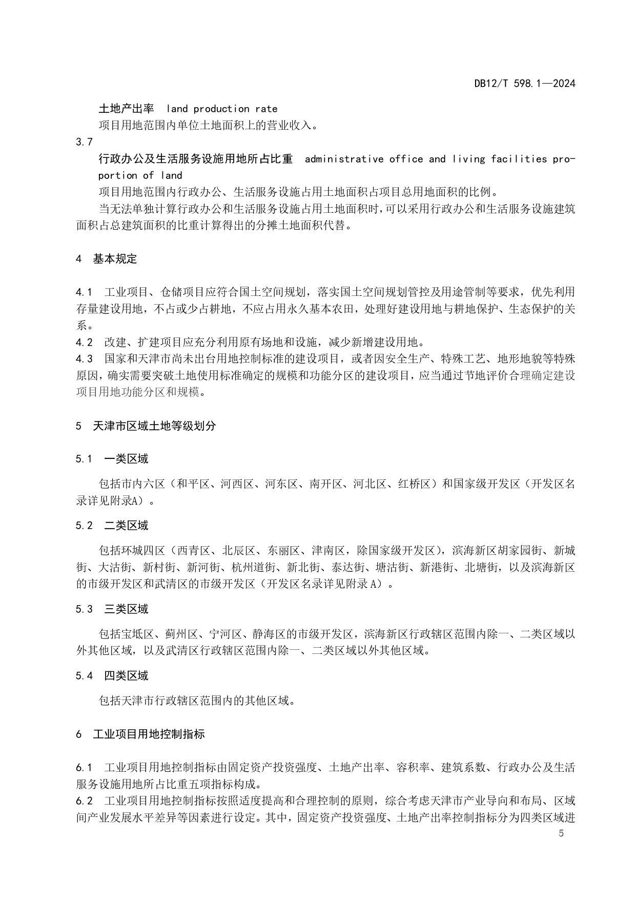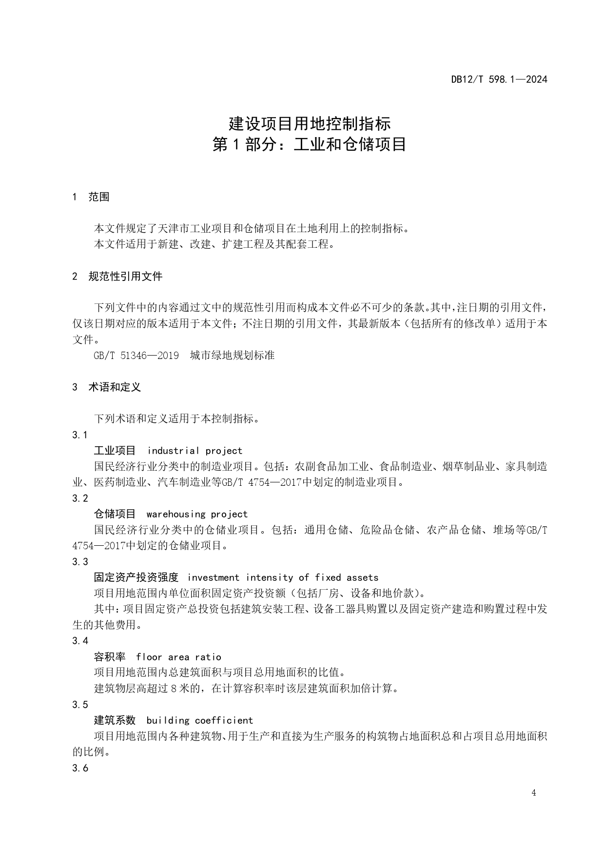 建设项目用地控制指标第1部分:工业和仓储项目DB12/T 598.1-2024