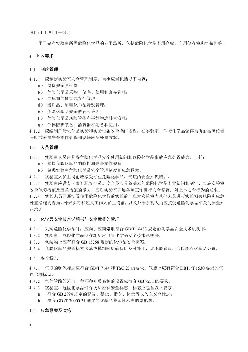 北京市《实验室危险化学品安全管理要求 第1部分:工业企业》(DB11/T 1191.1-2025)