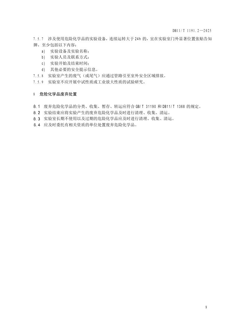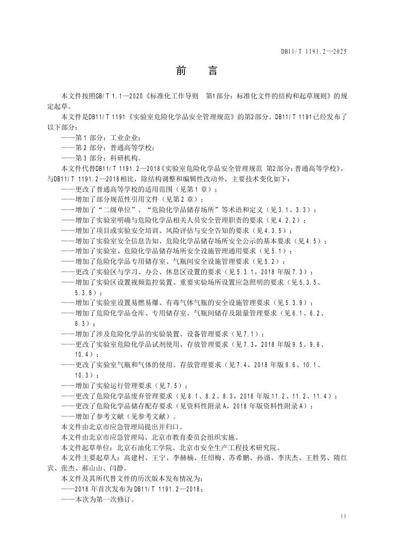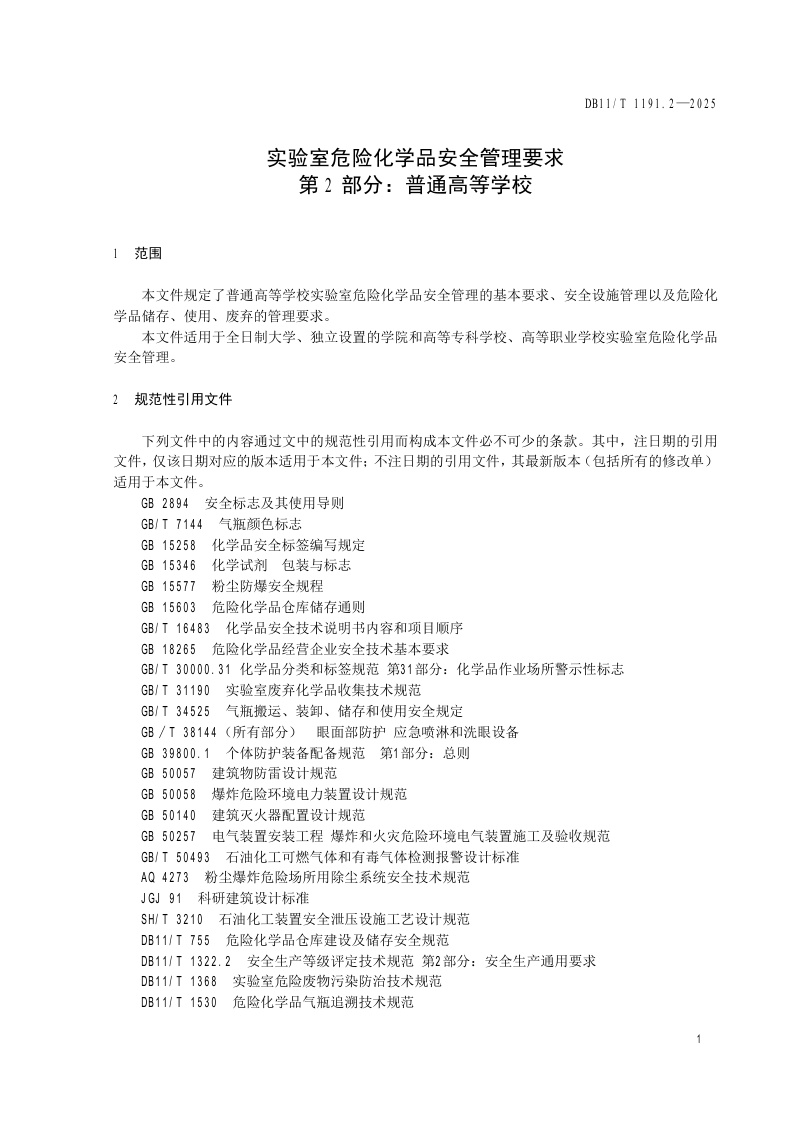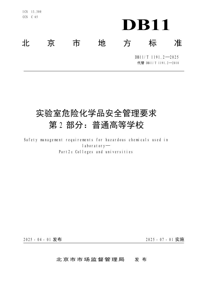 北京市《实验室危险化学品安全管理要求 第2部分:普通高等学校》(DB11/T 1191.2-2025)