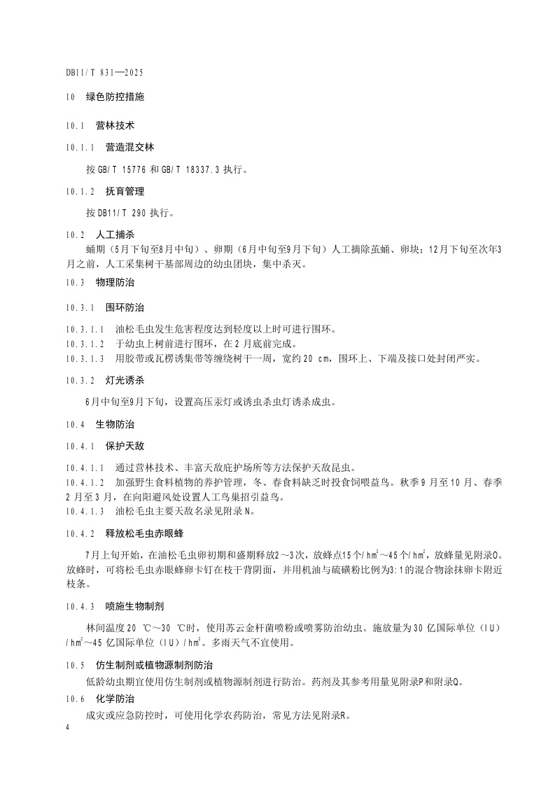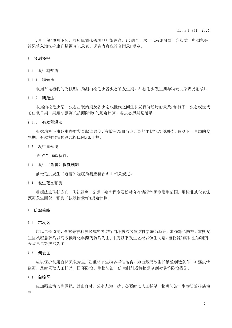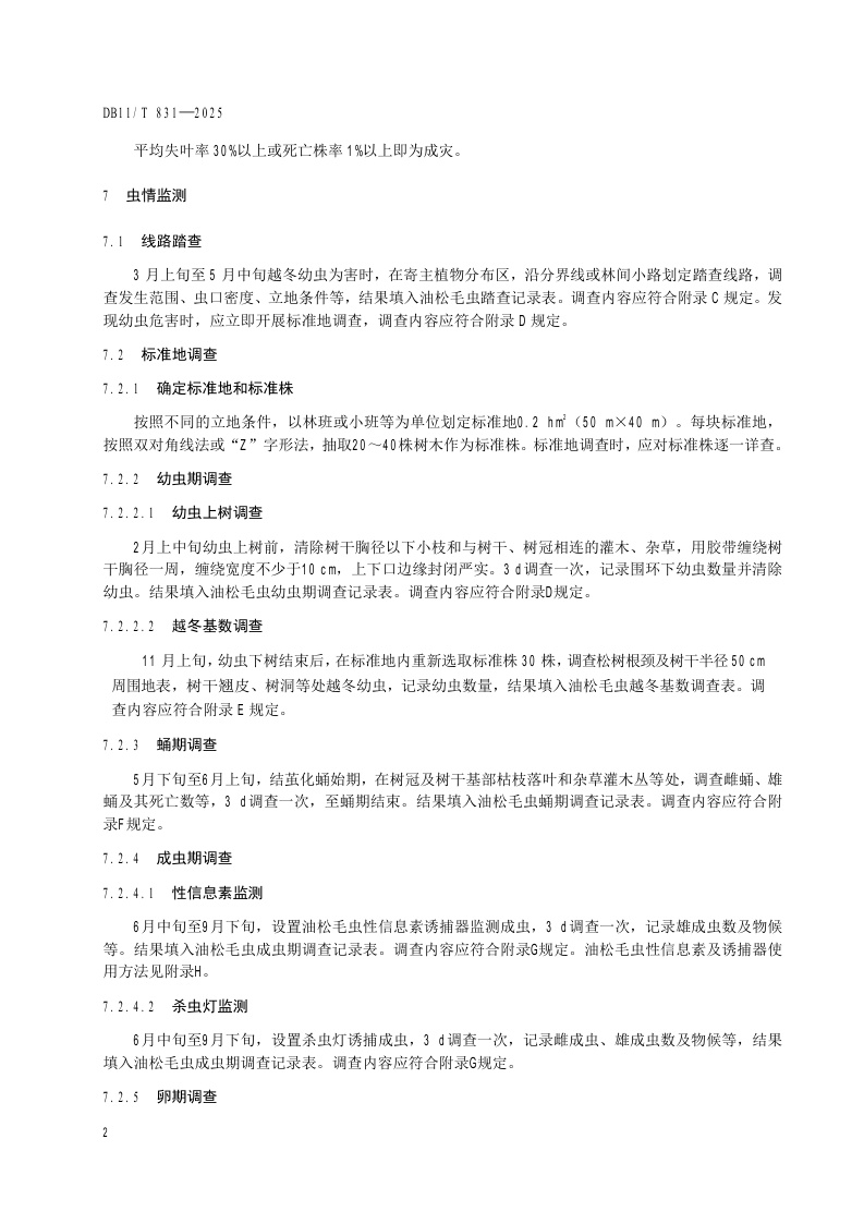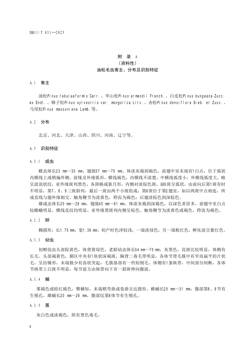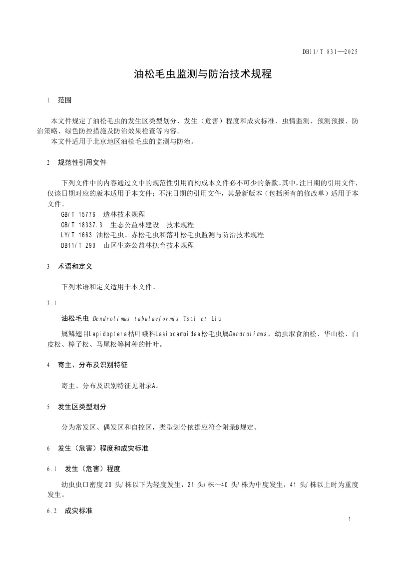 北京市《油松毛虫监测与防治技术规程》(DB11/T 831-2025)