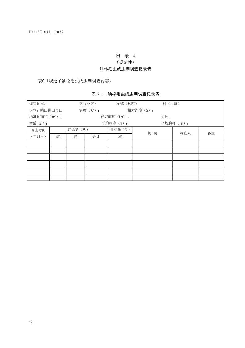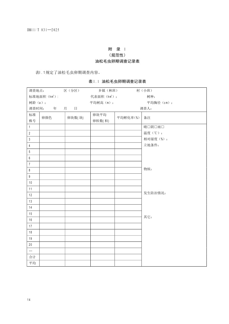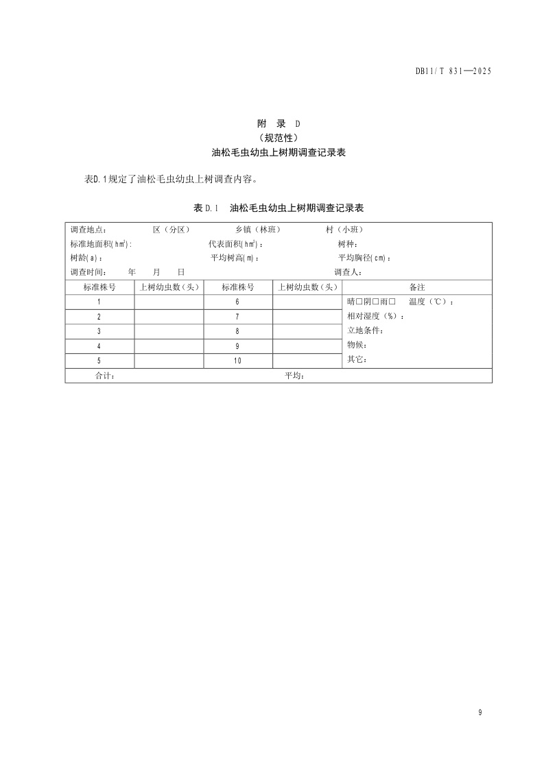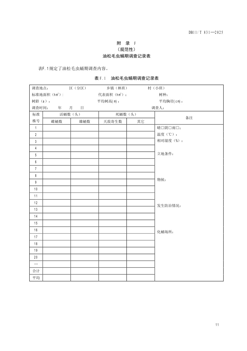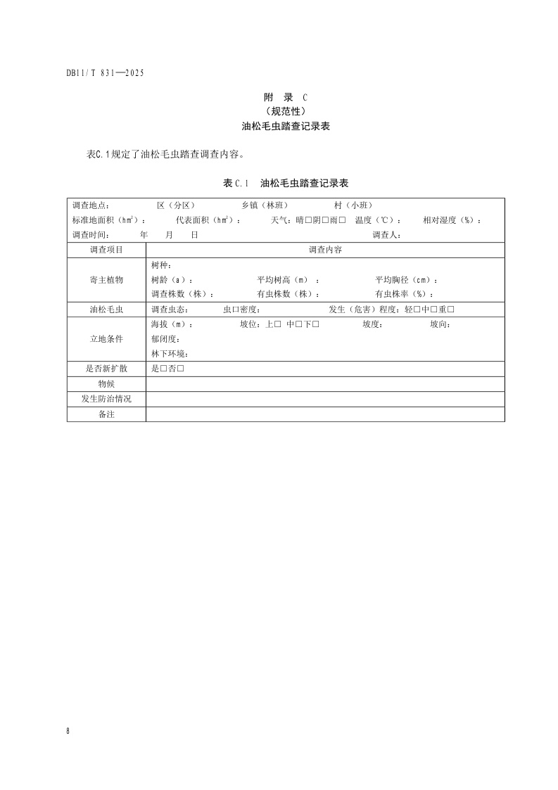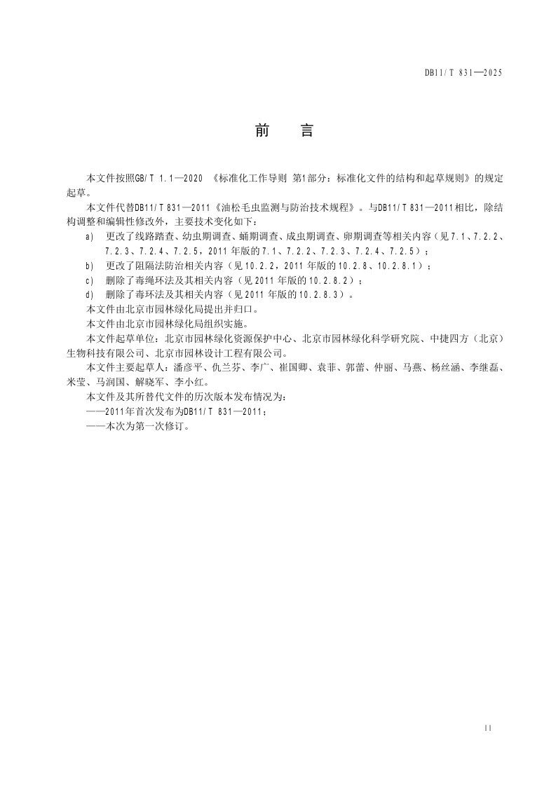 北京市《油松毛虫监测与防治技术规程》(DB11/T 831-2025)