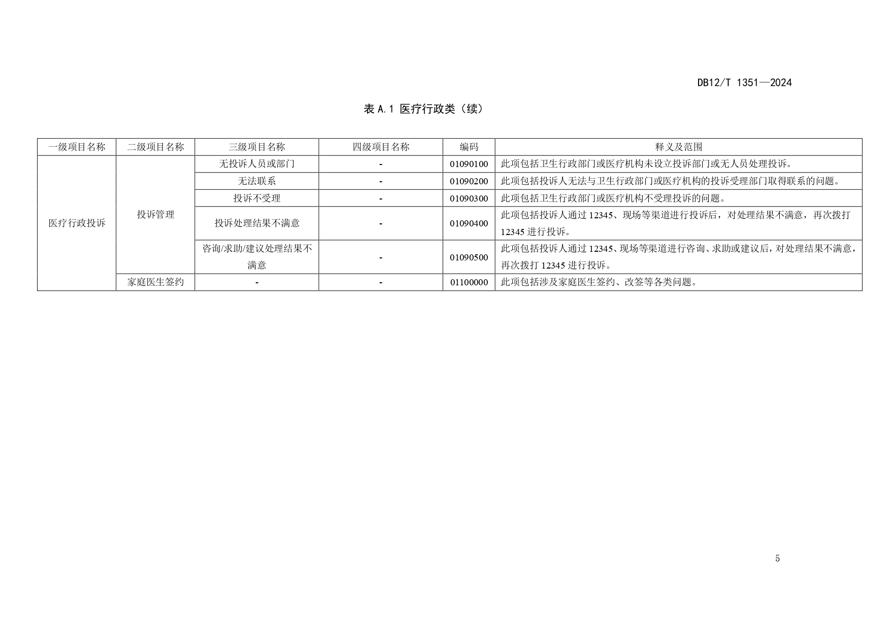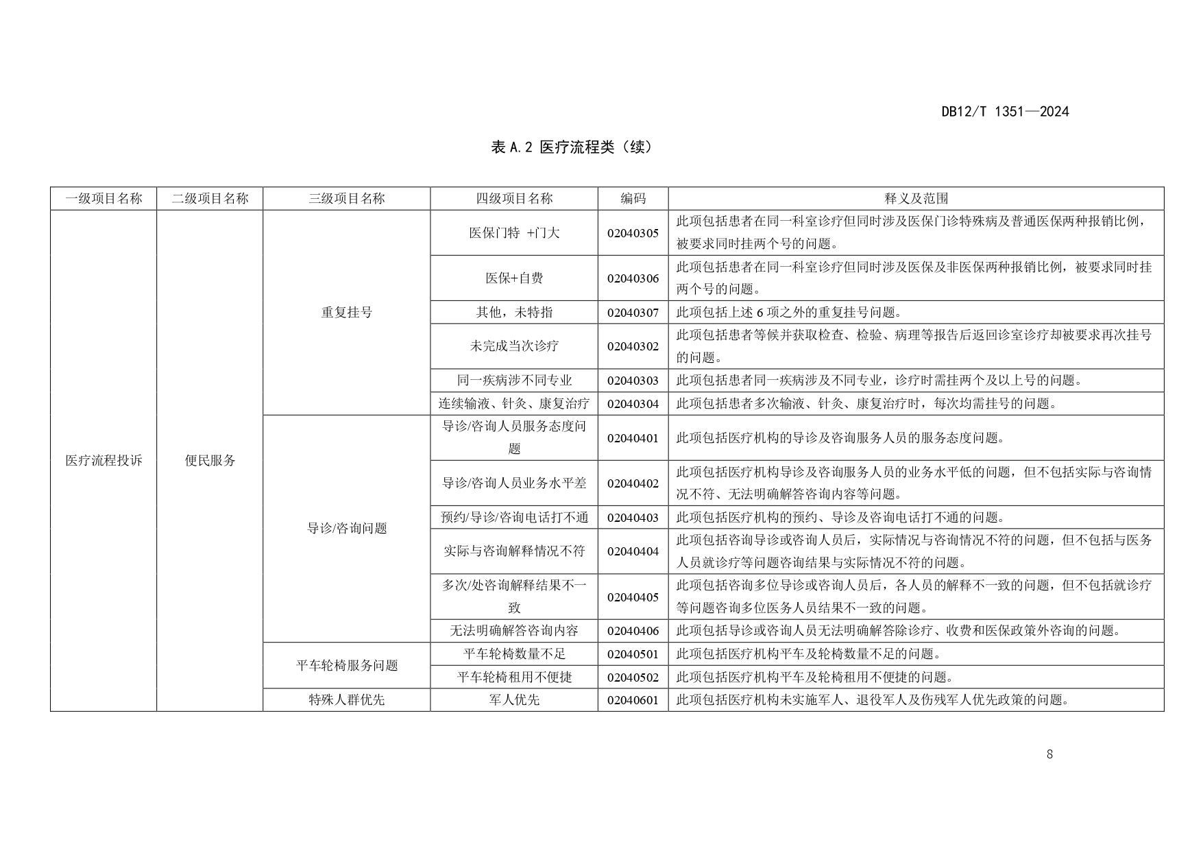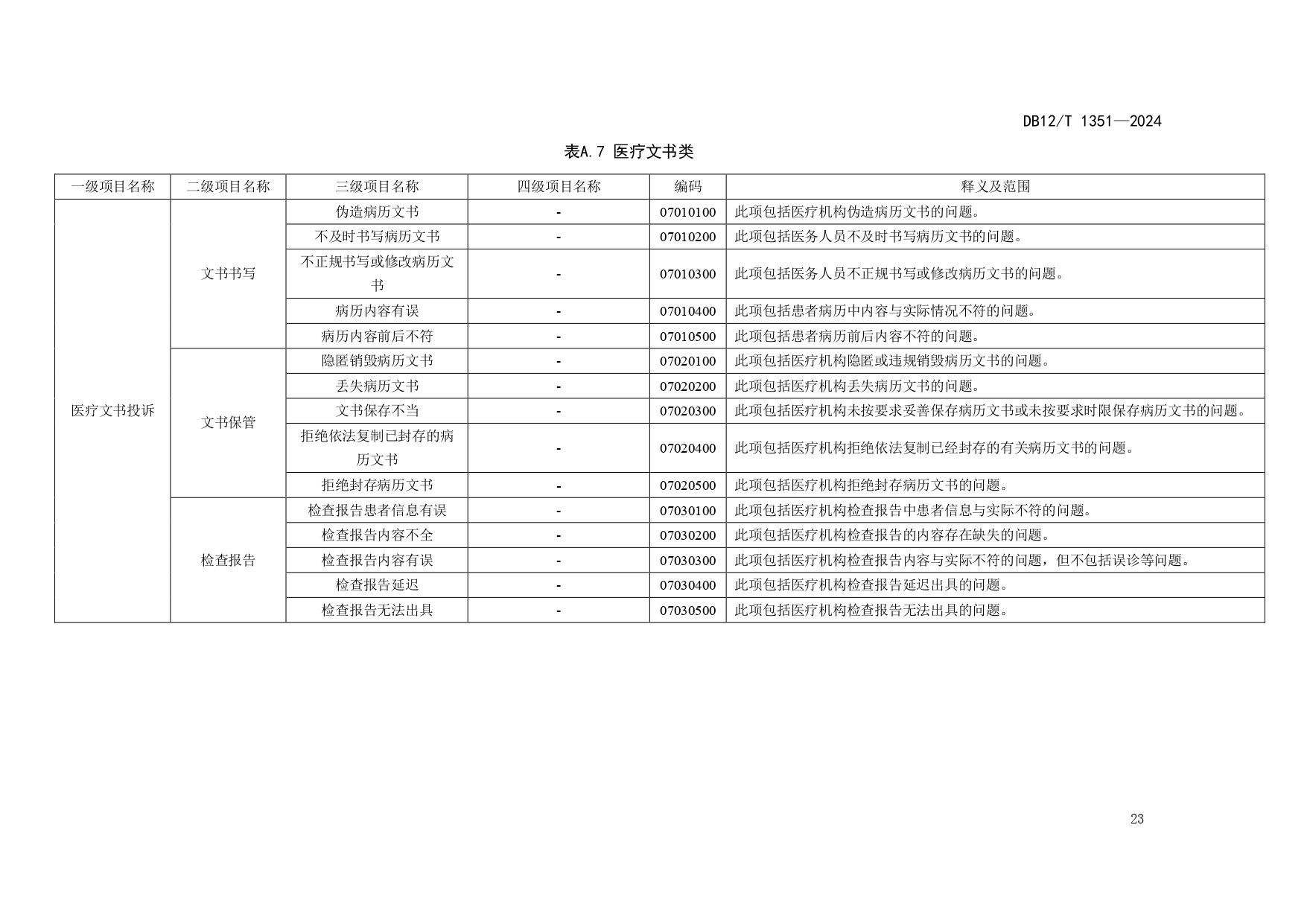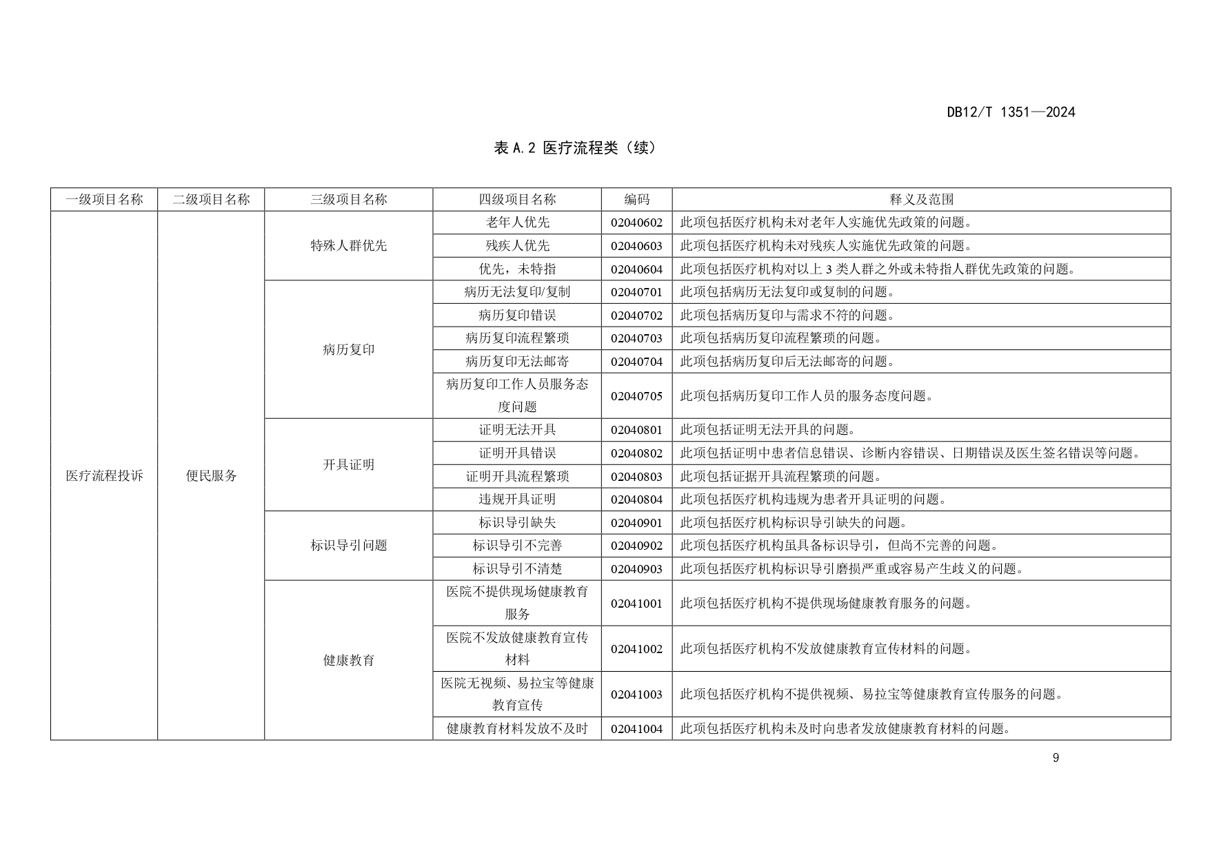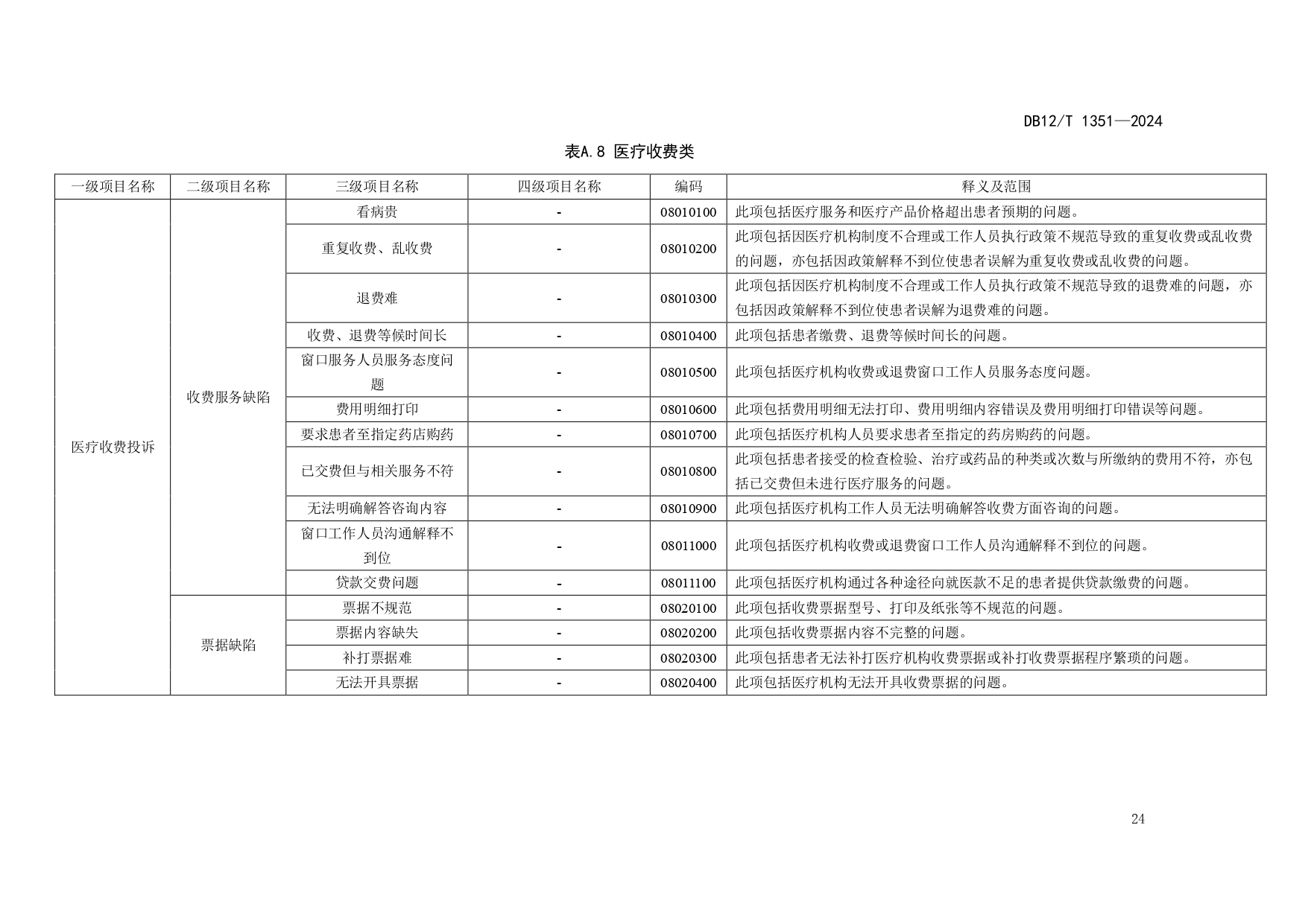 卫生健康行业投诉分类编码DB12/T 1351-2024