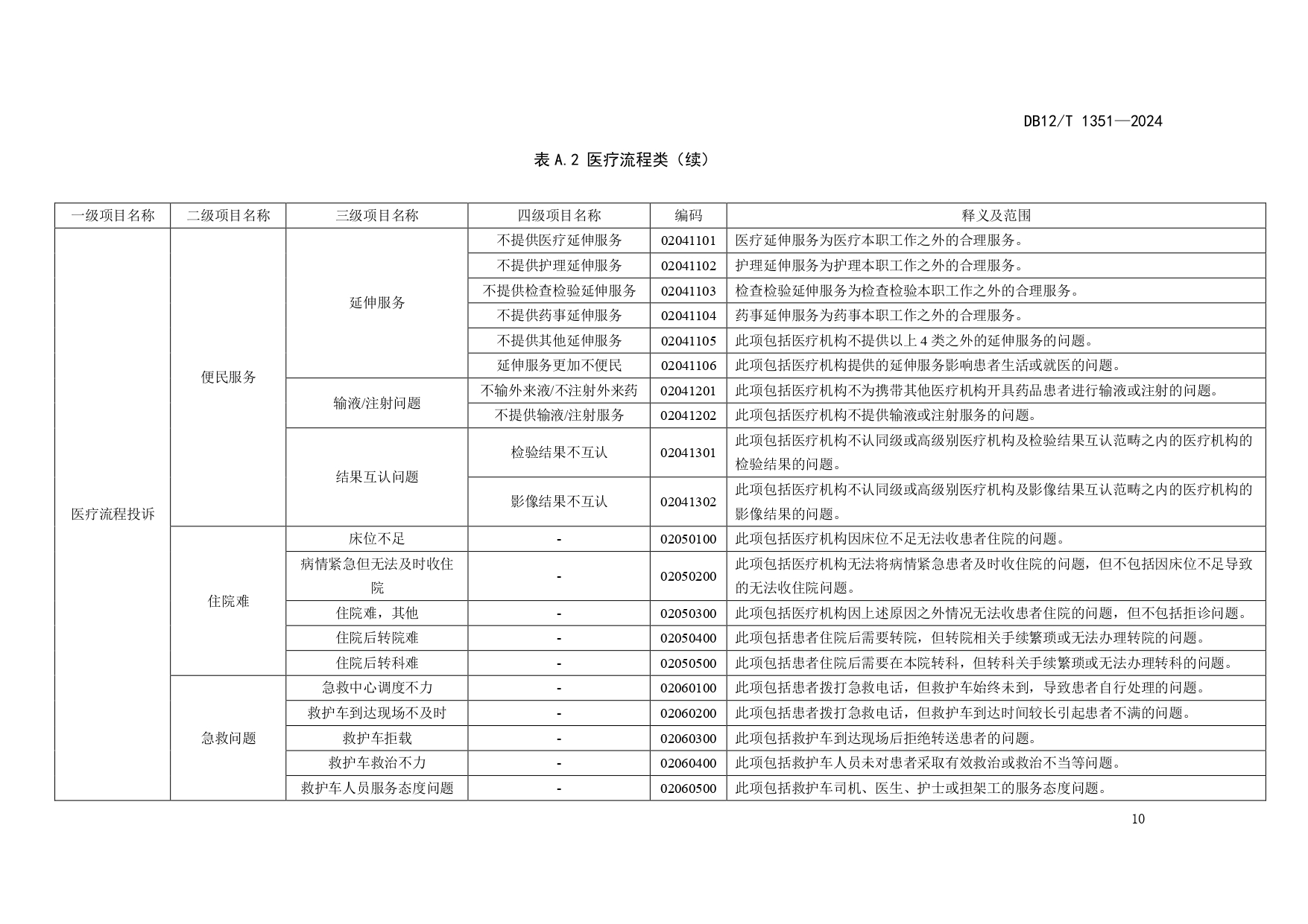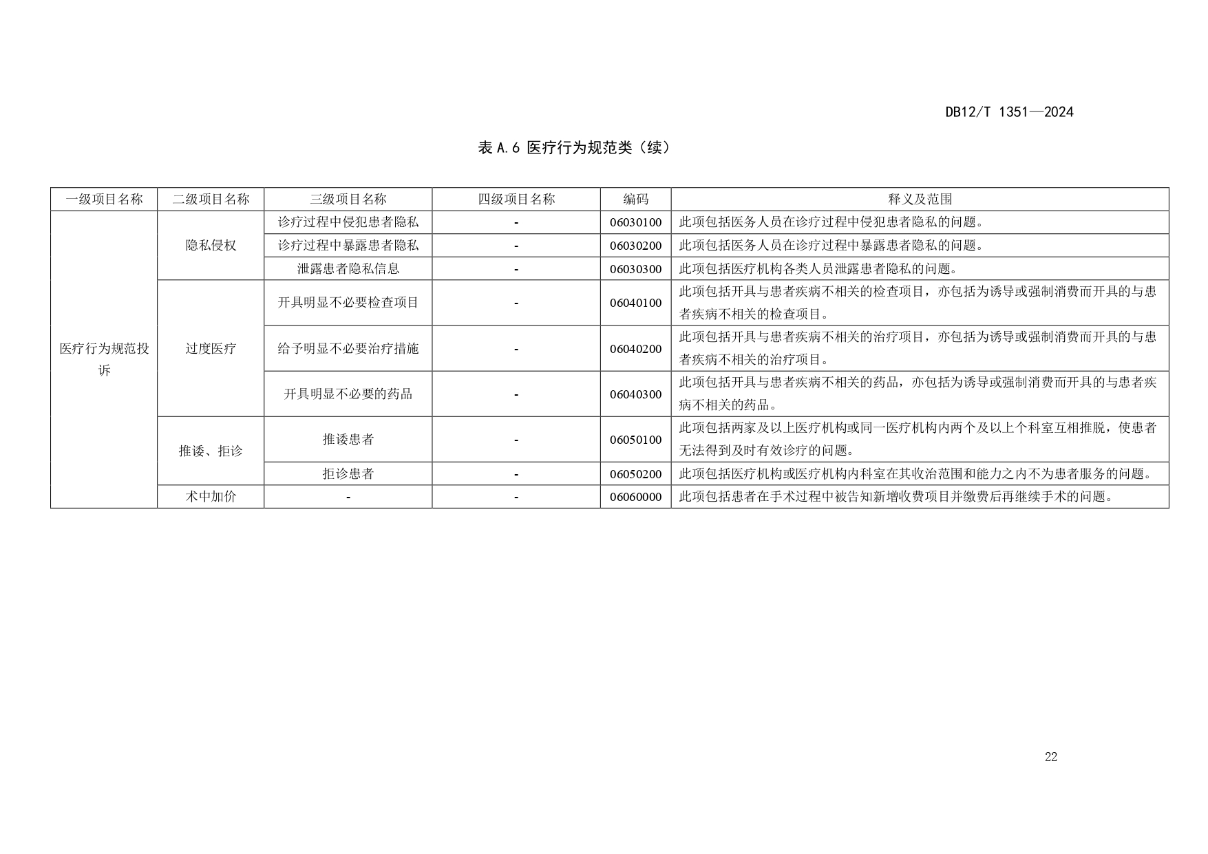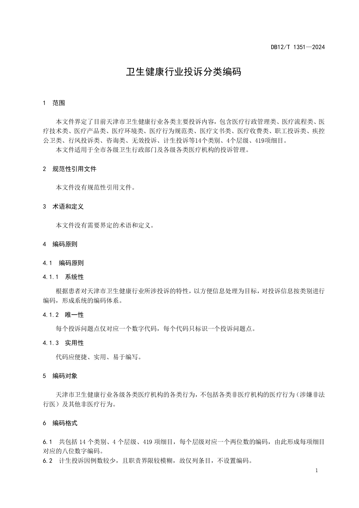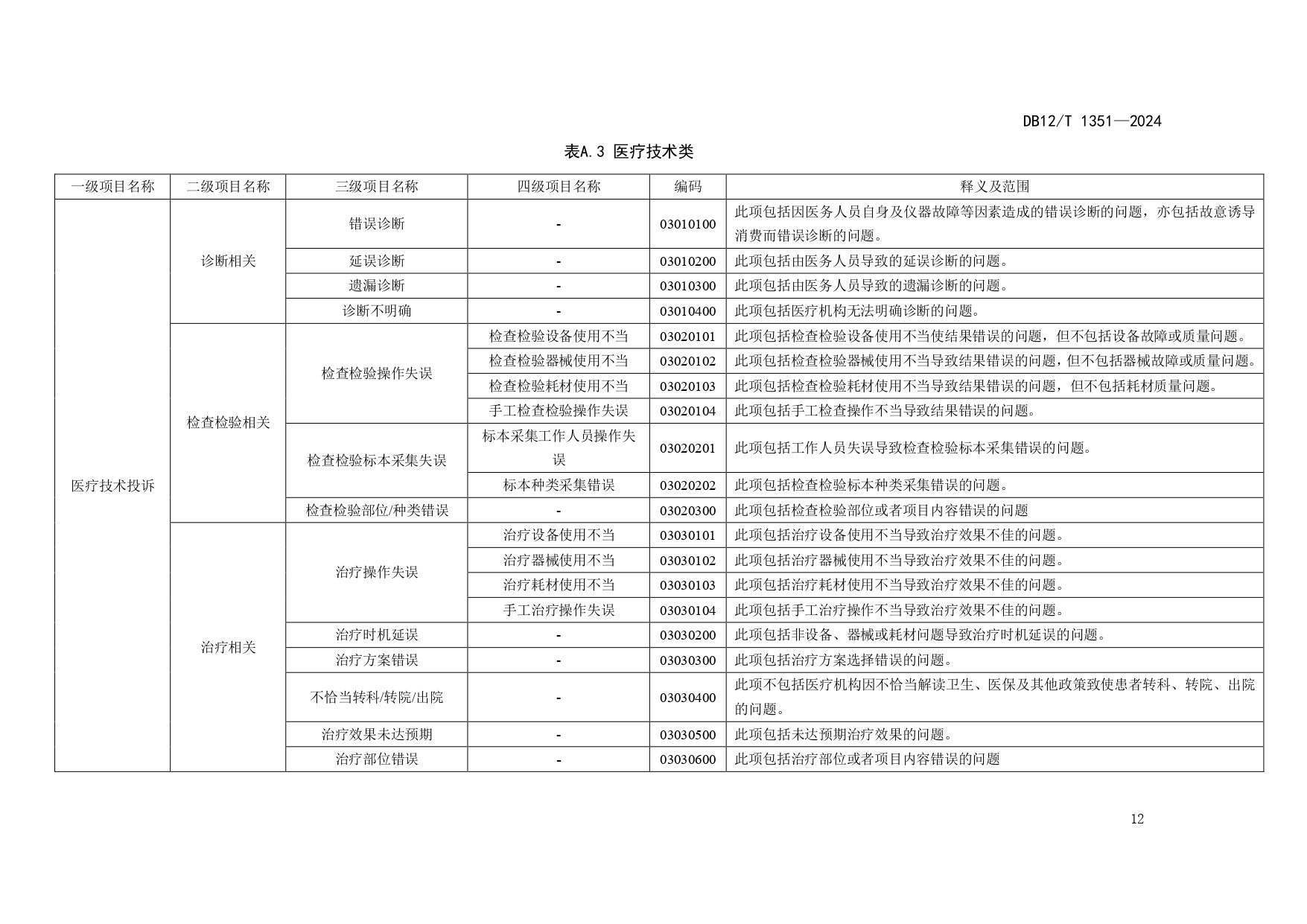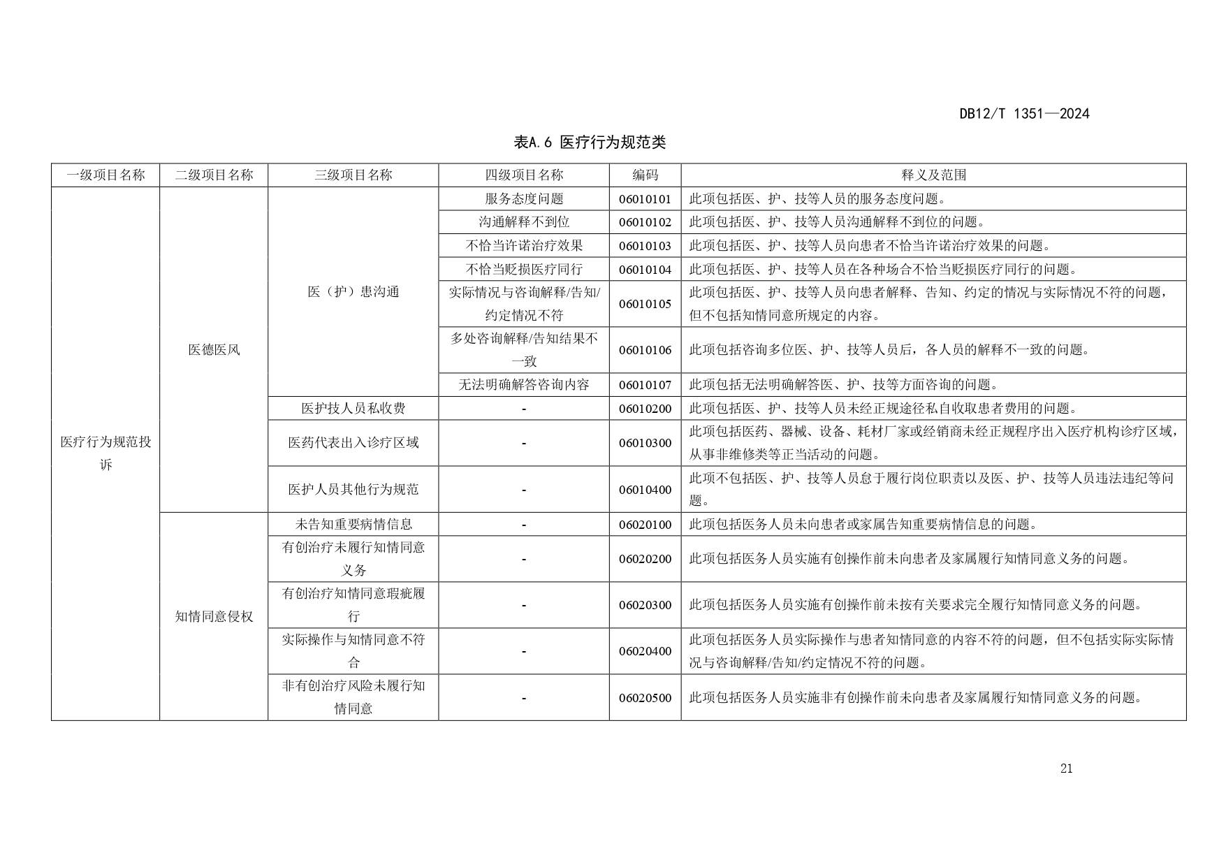 卫生健康行业投诉分类编码DB12/T 1351-2024