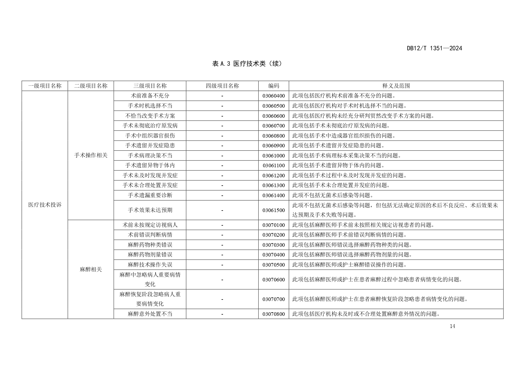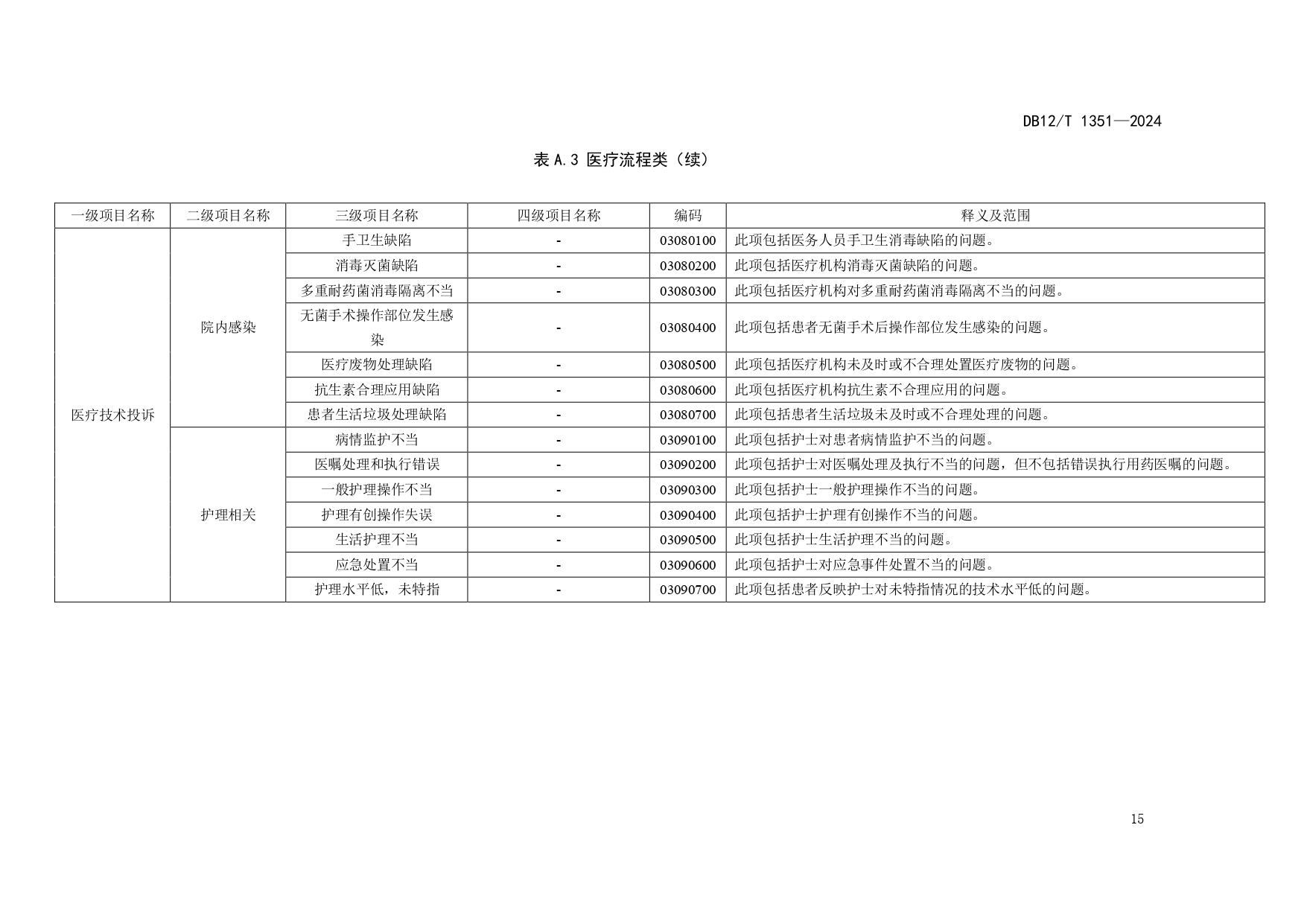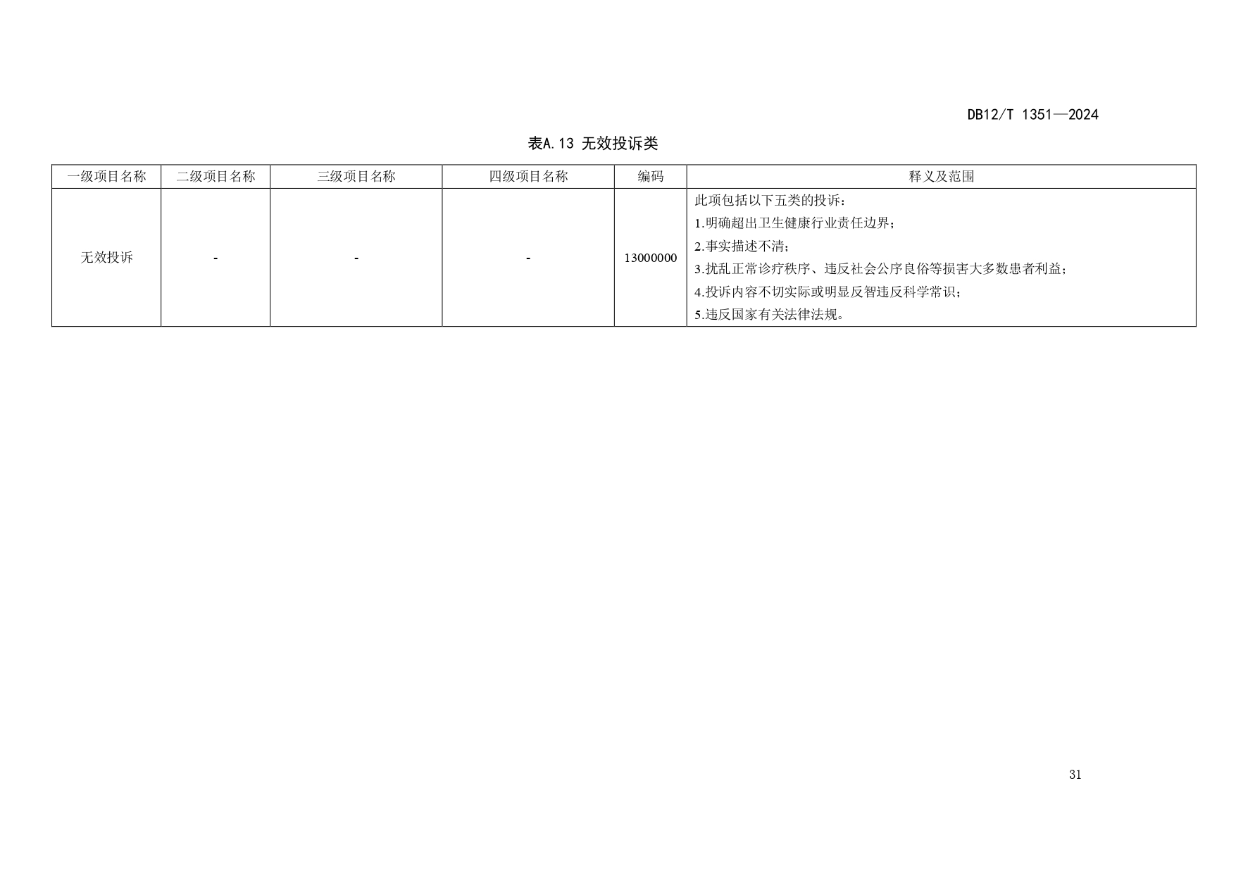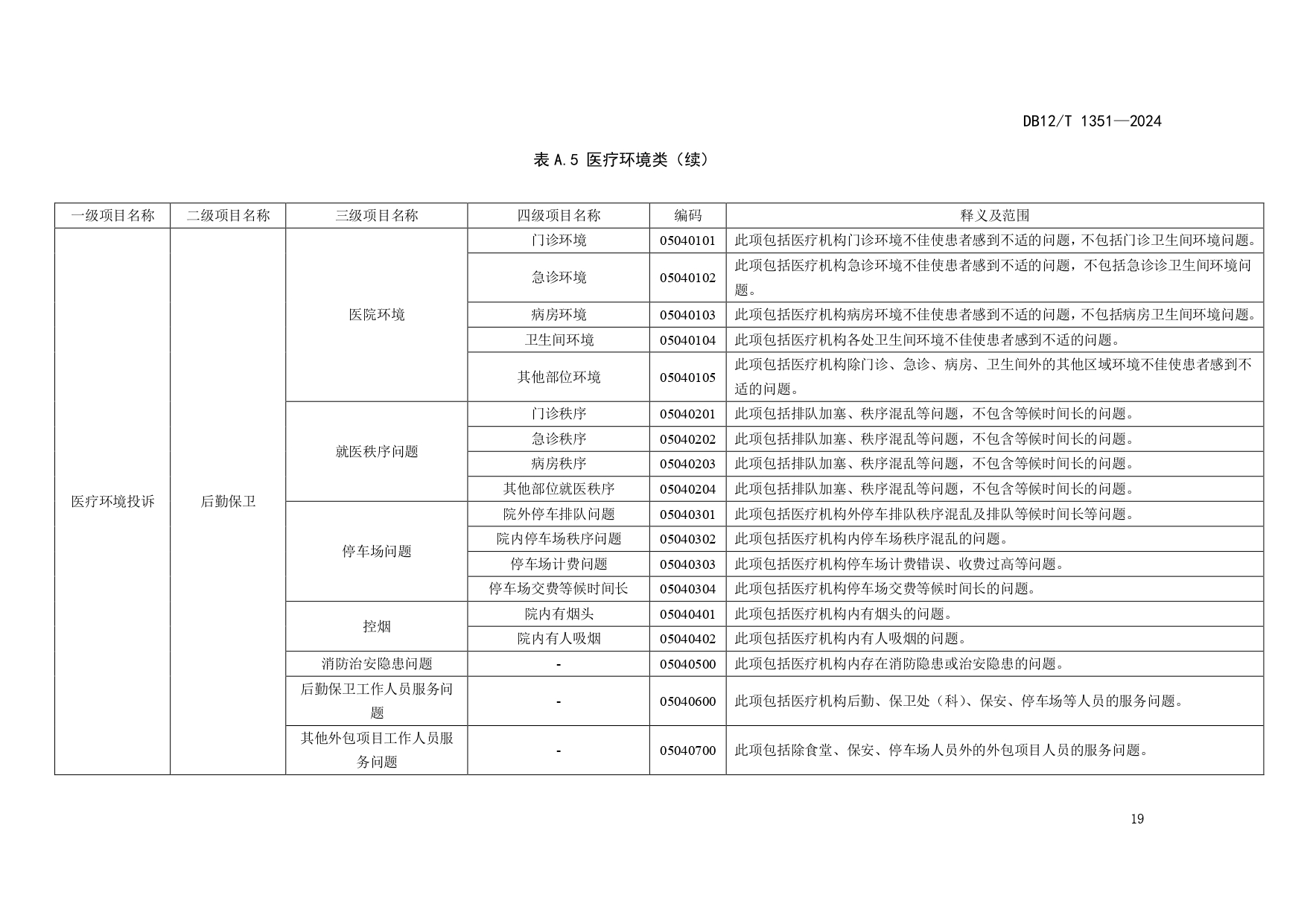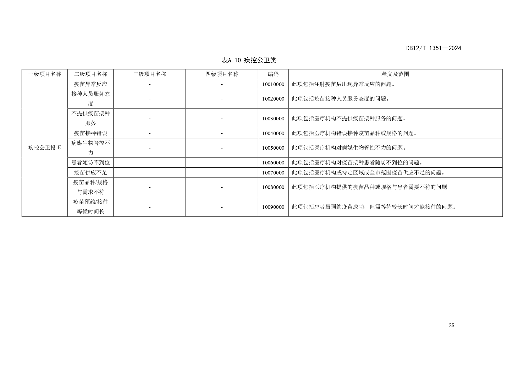 卫生健康行业投诉分类编码DB12/T 1351-2024