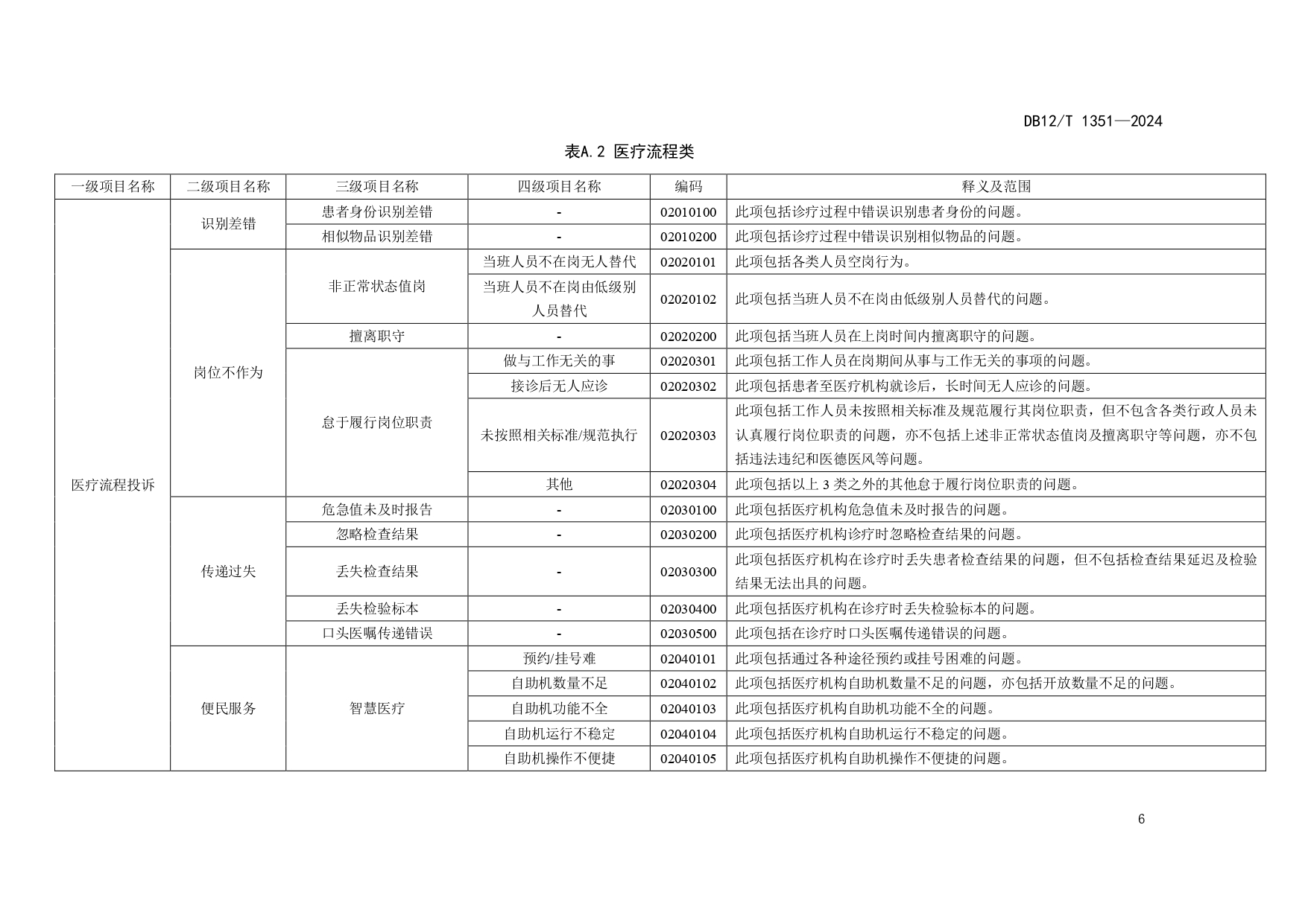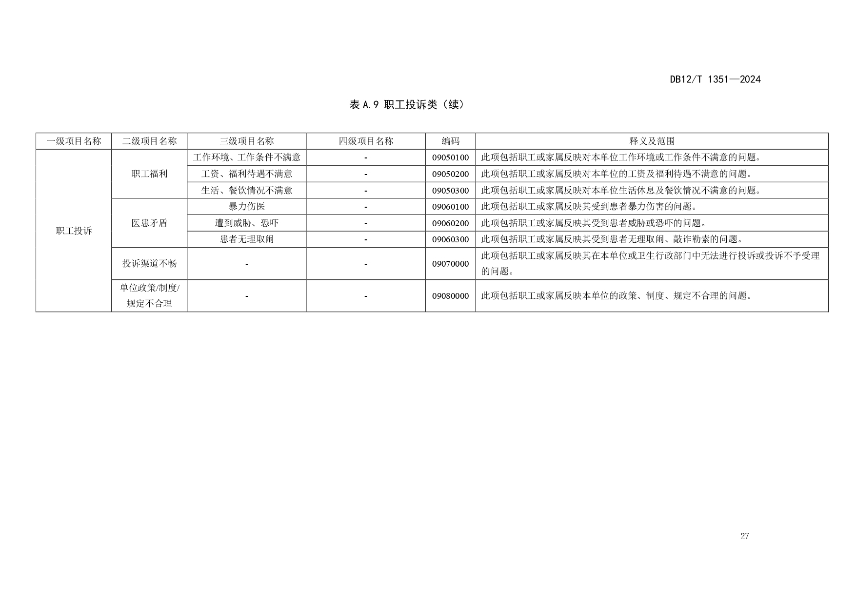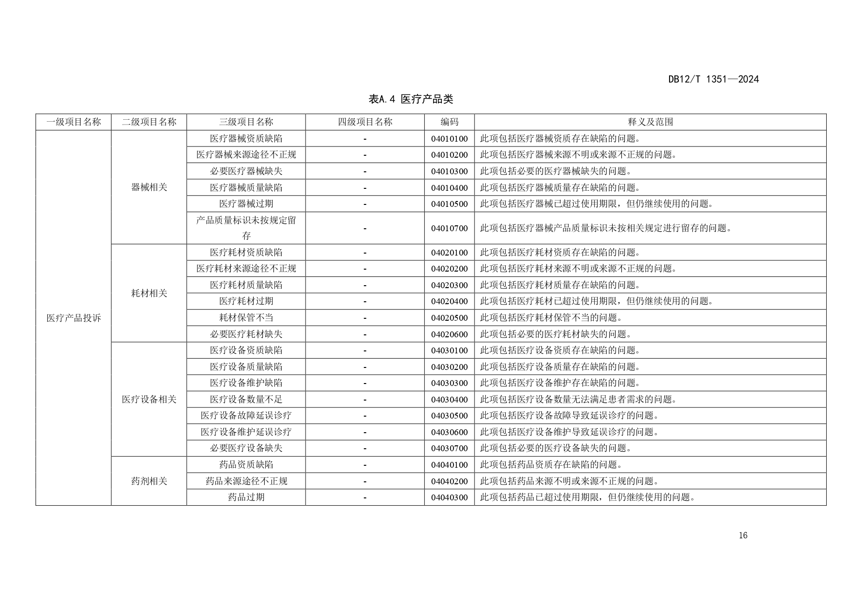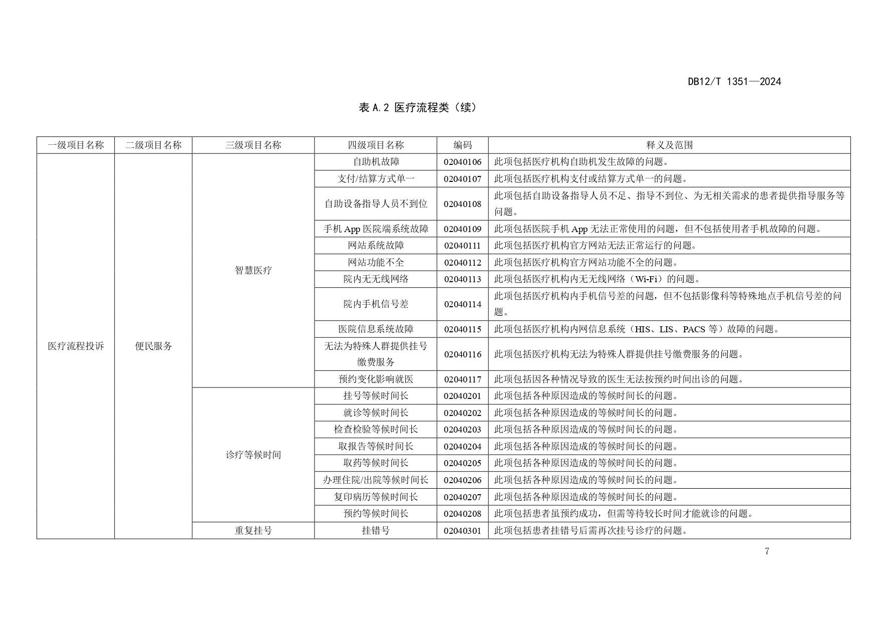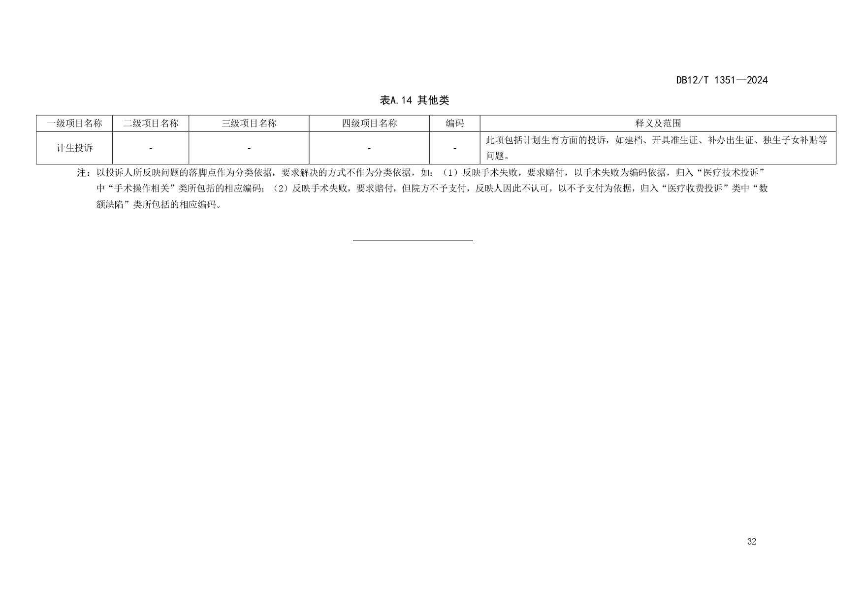 卫生健康行业投诉分类编码DB12/T 1351-2024