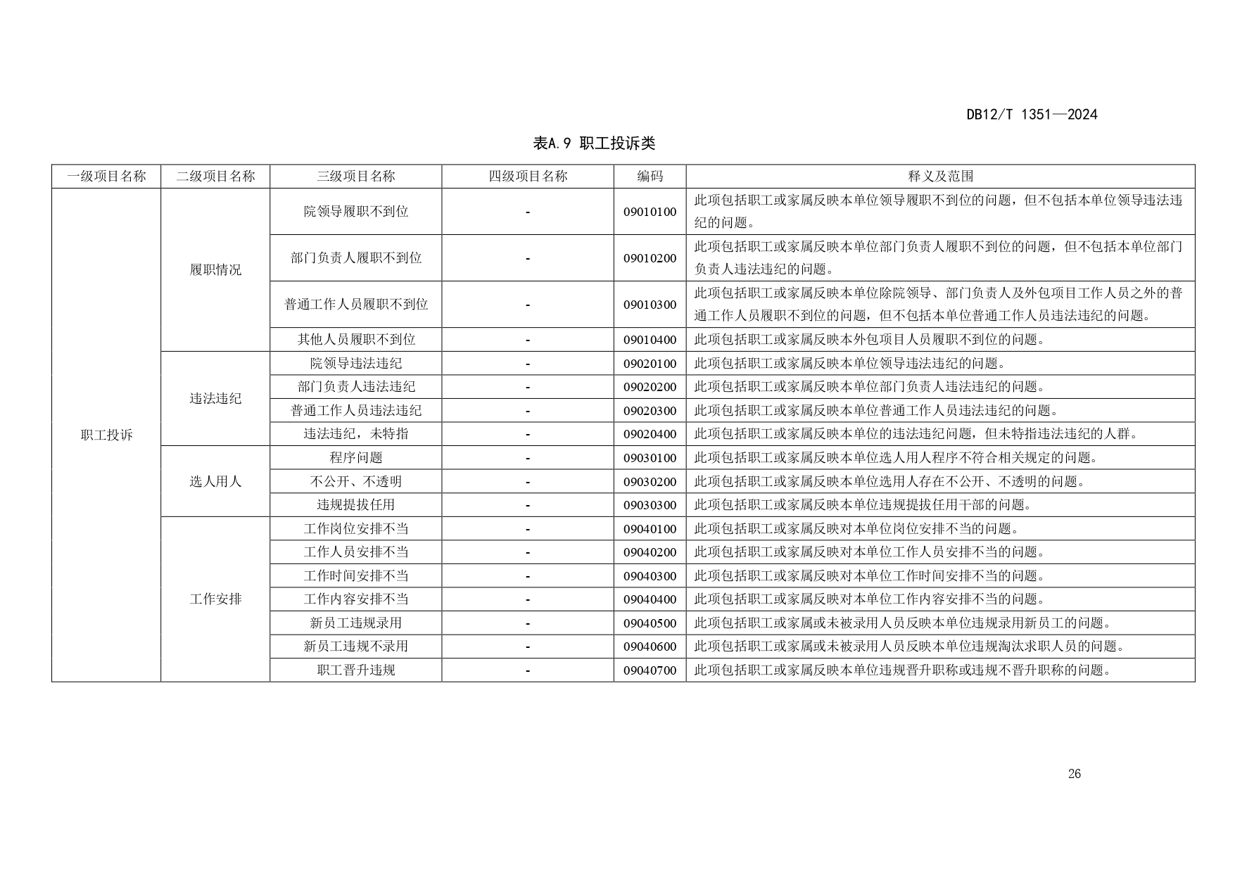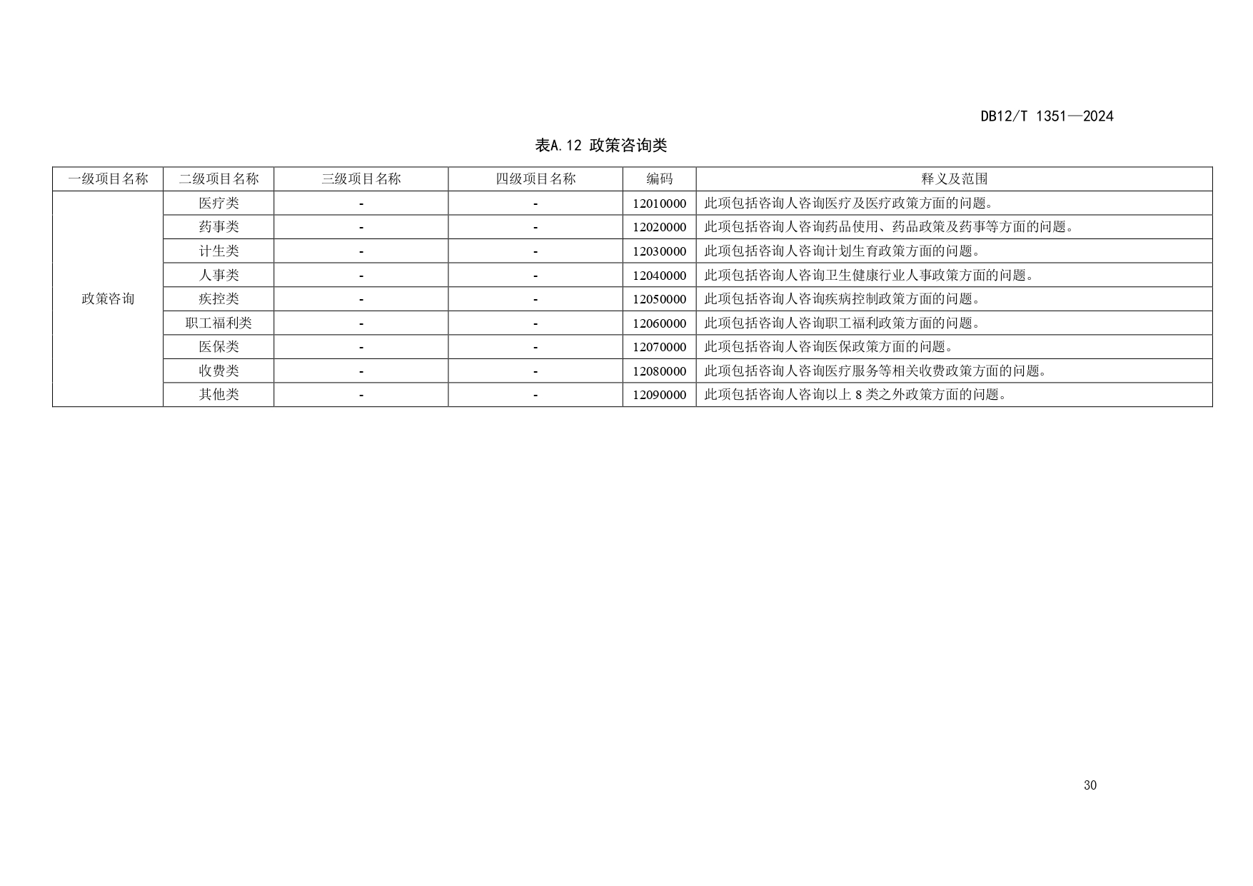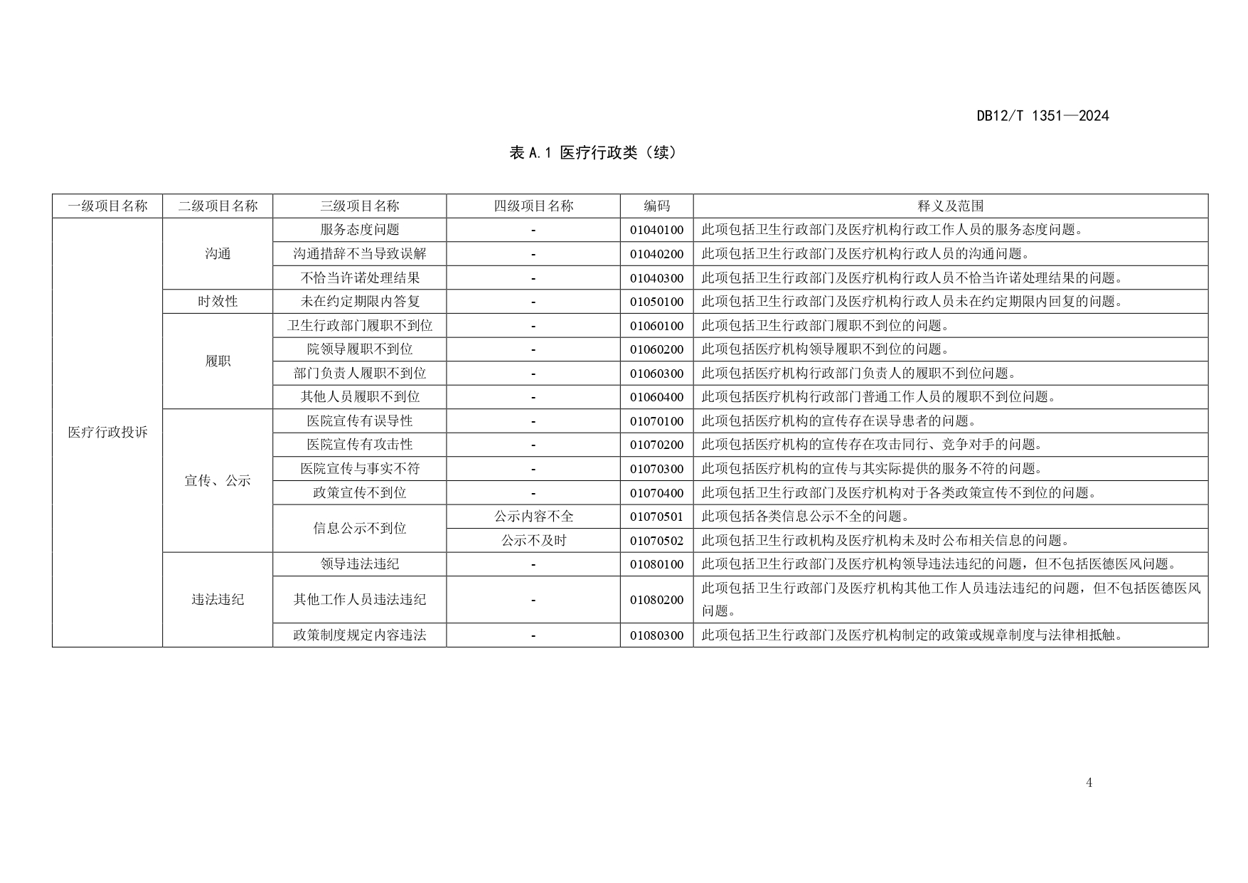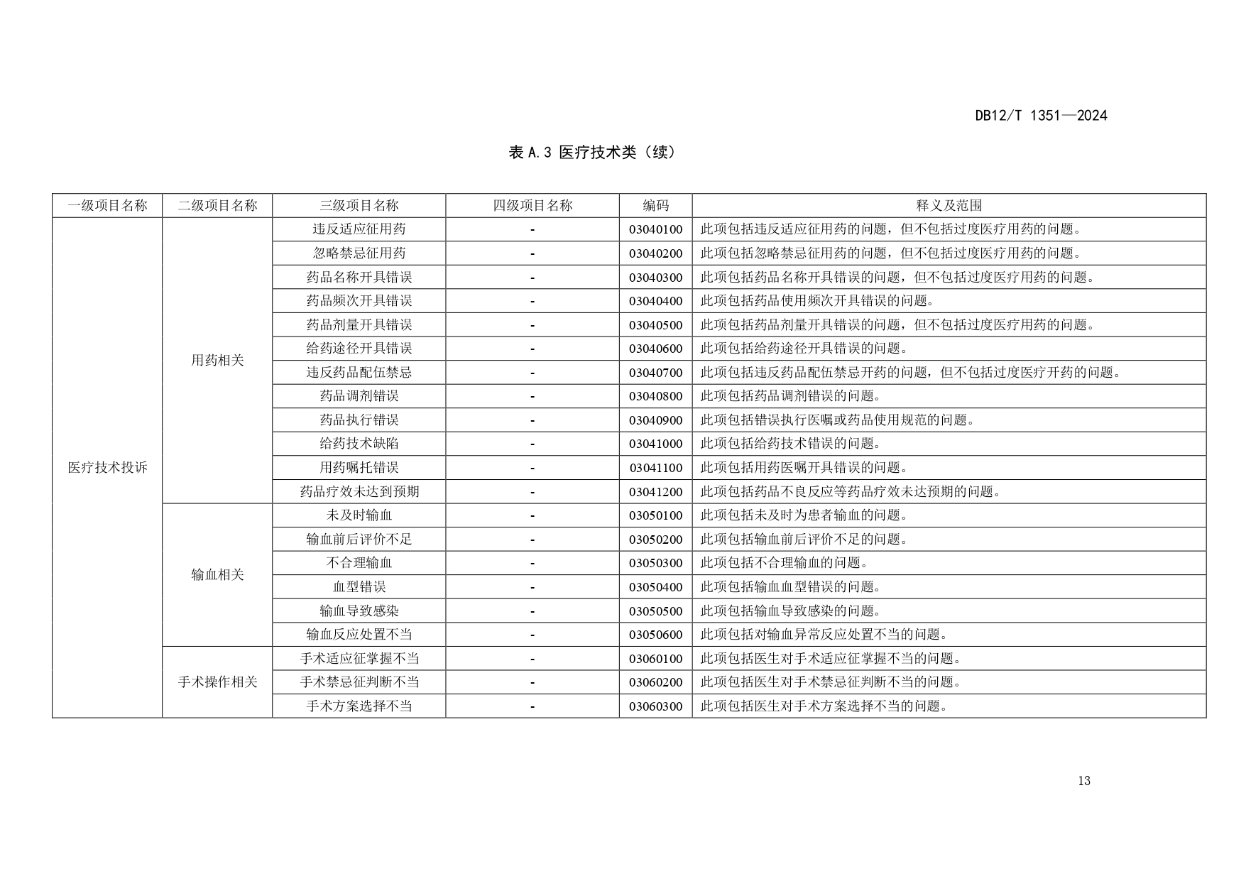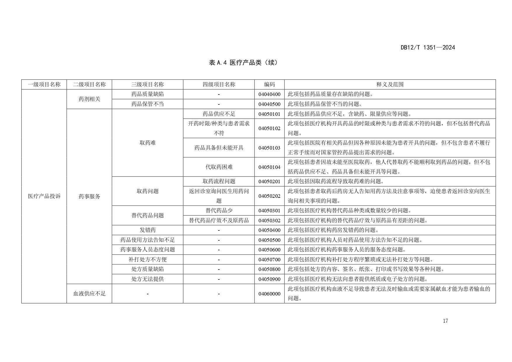 卫生健康行业投诉分类编码DB12/T 1351-2024