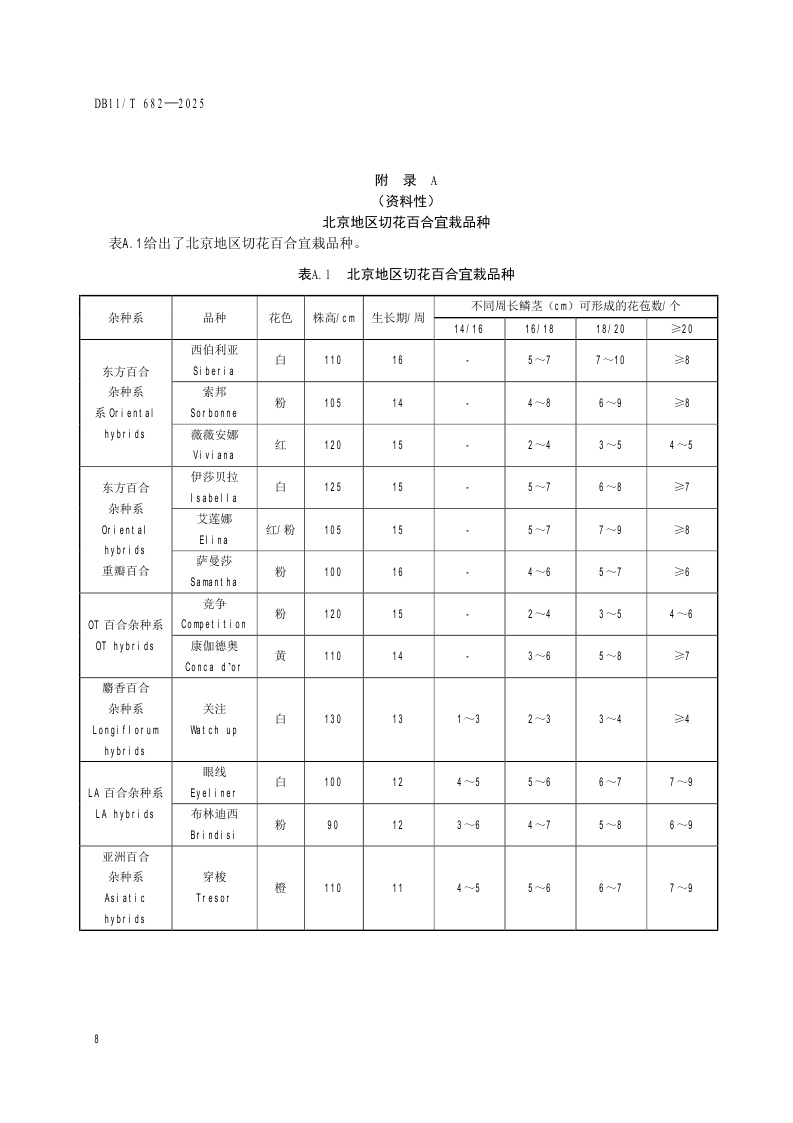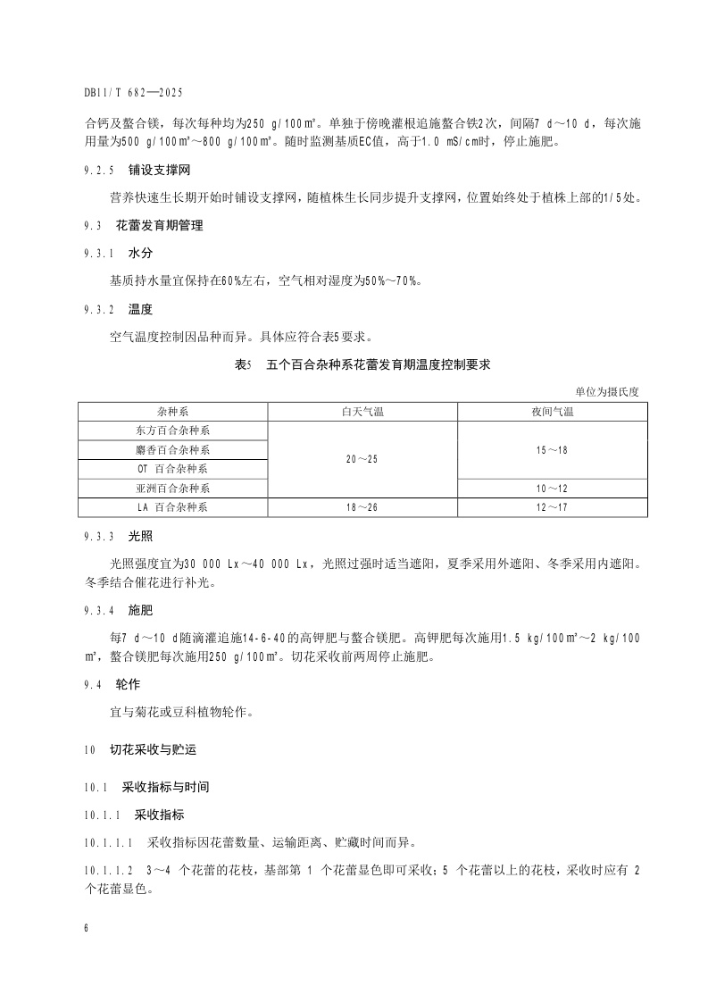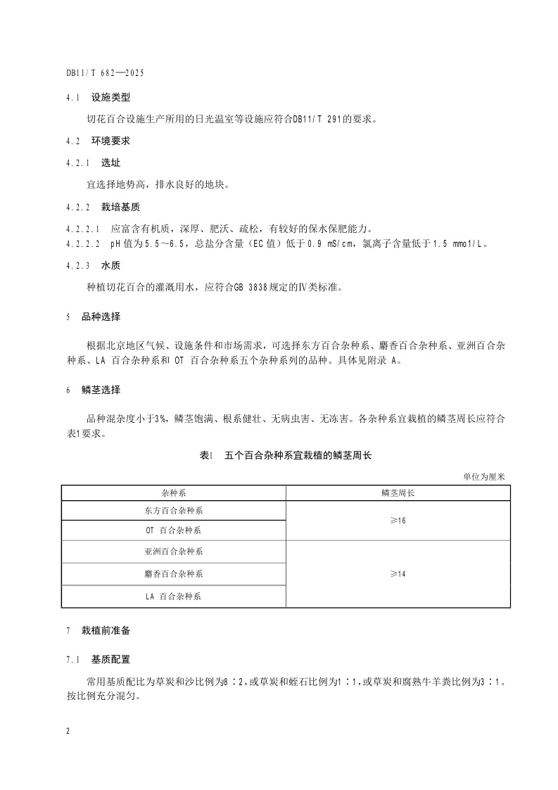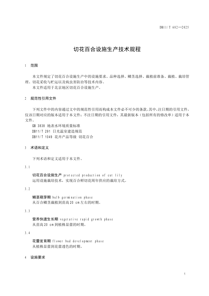 北京市《切花百合设施生产技术规程》(DB11/T 682-2025)