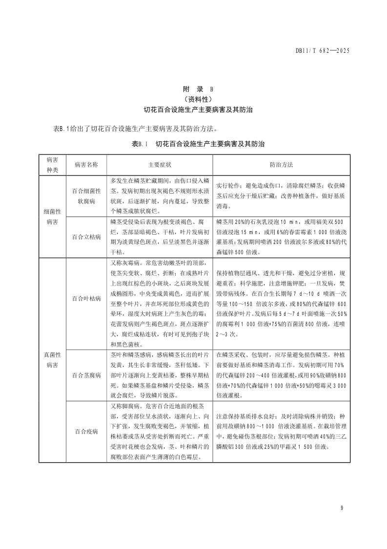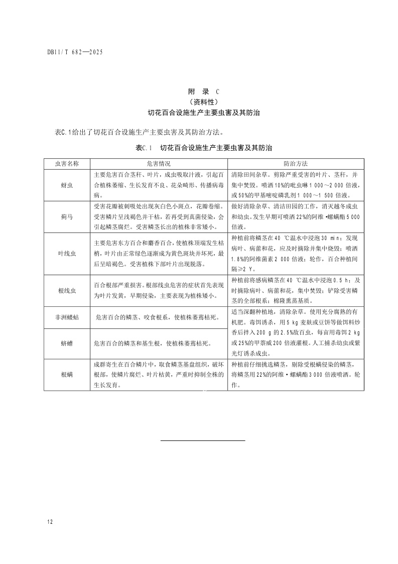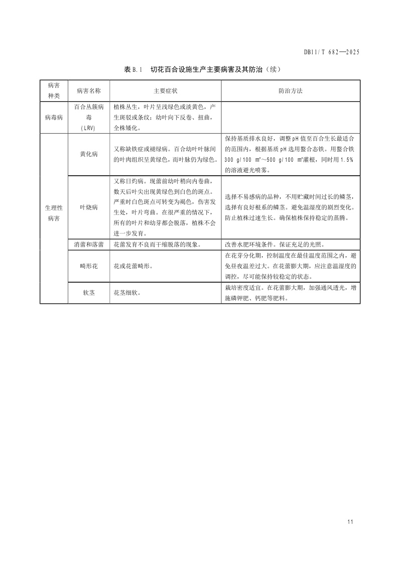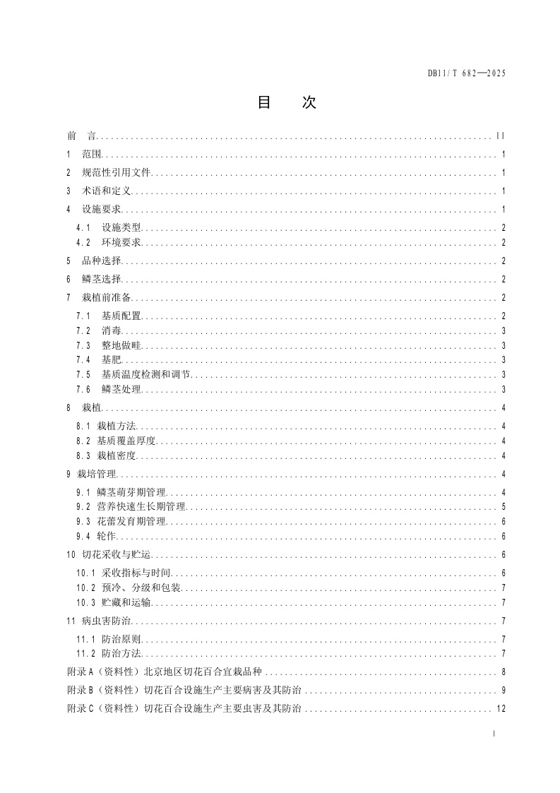 北京市《切花百合设施生产技术规程》(DB11/T 682-2025)
