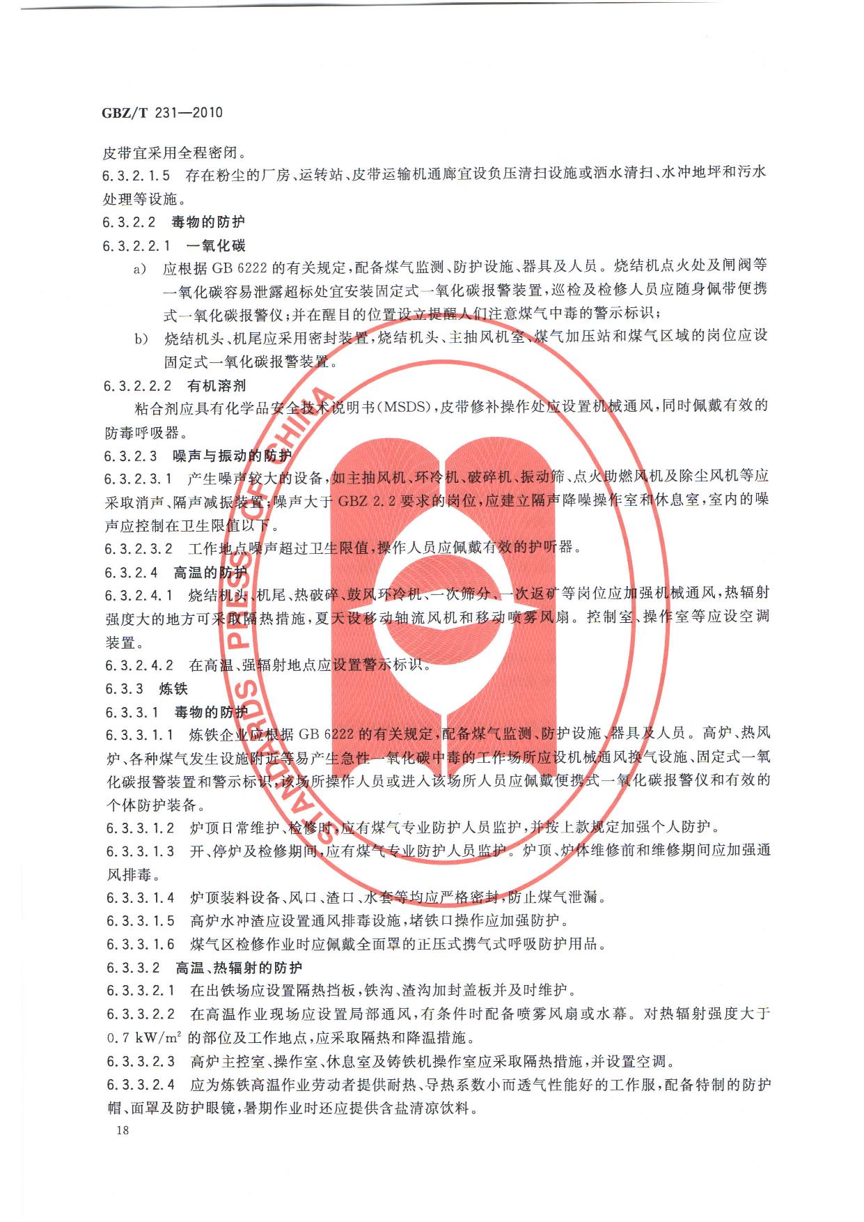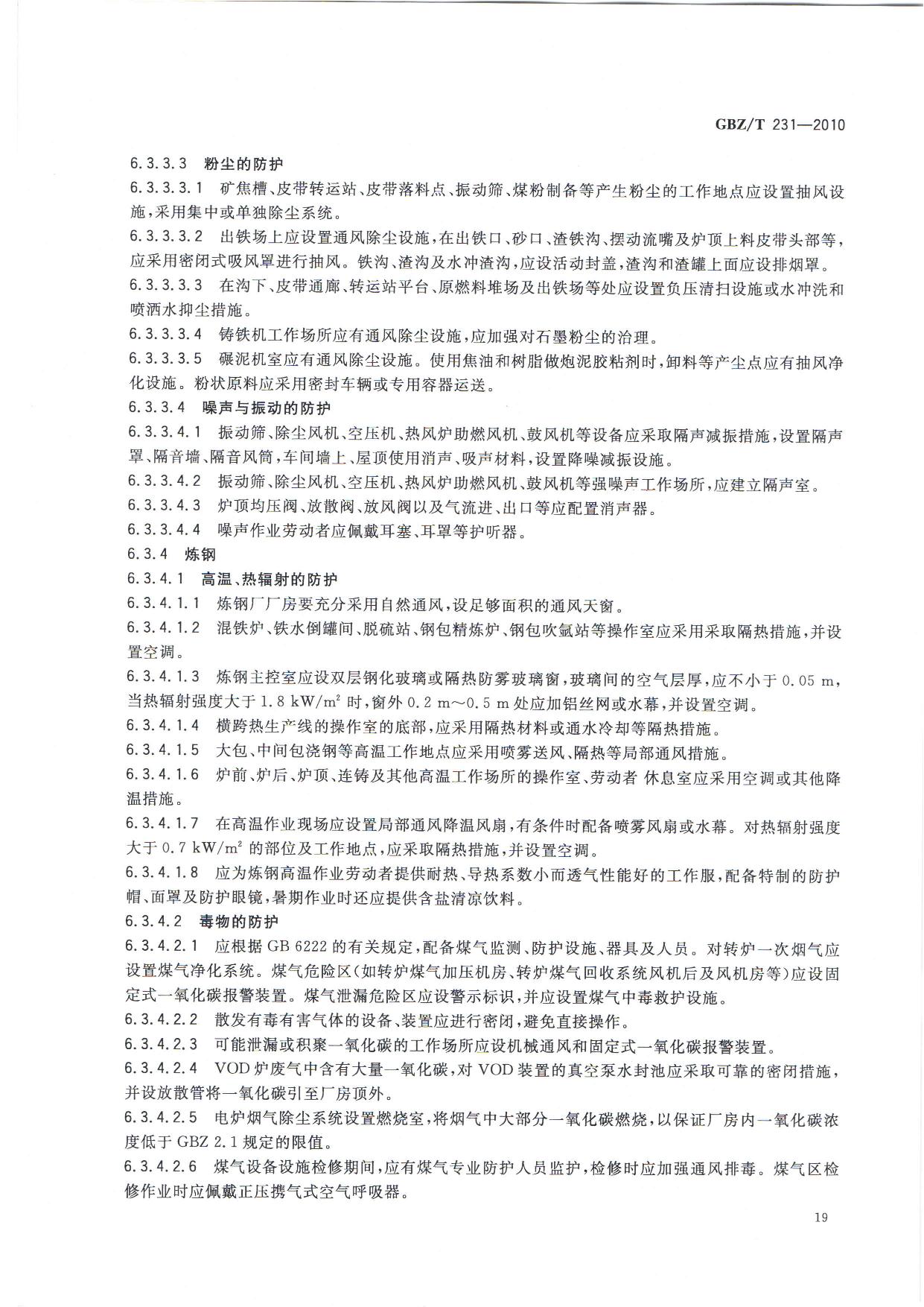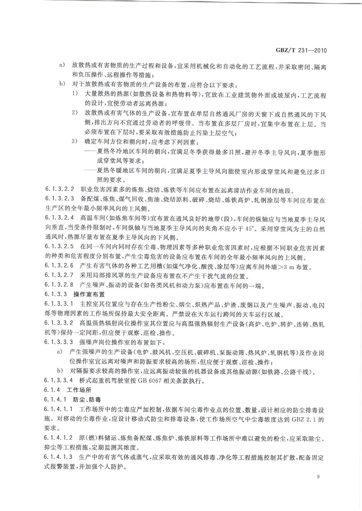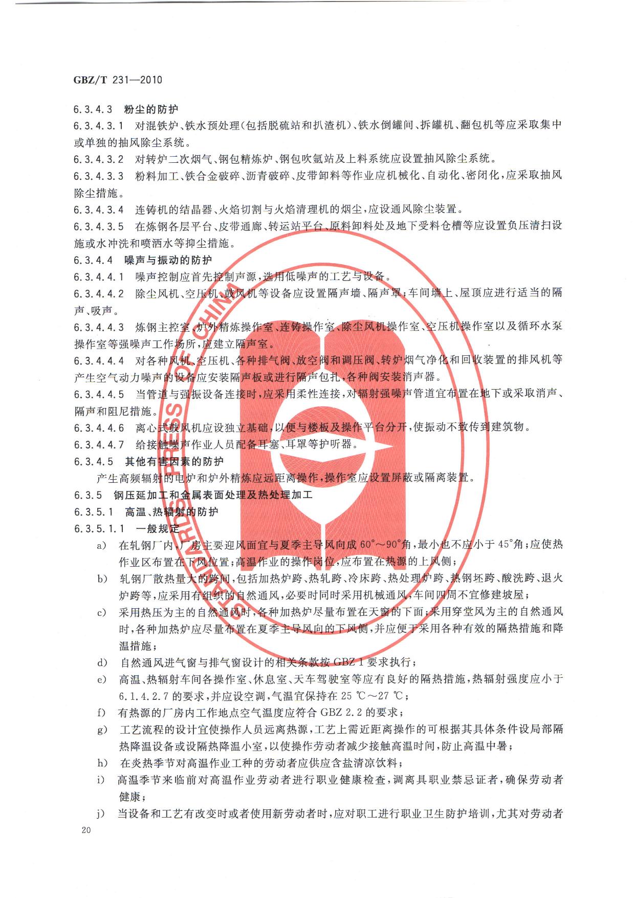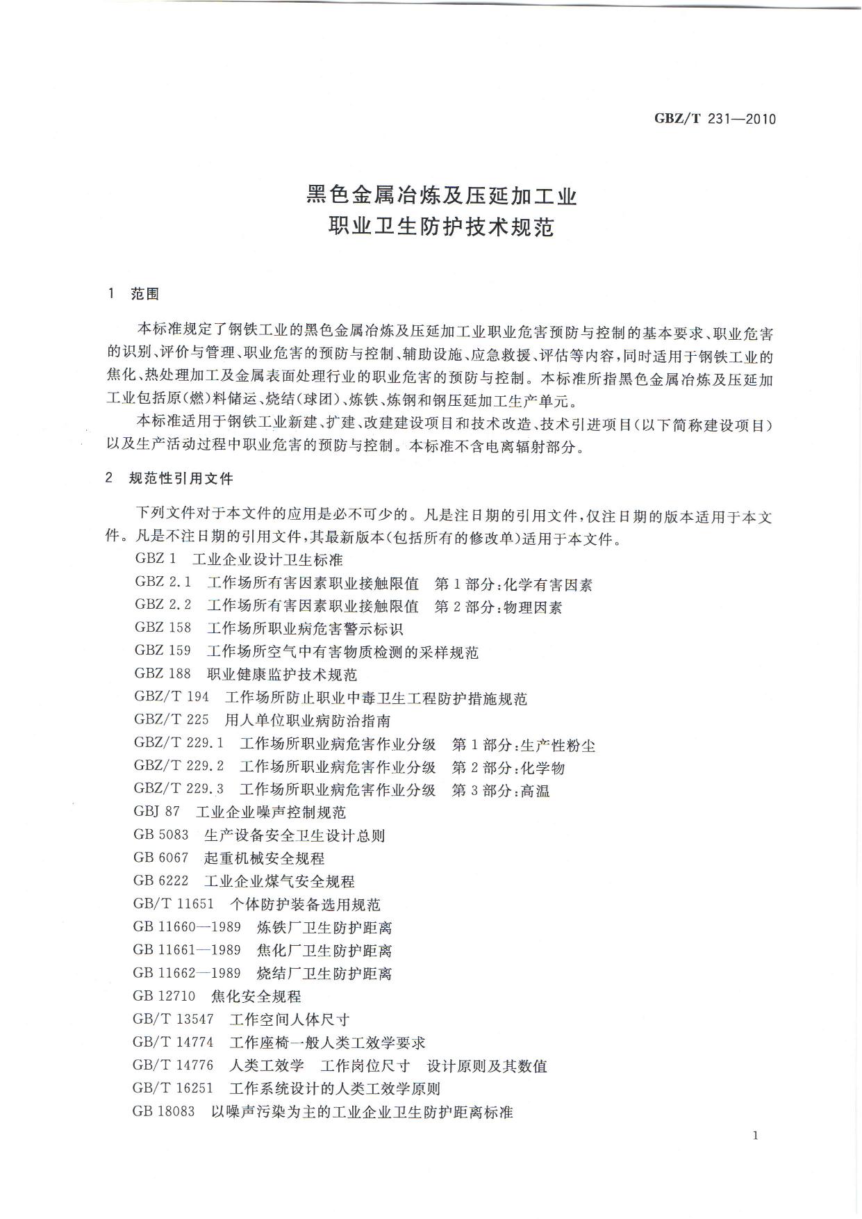 《黑色金属冶炼及压延加工业职业卫生防护技术规范》(GBZ/T231-2010)