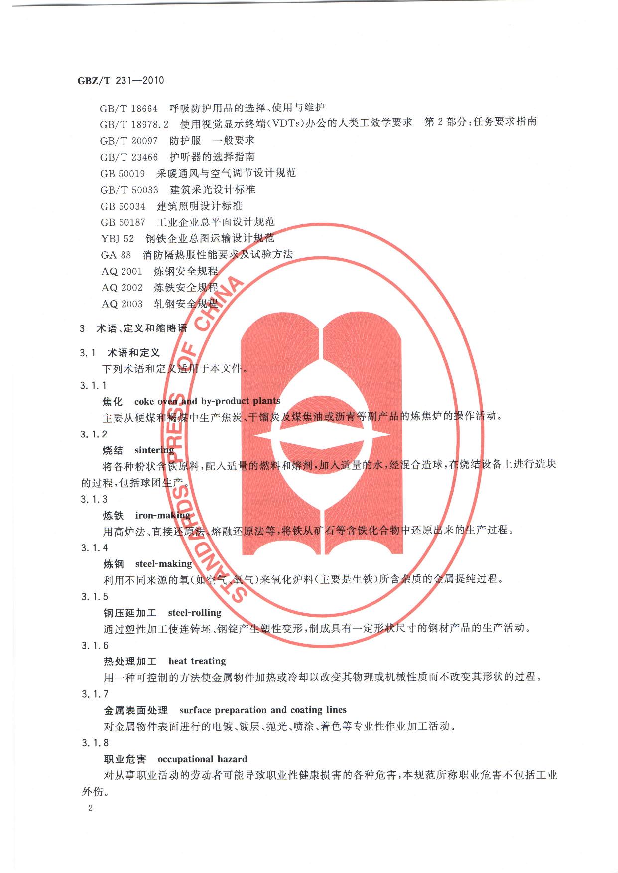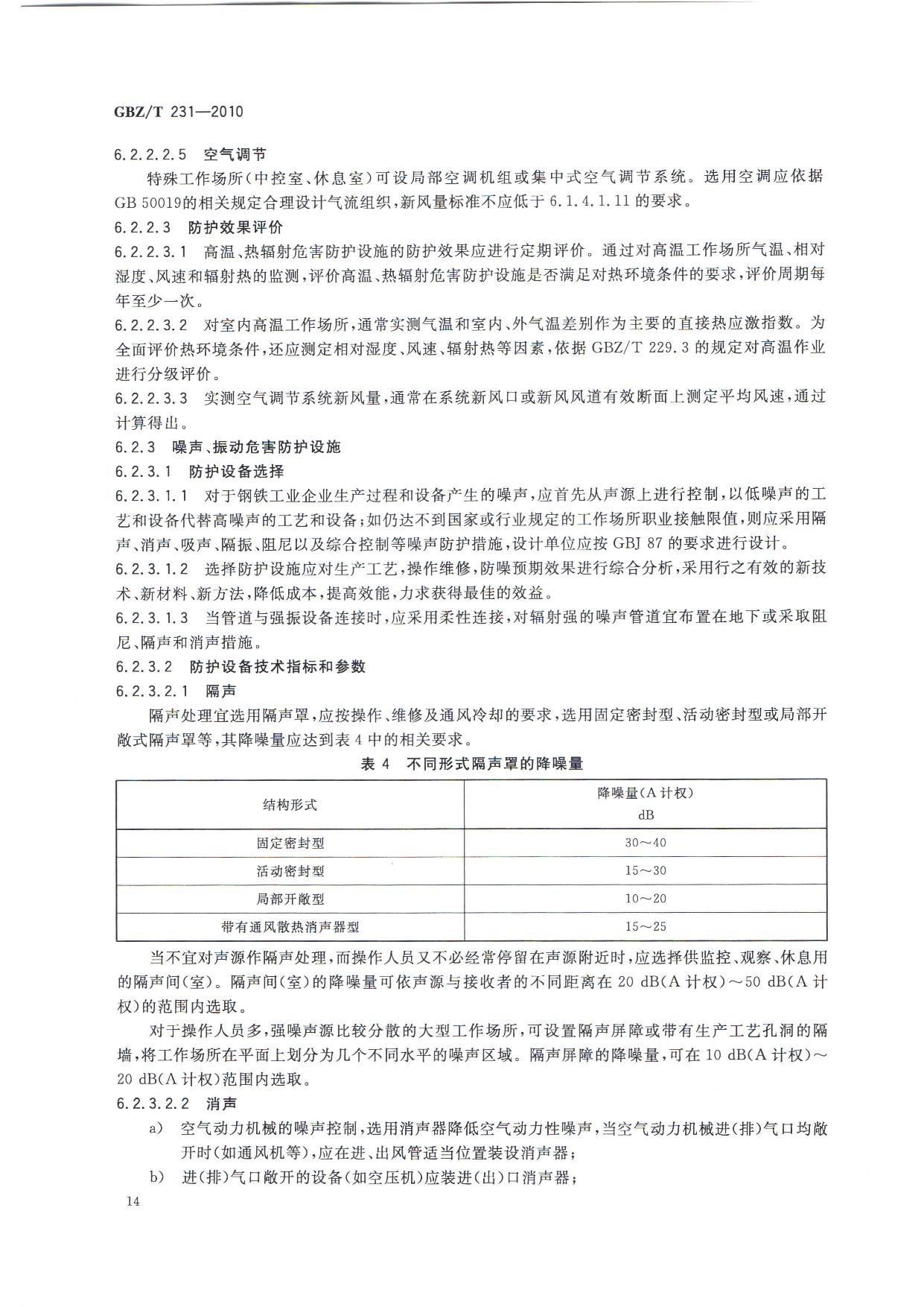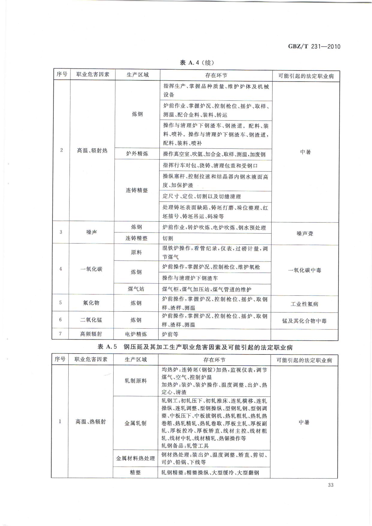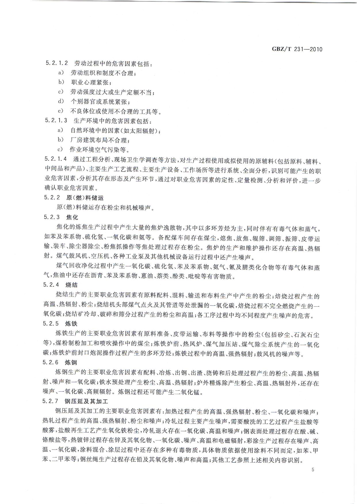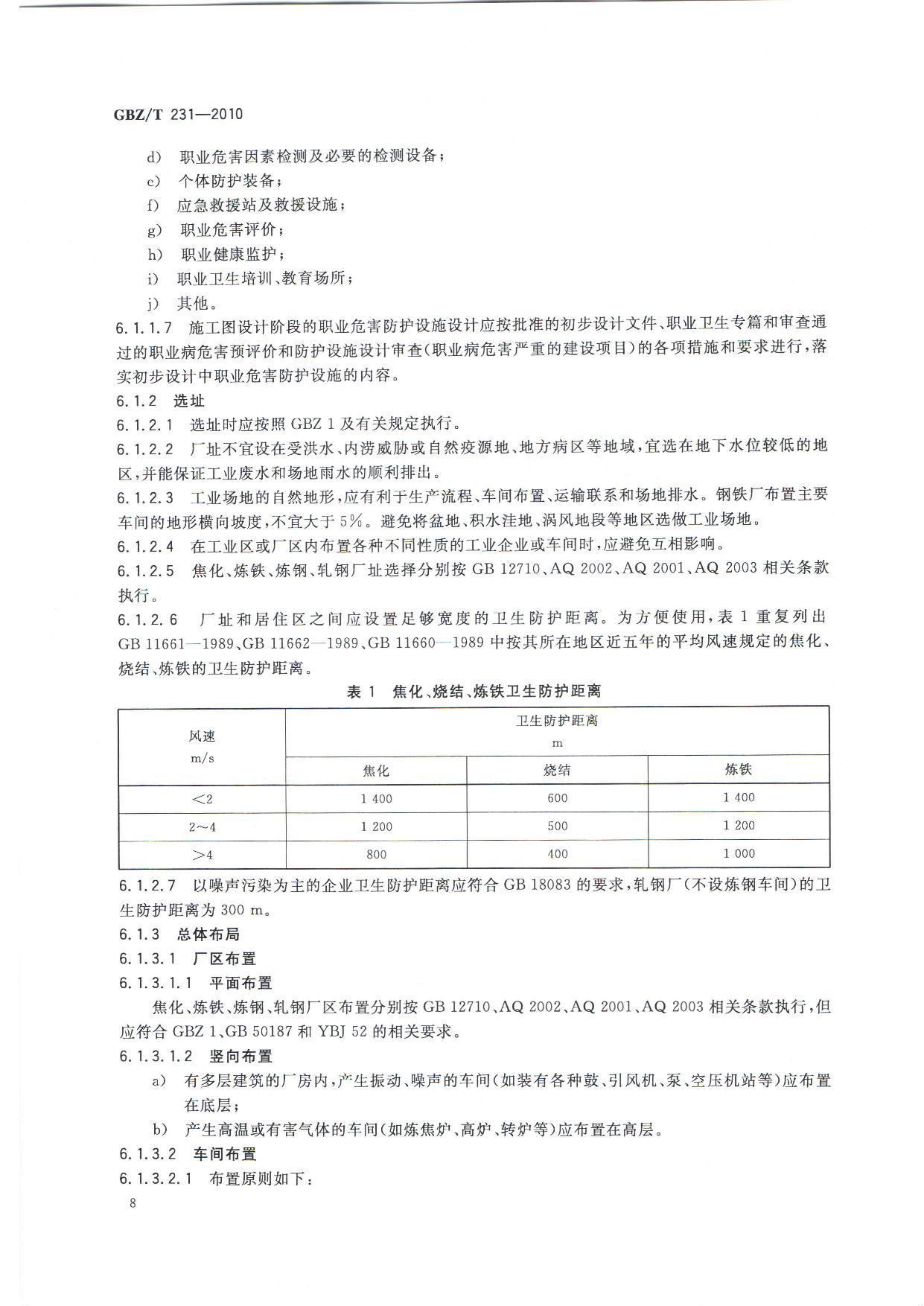 《黑色金属冶炼及压延加工业职业卫生防护技术规范》(GBZ/T231-2010)