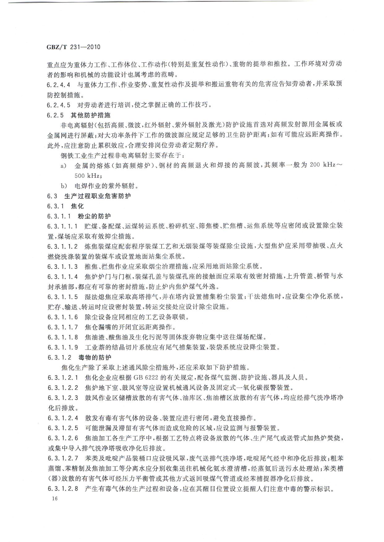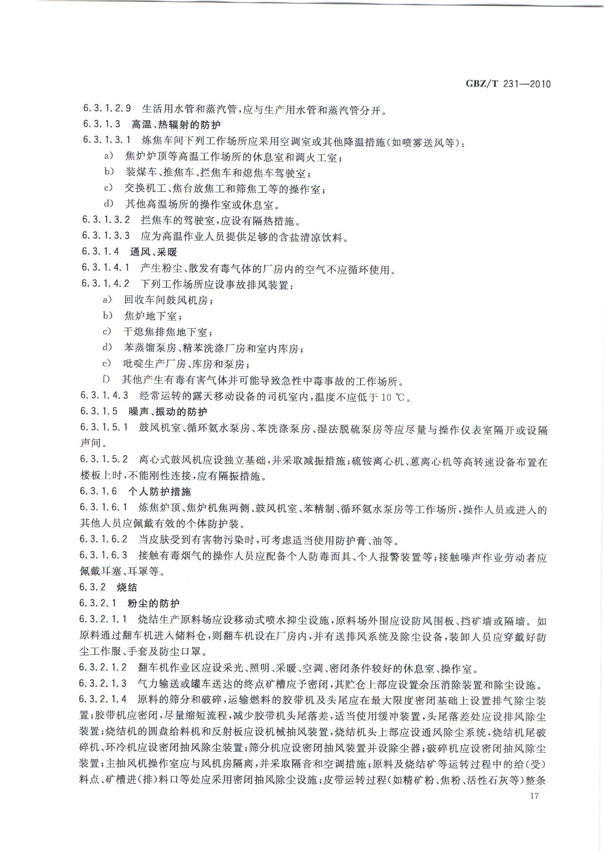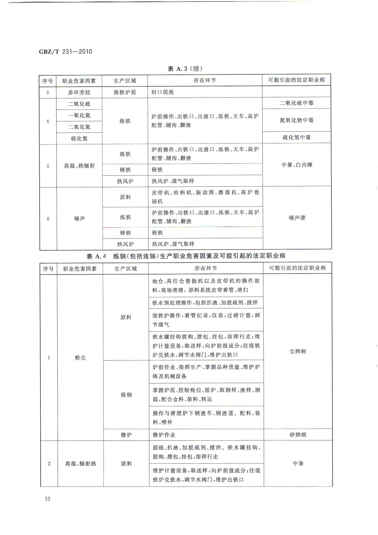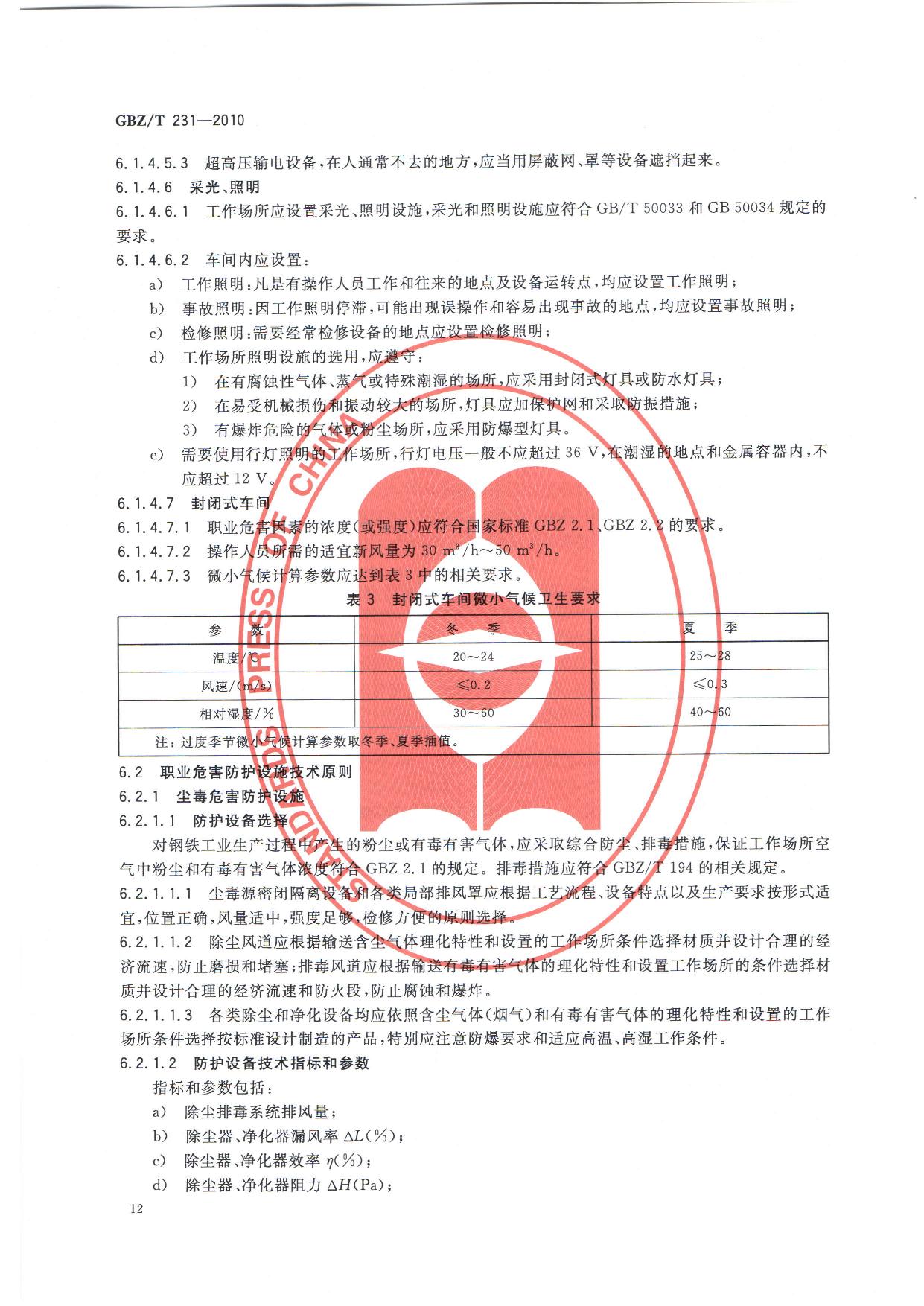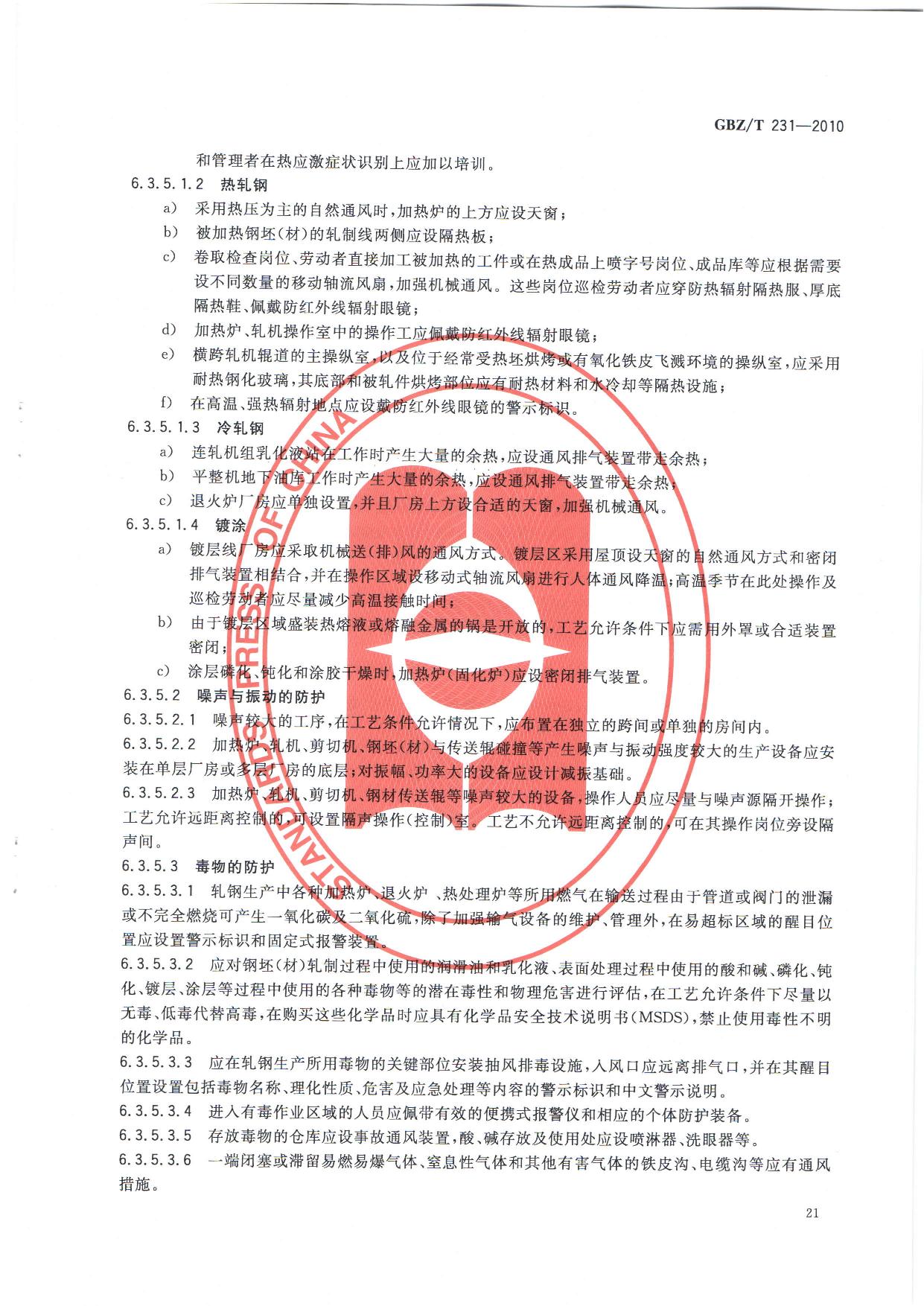 《黑色金属冶炼及压延加工业职业卫生防护技术规范》(GBZ/T231-2010)