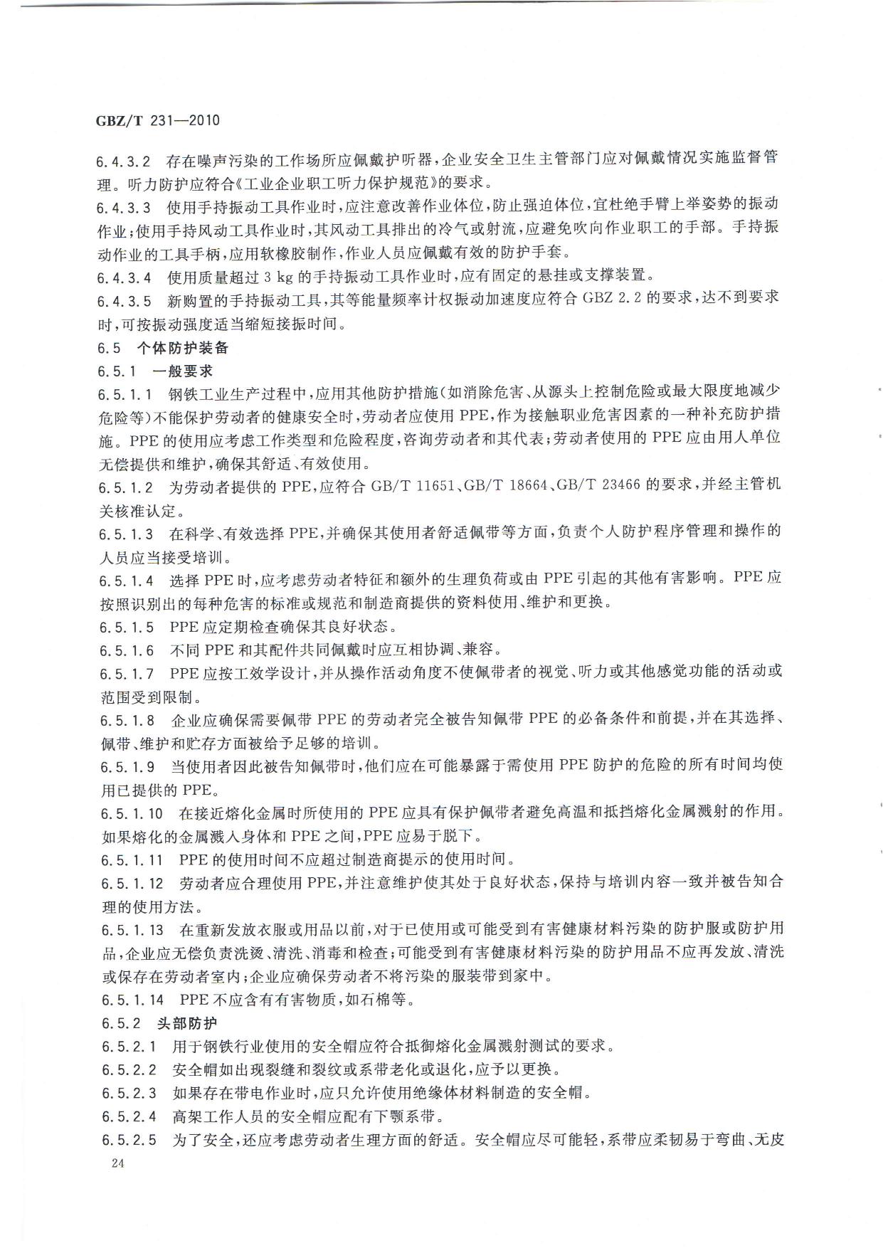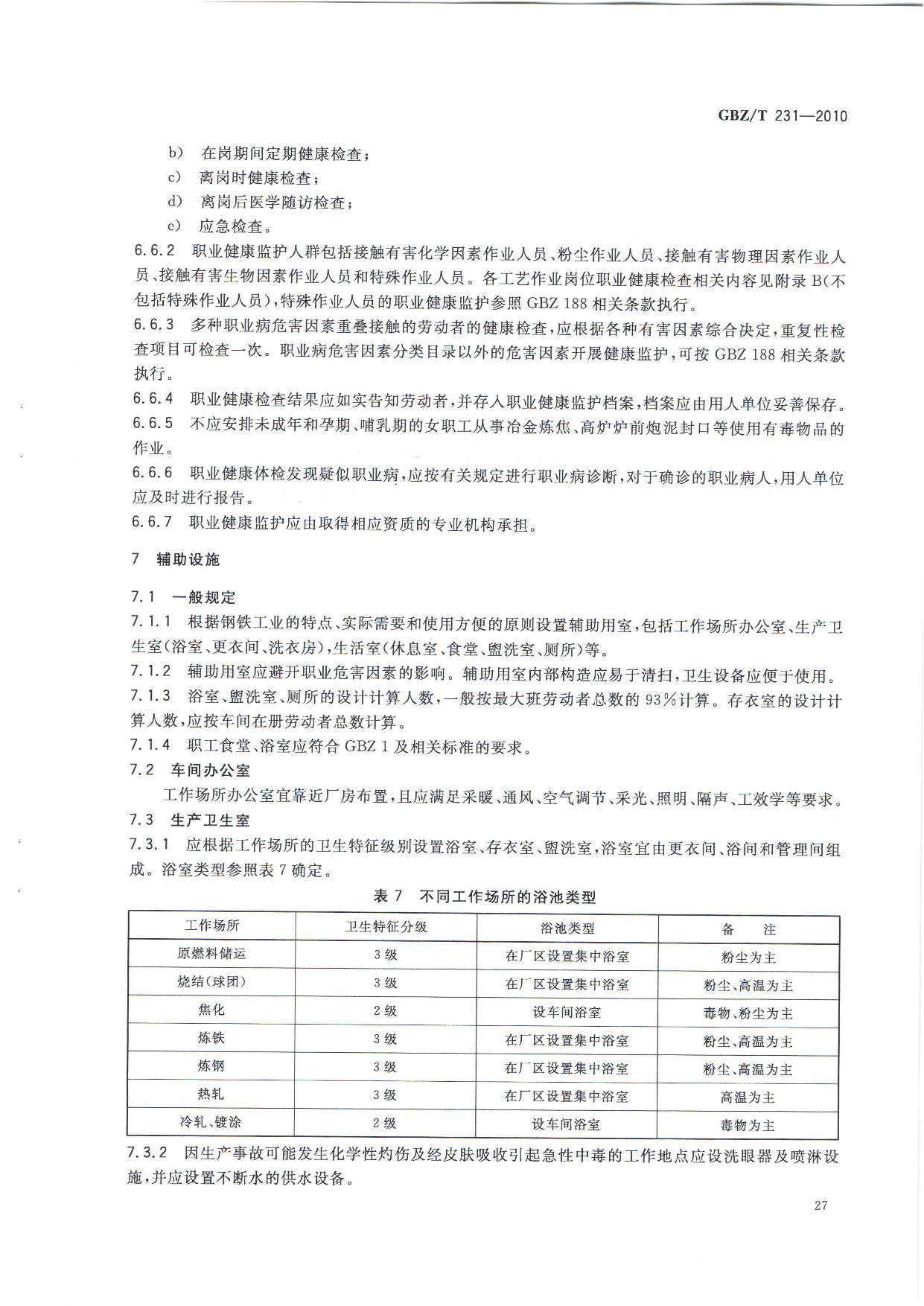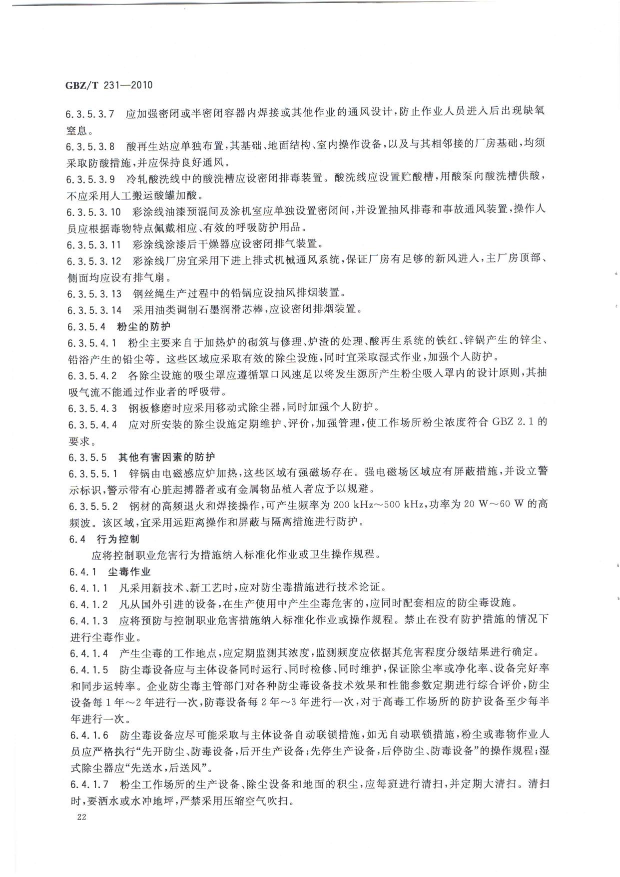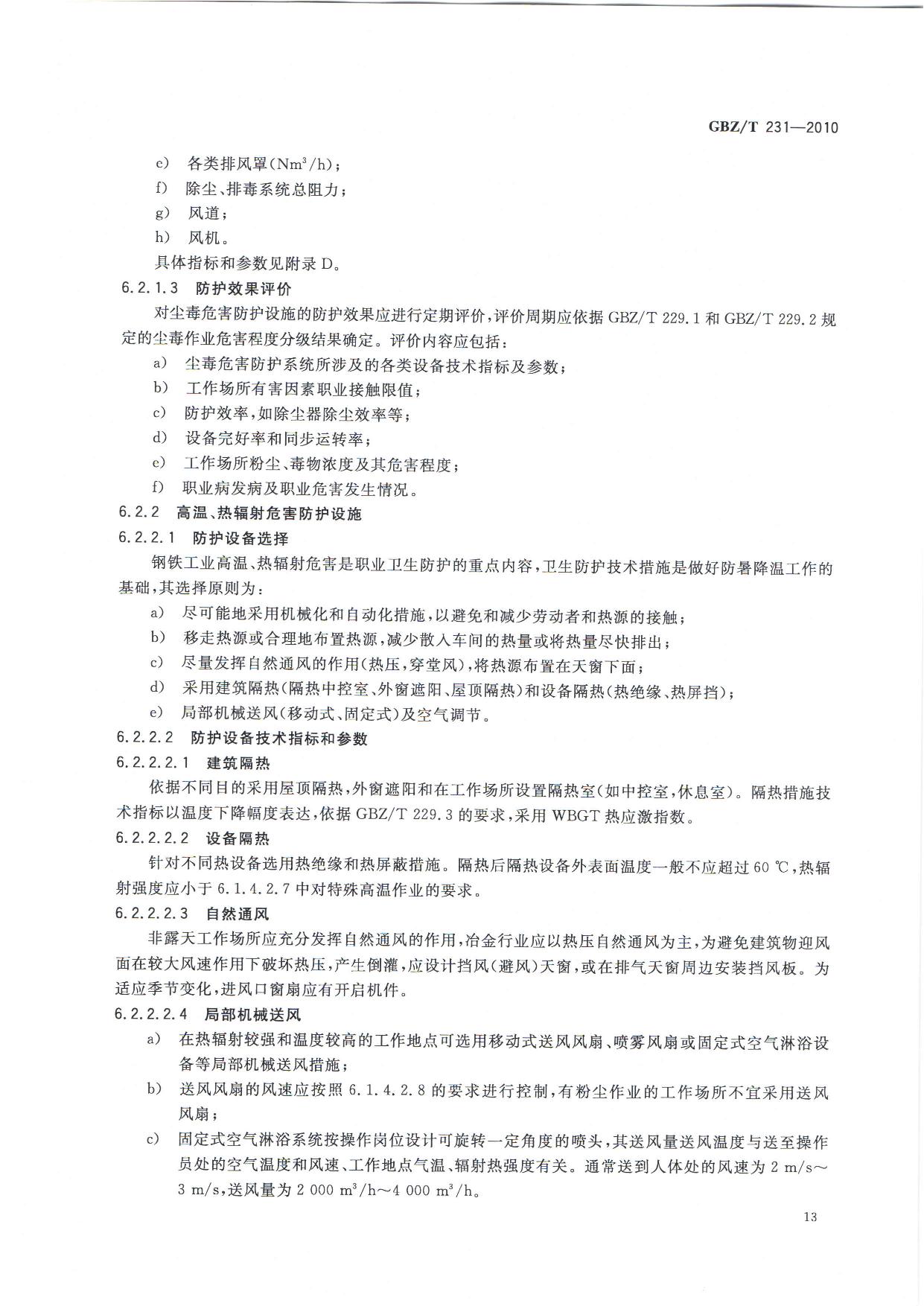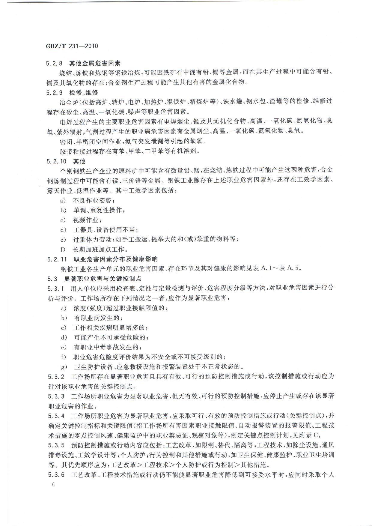 《黑色金属冶炼及压延加工业职业卫生防护技术规范》(GBZ/T231-2010)