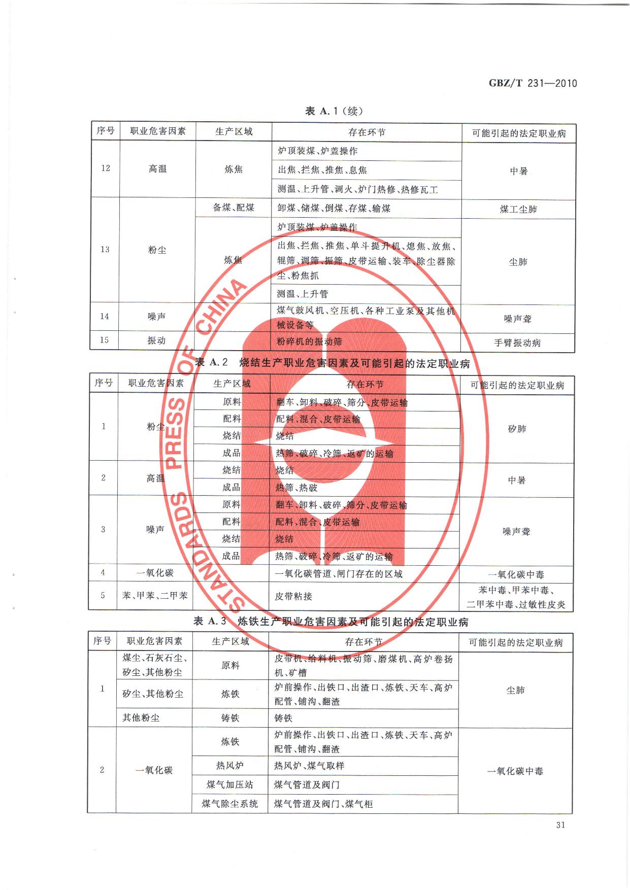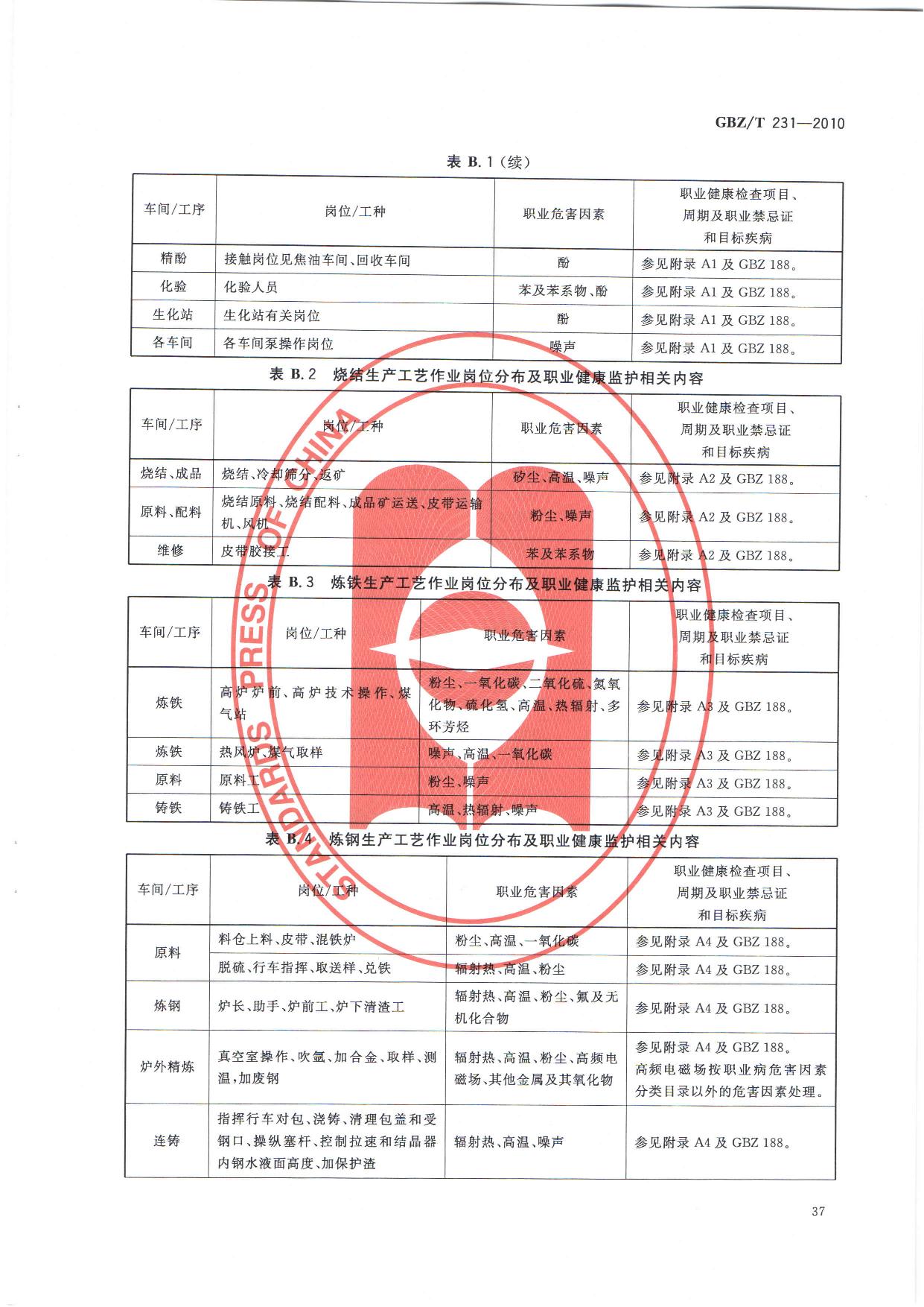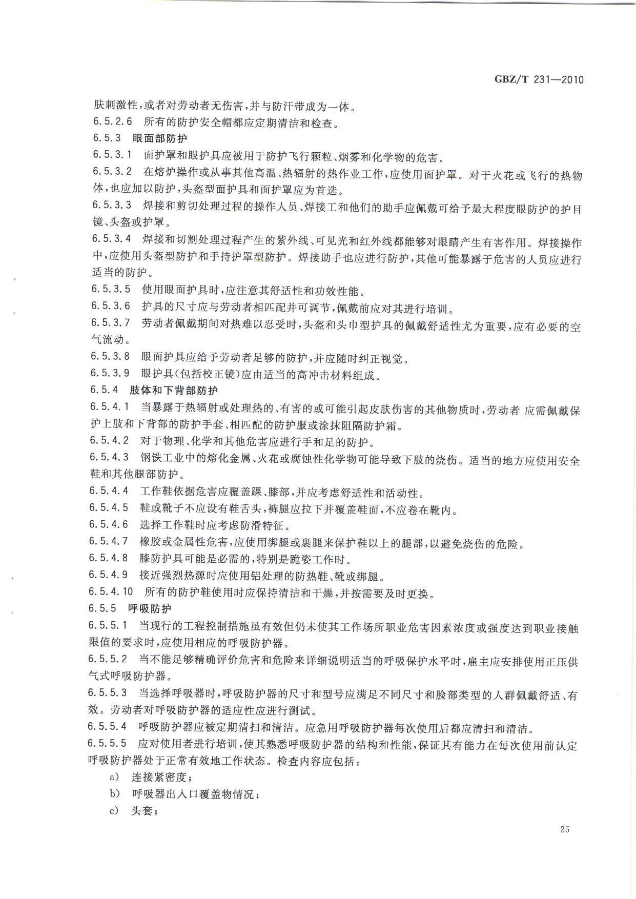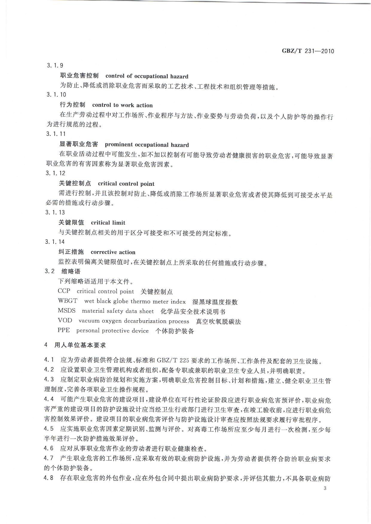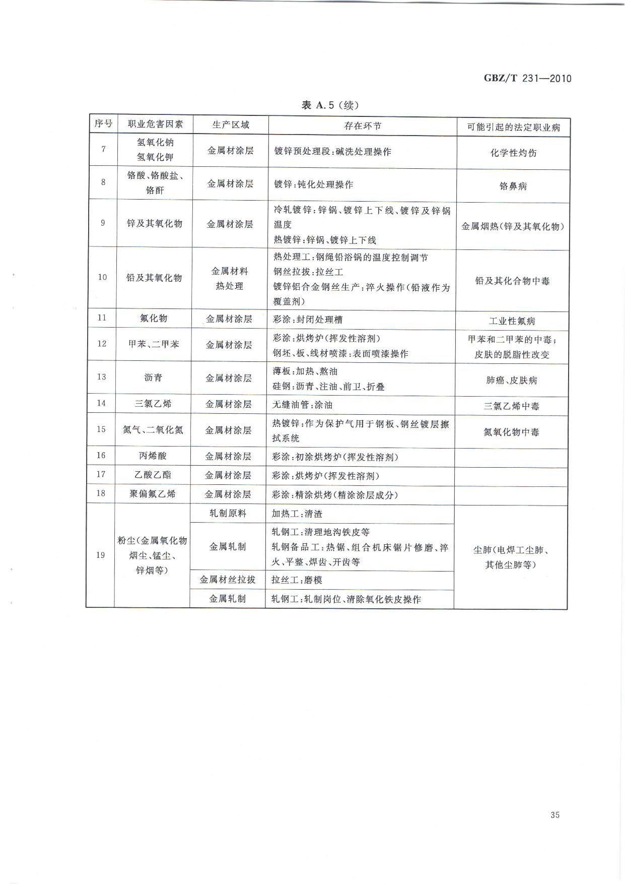 《黑色金属冶炼及压延加工业职业卫生防护技术规范》(GBZ/T231-2010)