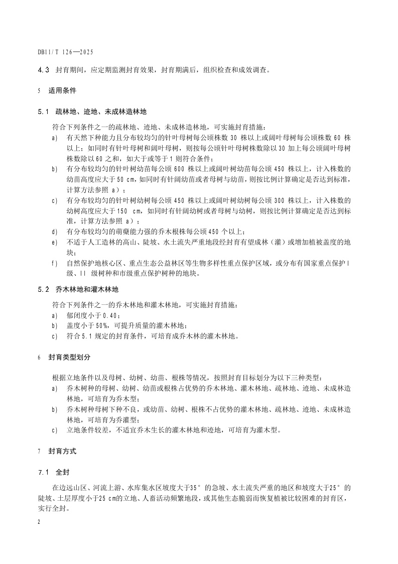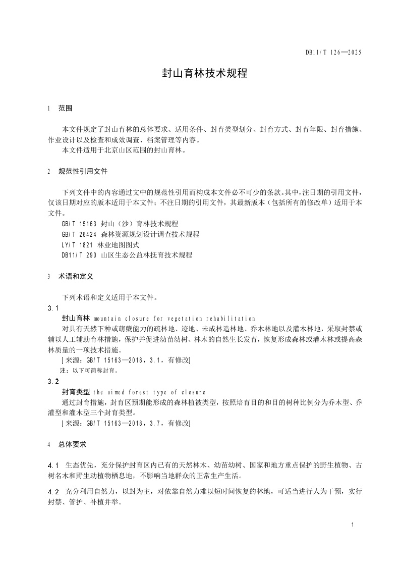北京市《封山育林技术规程》(DB11/T 126-2025)