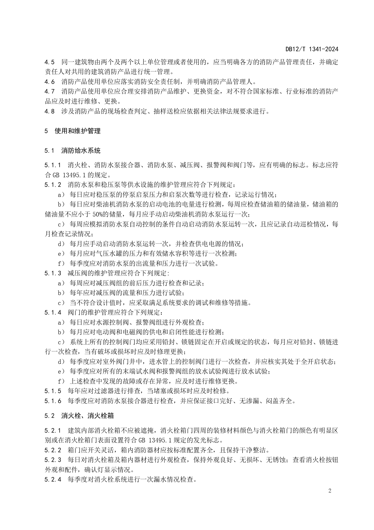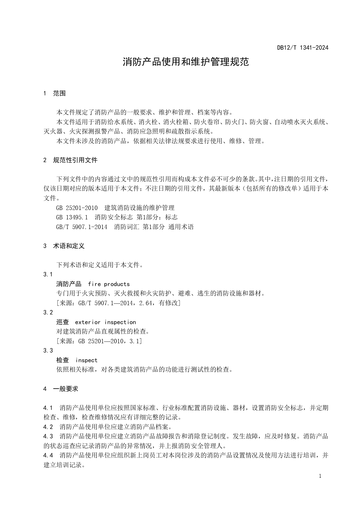 消防产品使用和维护管理规范DB12/T 1341-2024